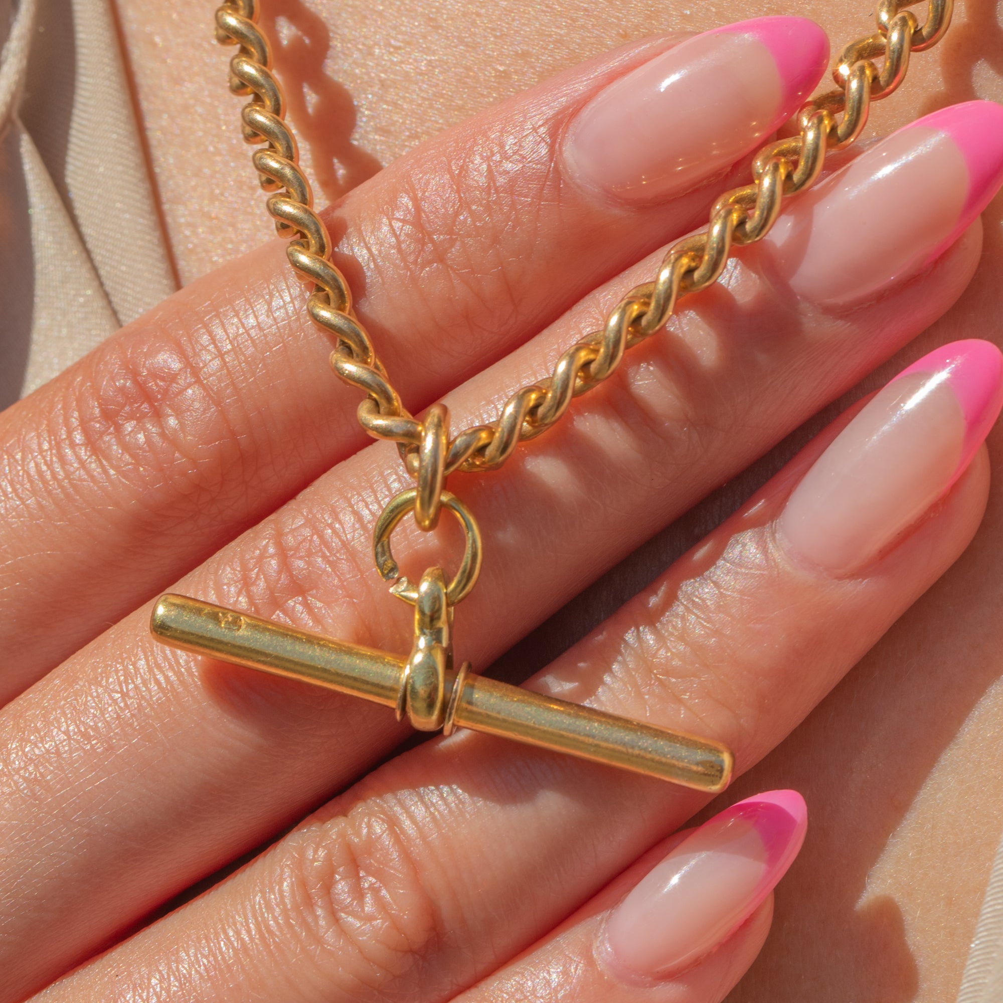 This Albert chain is complete with two sought-after dog-clips and a large antique t-bar pendant, providing ample opportunities to style this standout Victorian chain. A magnificent piece, she is soon to become a staple in your collection.