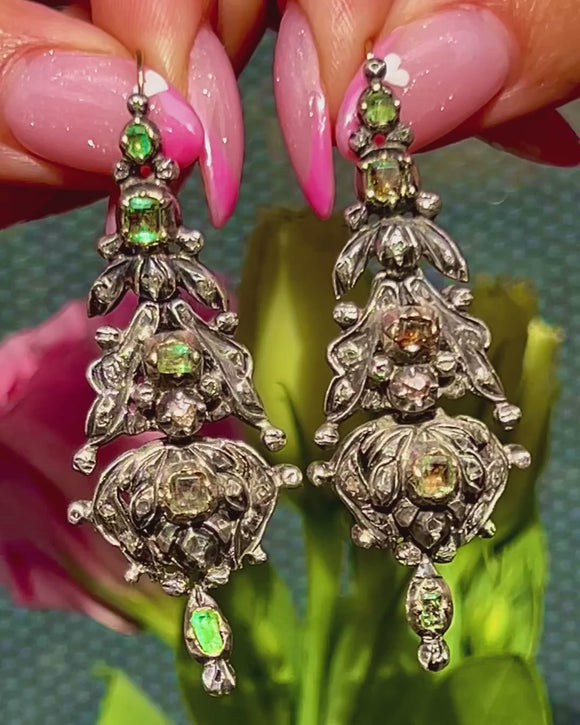 Iberian Emerald & Rose-Cut Diamond Drop Earrings, c.1780-1790
