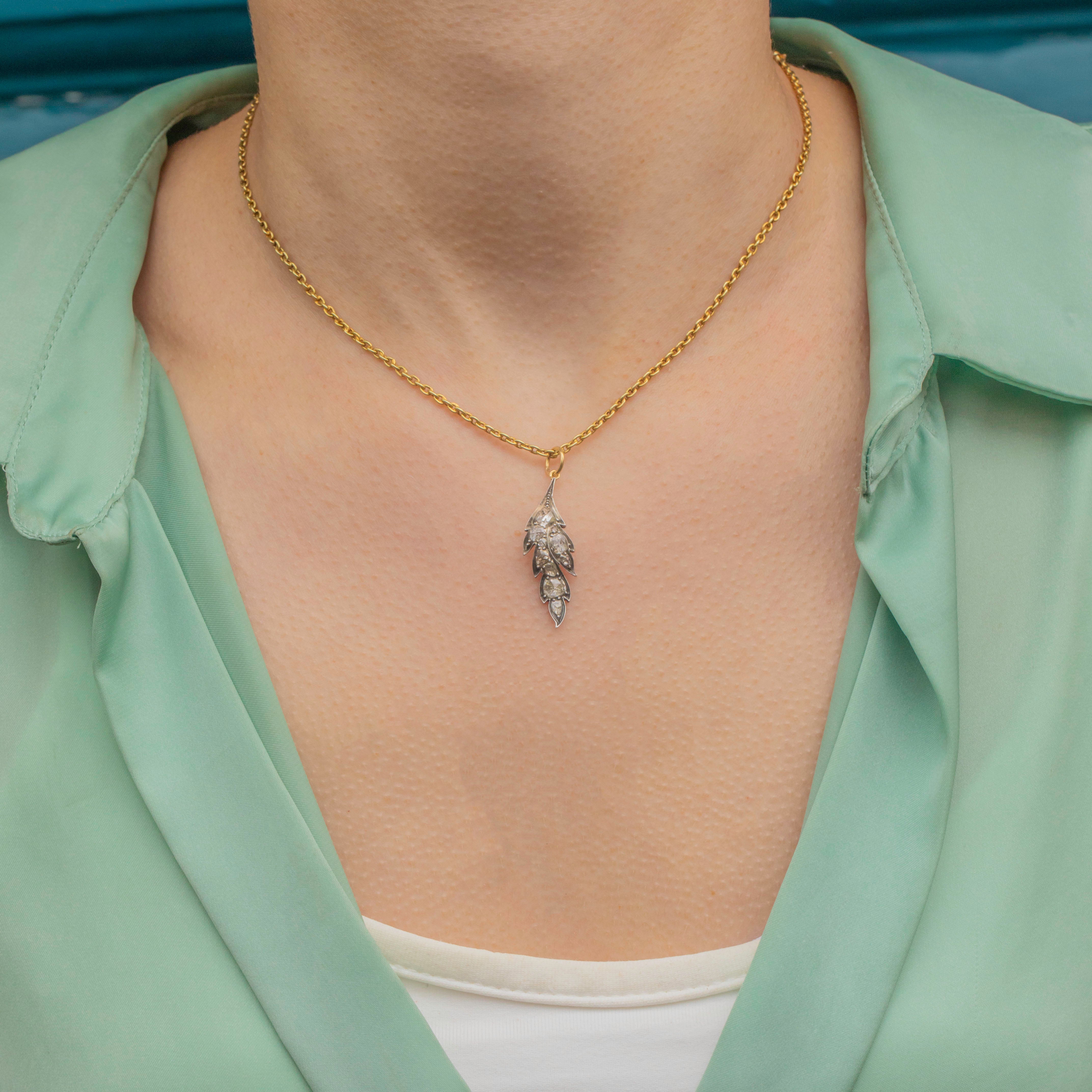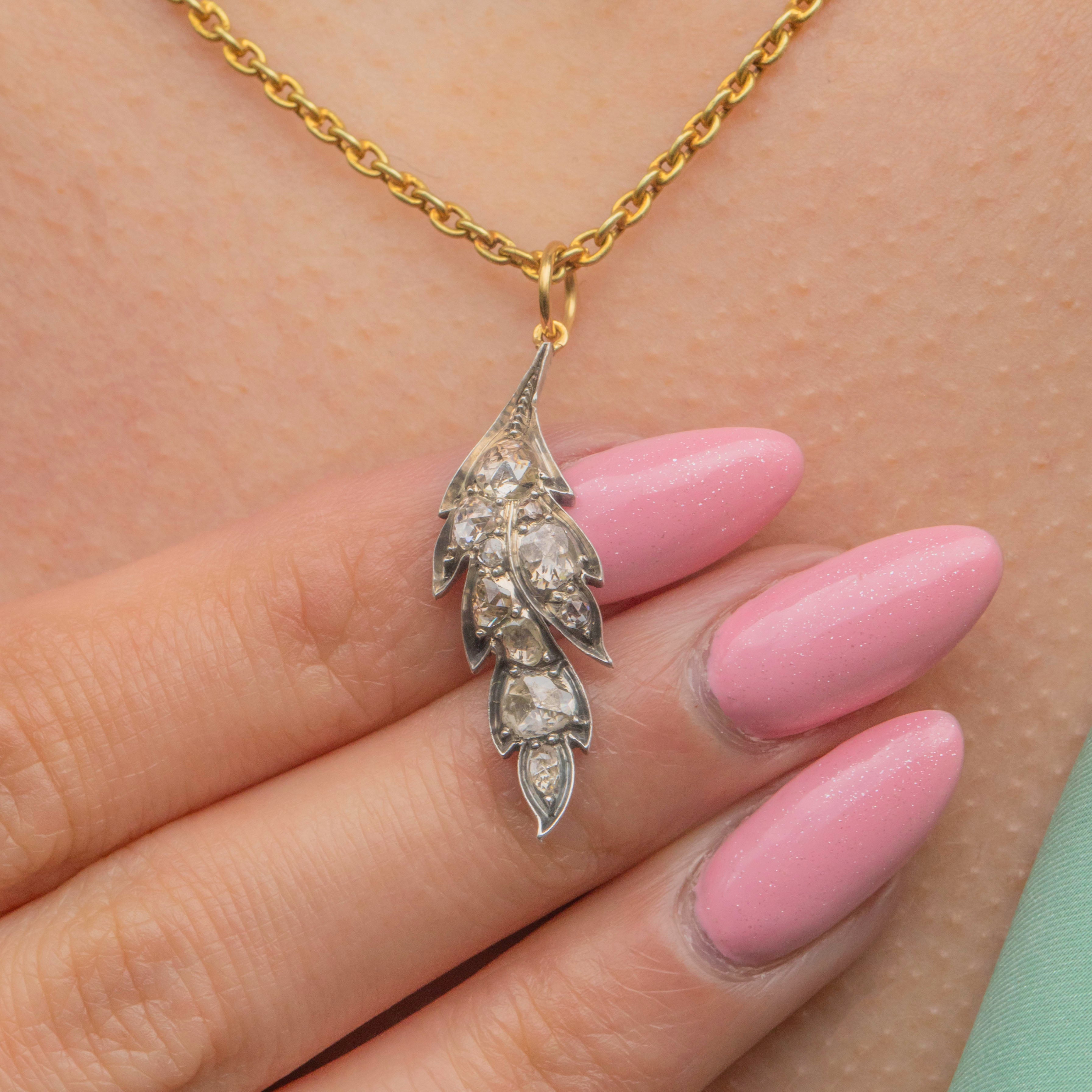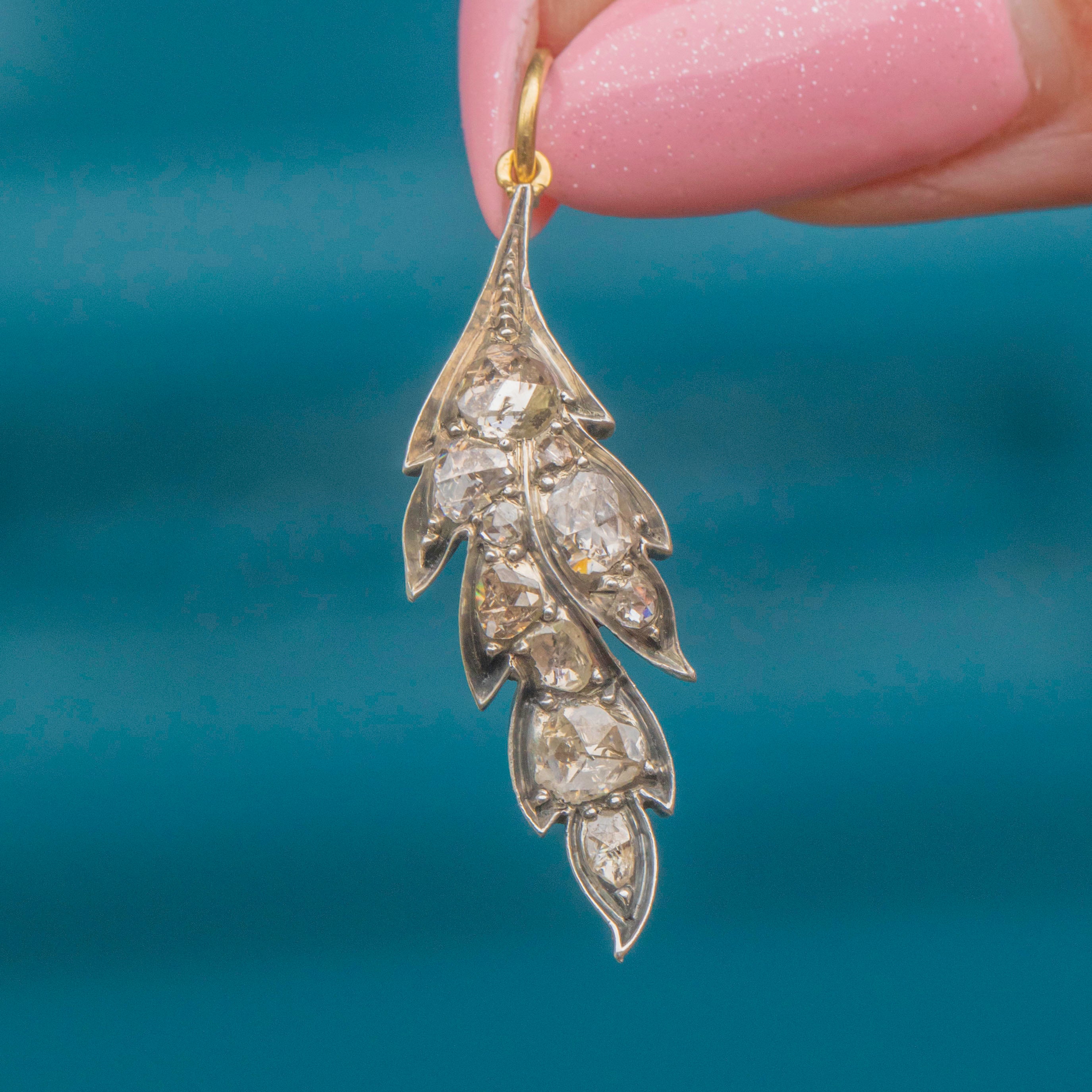This outstanding Georgian rose-cut Diamond leaf pendant will make an enchanting addition to your collection! The defined leaf form is inlaid with 0.75cts of scintillating rose-cut Diamonds across its curved profile, bringing it to life.