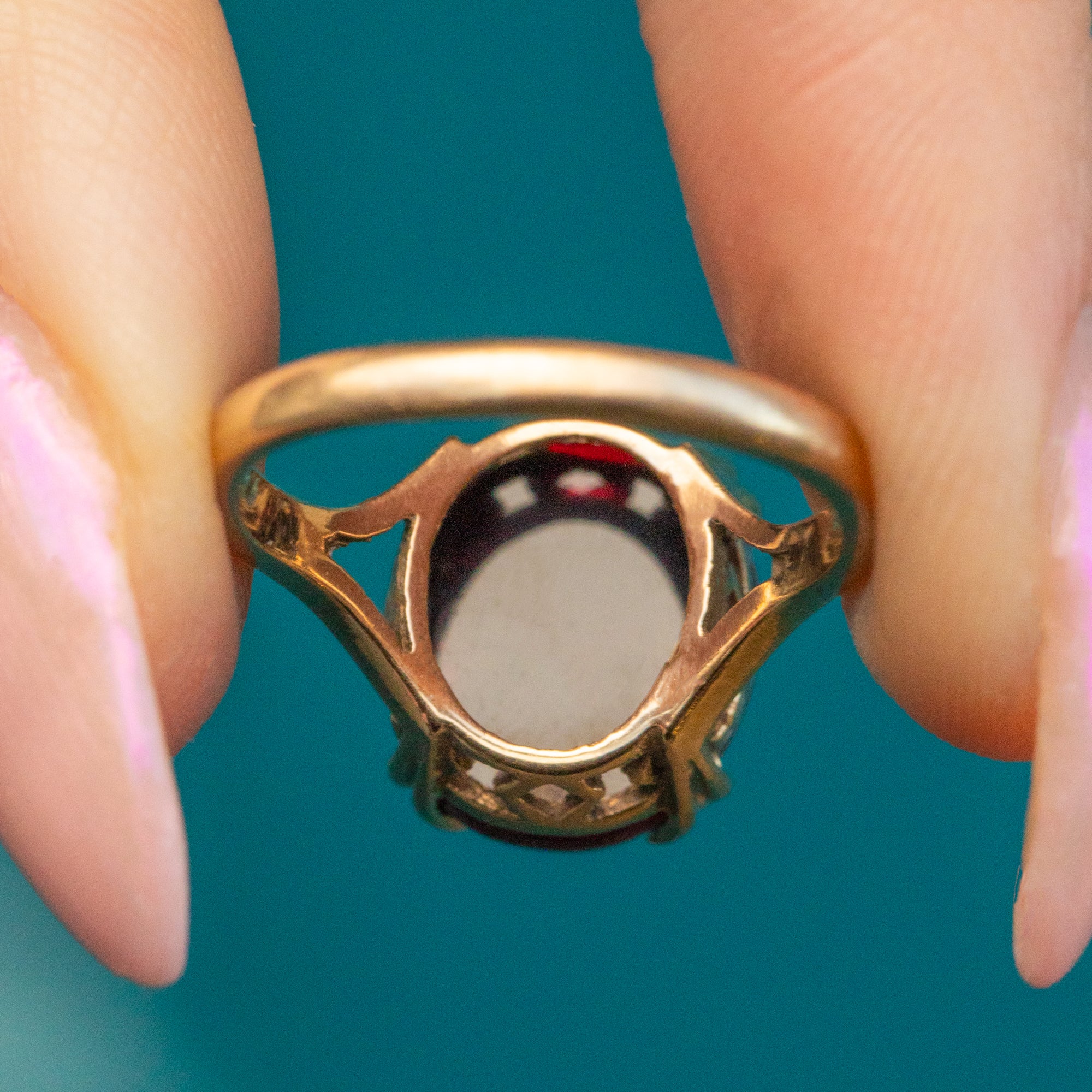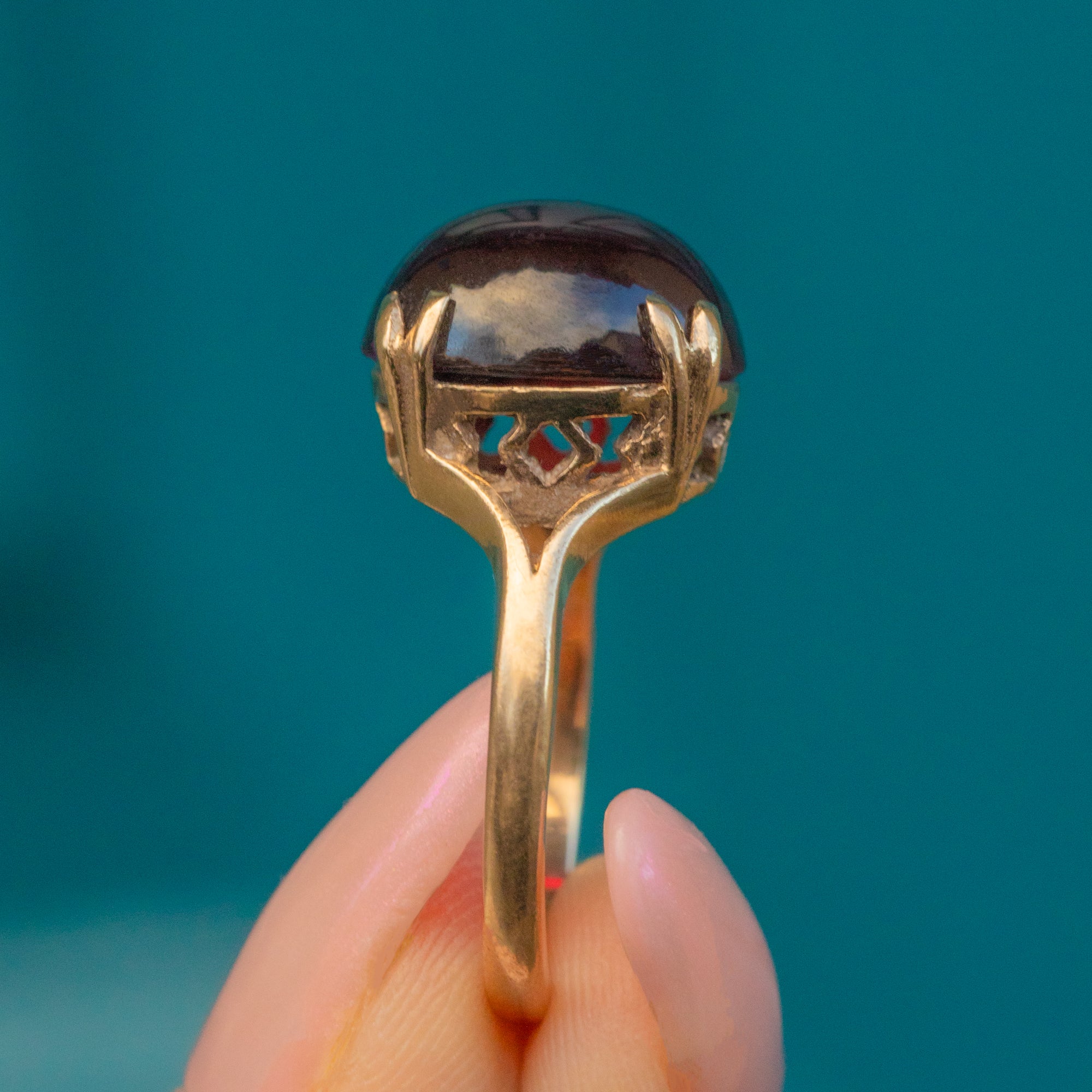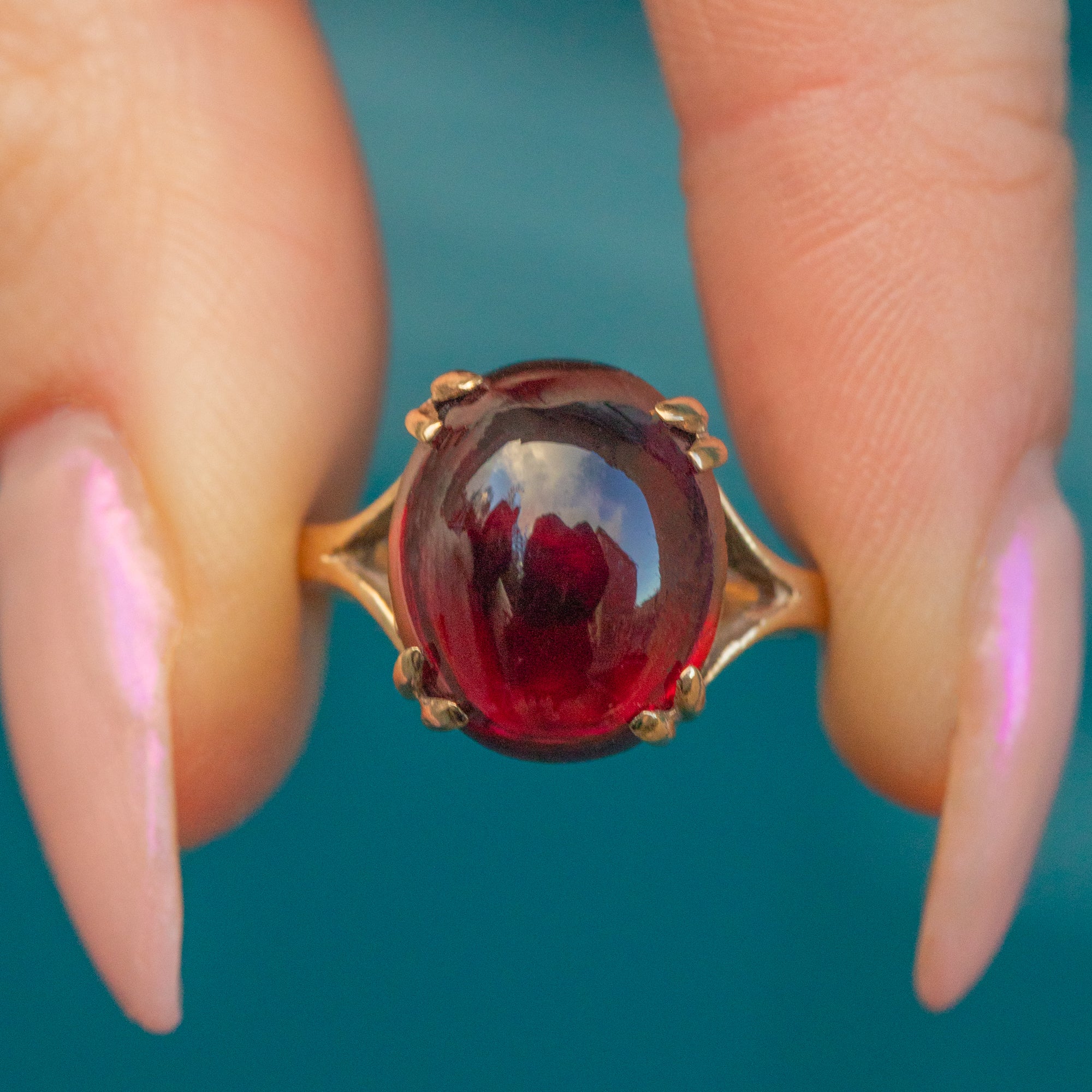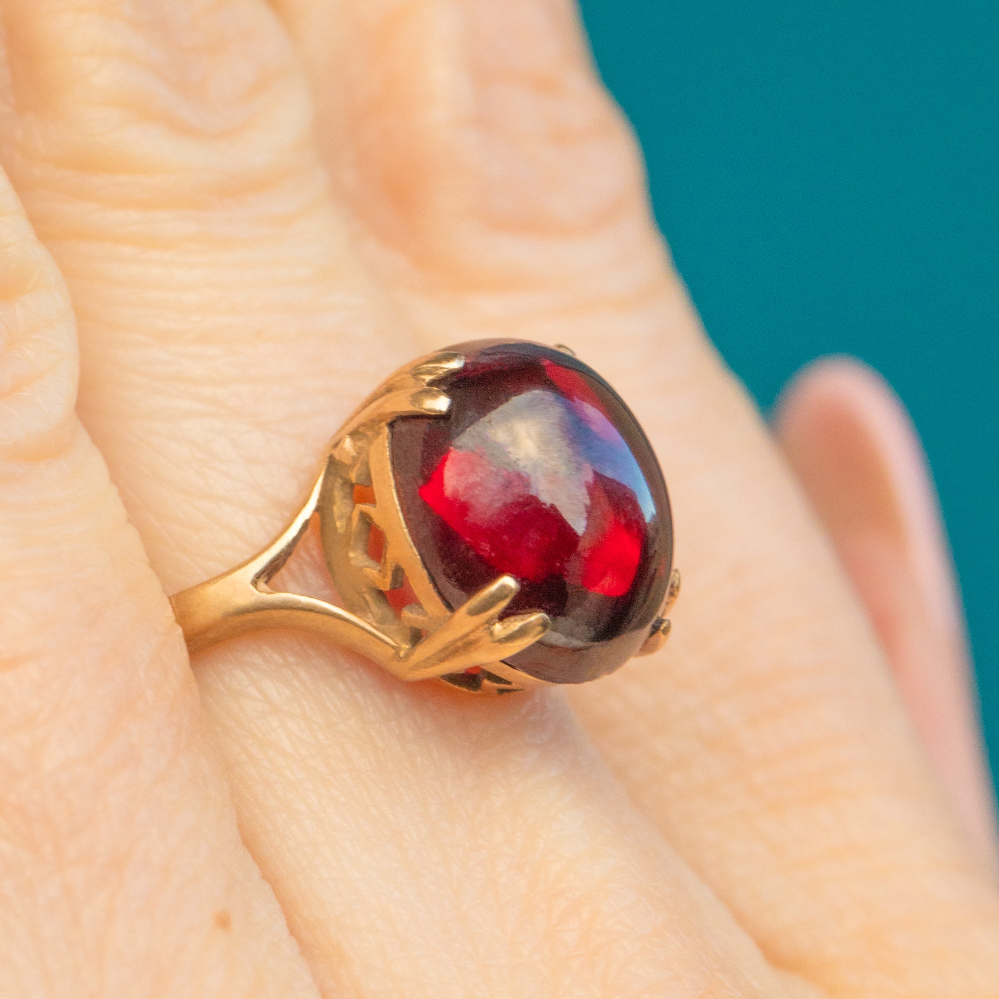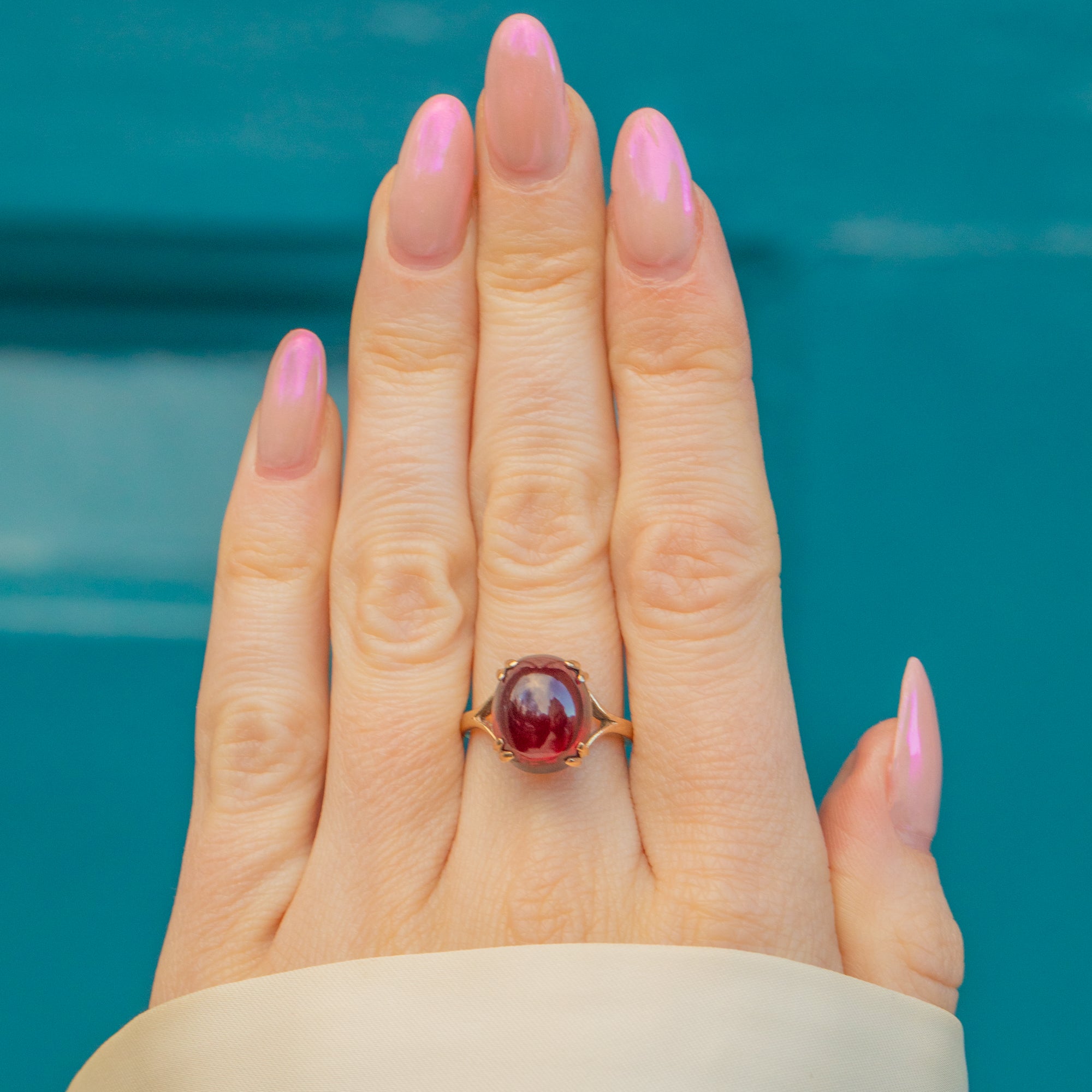 This 9ct Gold Ruby cabochon ring is the perfect berry red hue; smoothly domed, this synthetic Ruby cabochon looks good enough to eat!