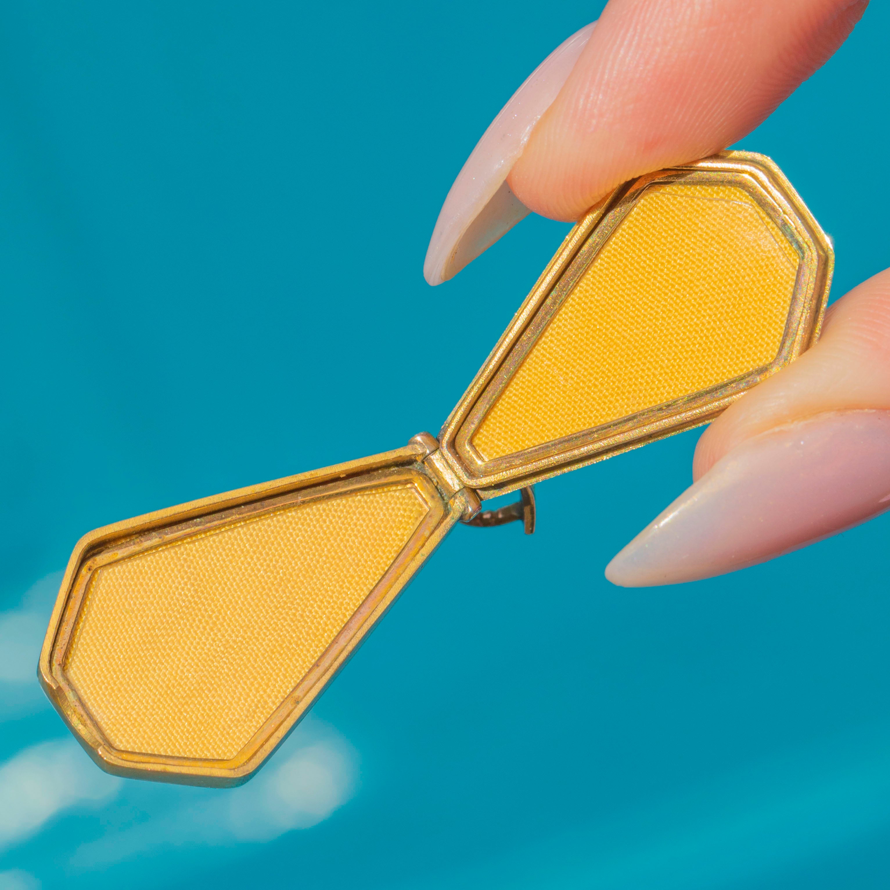 Inside are two original frames, ready to hold treasured photographs or keepsakes, while the bale allows it to be worn elegantly on a chain. A wonderful collector’s piece marrying utility and design with unmistakable Art Deco flair.