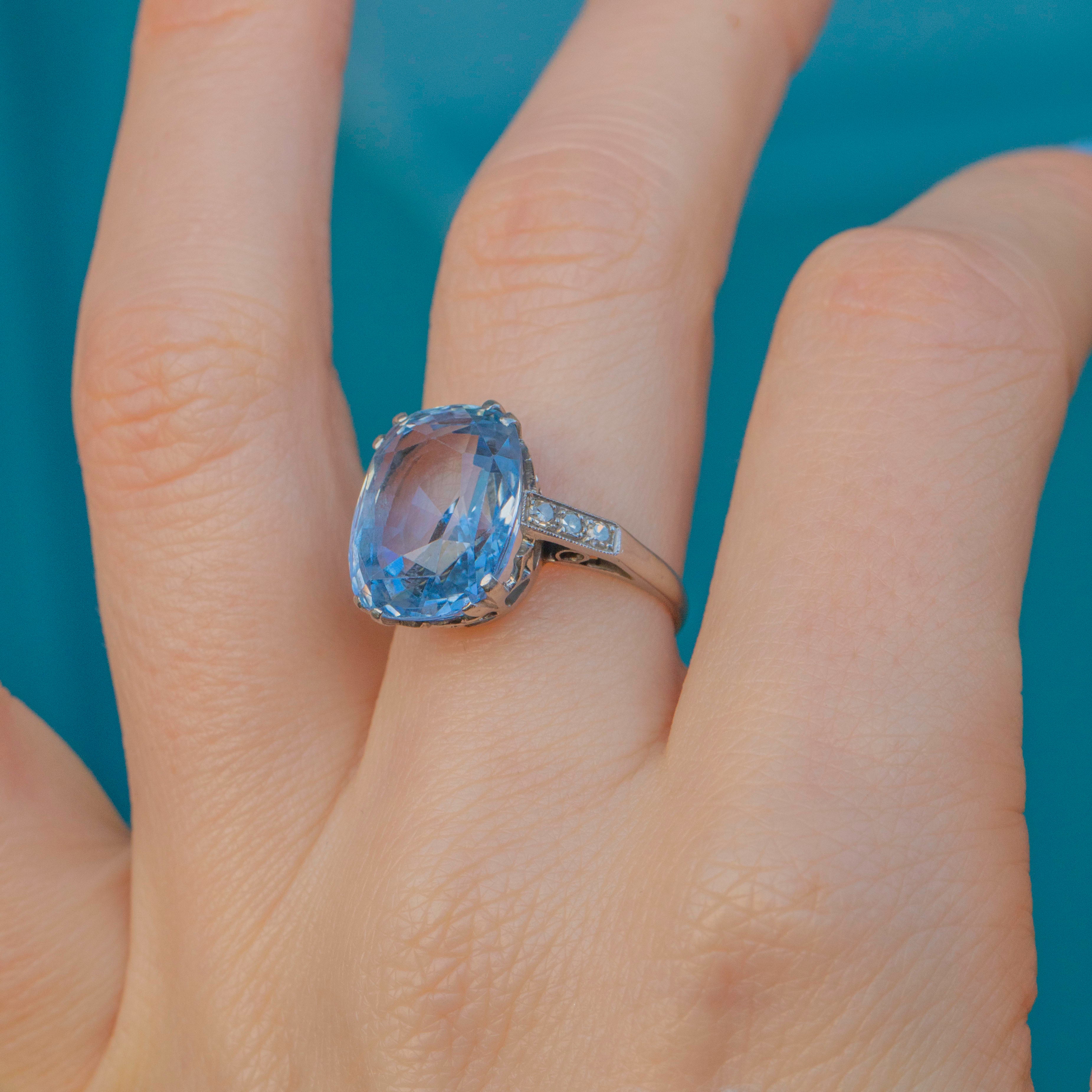 Art Deco Platinum Cornflower Blue Natural Sapphire Diamond Ring 8.00ct