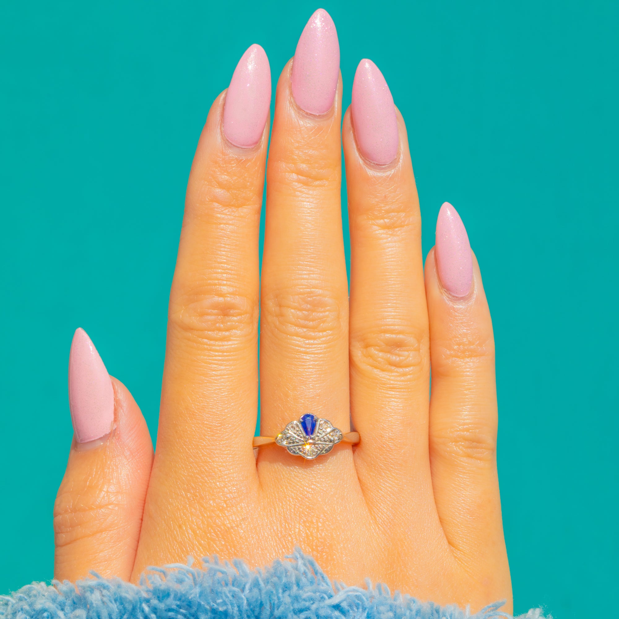RARE Art Deco Sapphire & Diamond Fan Engagement Ring, 18ct Gold & Plat