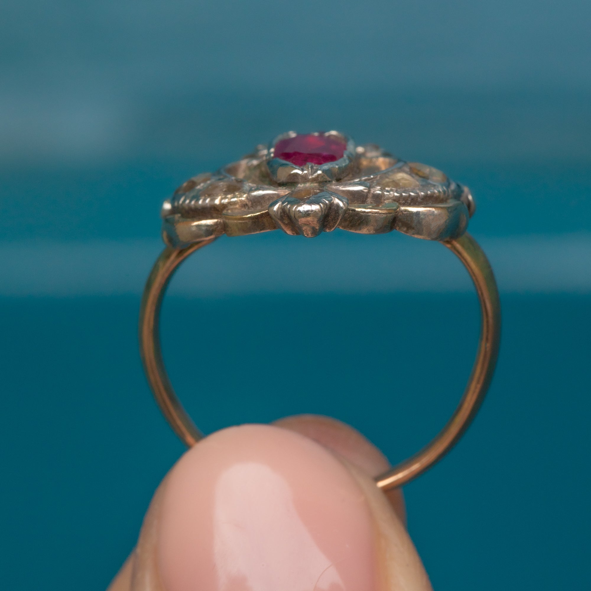 Rare Georgian Ruby Diamond Giardinetti Ring, c.1760