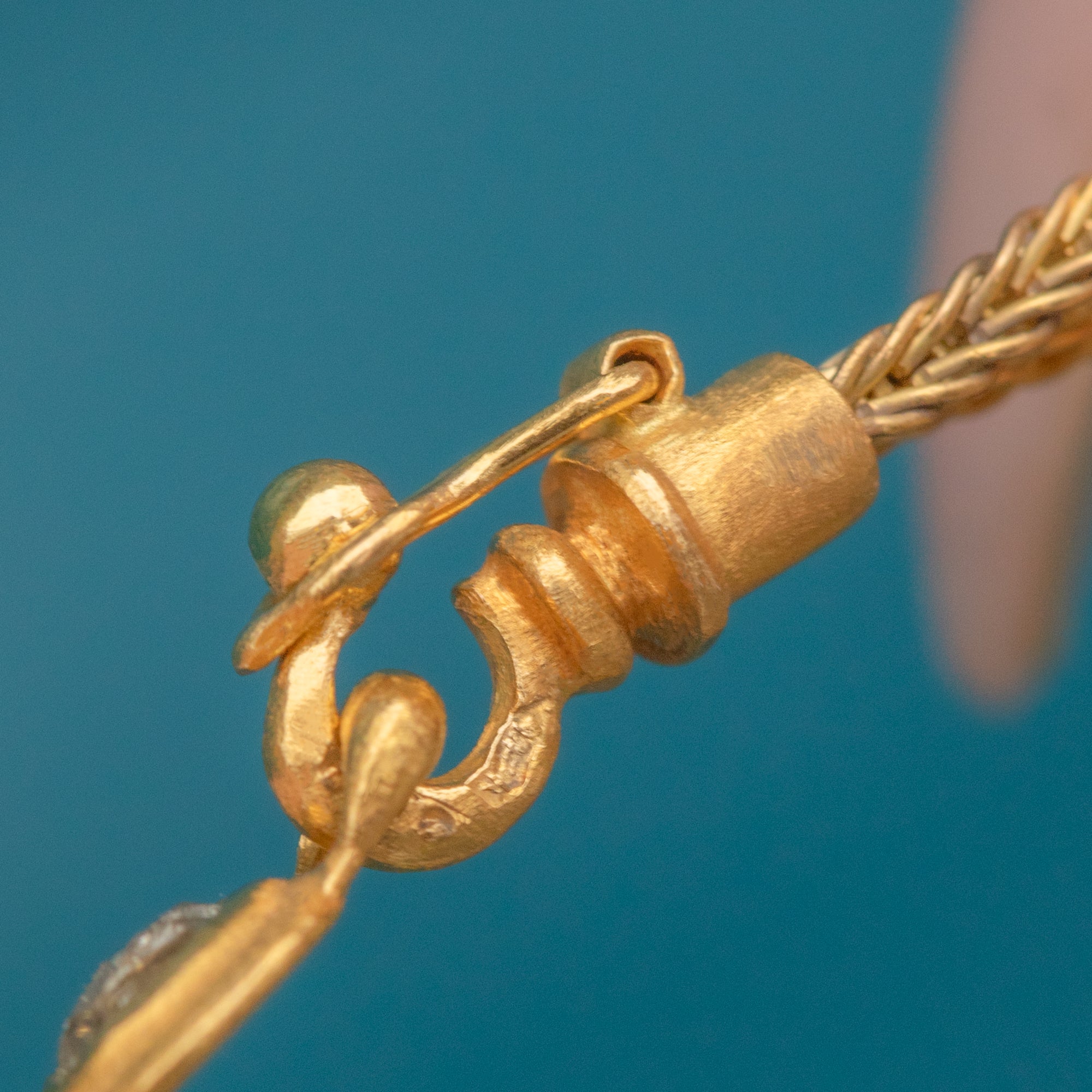 Testing between 15ct and 18ct Gold, the bracelet combines intricate craftsmanship with rich materials. Its mixture of tones and textures makes it an extraordinary jewel, full of warmth, history, and individuality.