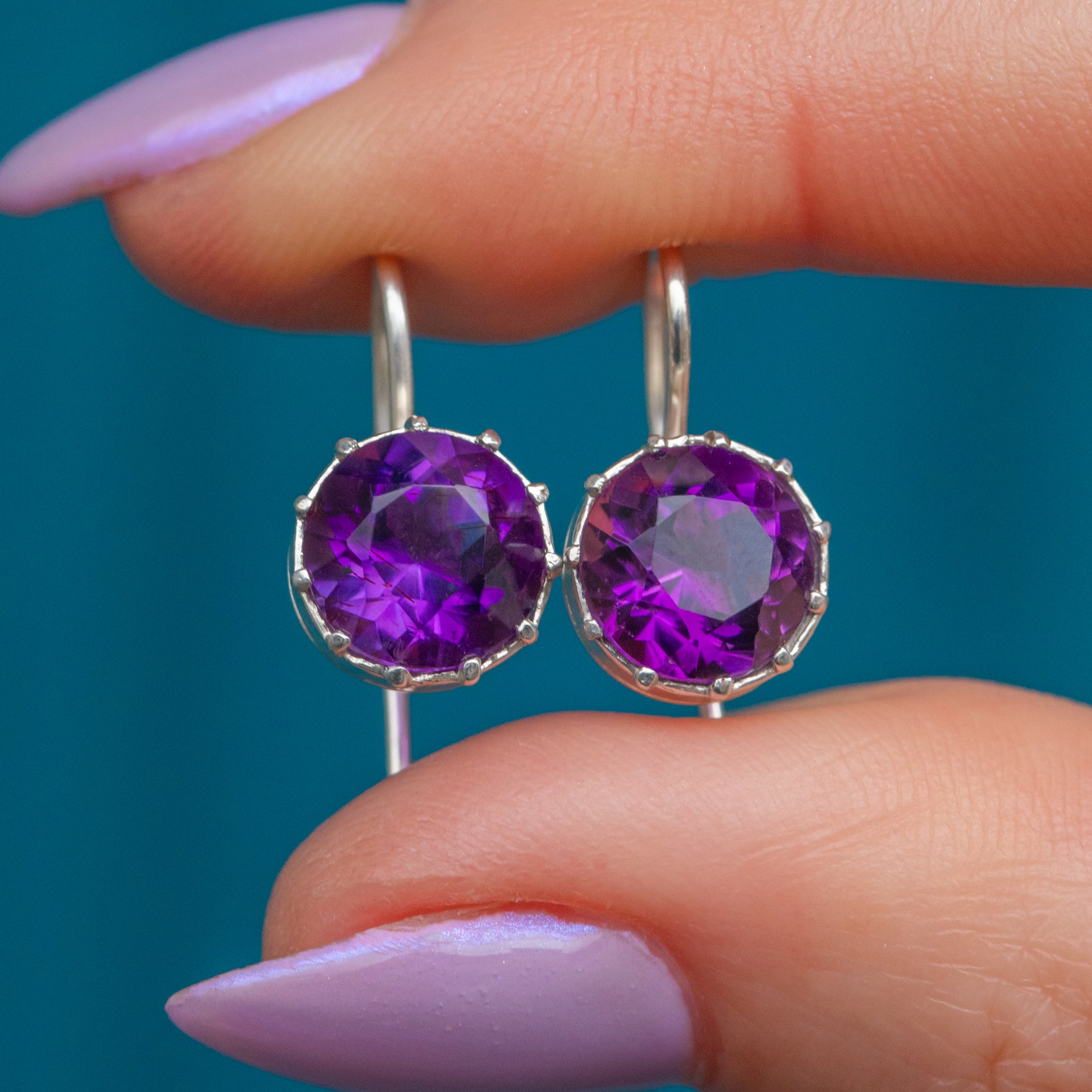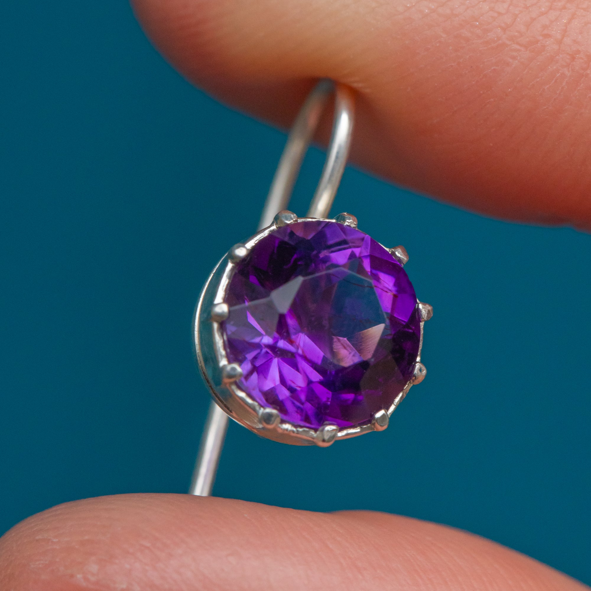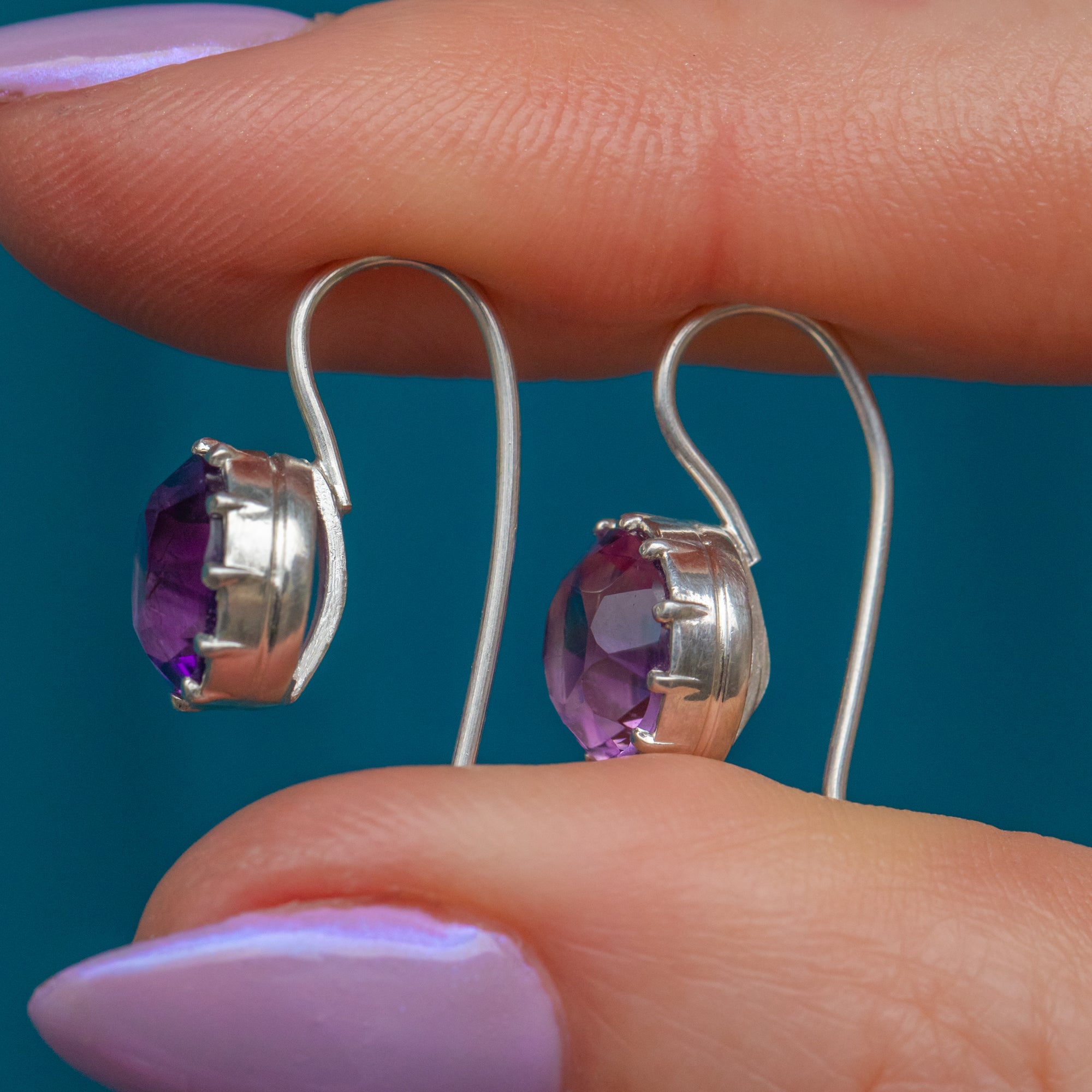 The Amethysts have a gorgeous deep purple hue with large facets on the front showcasing an abundance of playful geometric shapes as they catch the light!