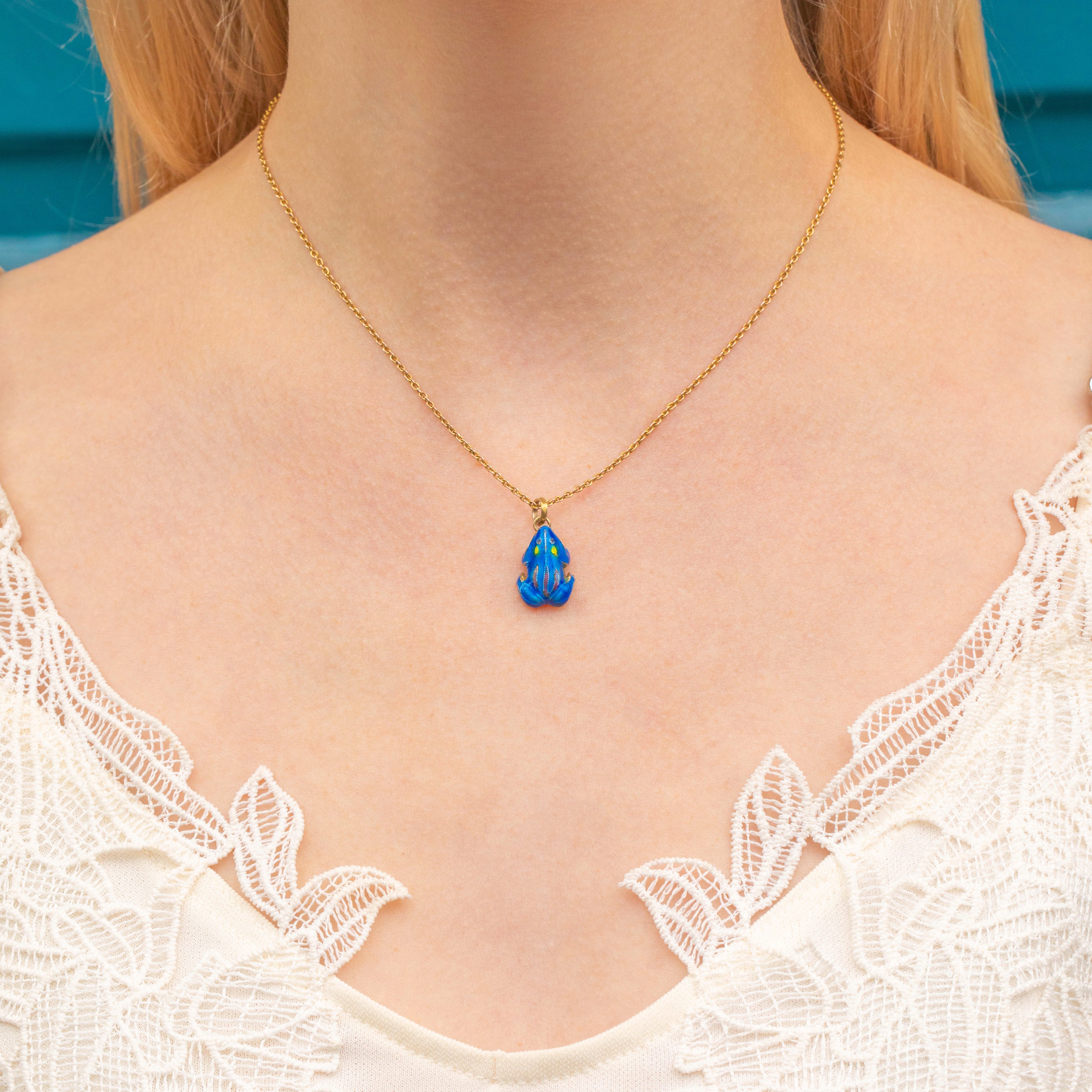 This happy little Silver Blue Enamel Frog charm is a joyful delight! Crafted in Silver and gilded with a buttery 9ct Gold, this Mid-Century frog charm boasts an exquisitely detailed blue Enamel body with realistic markings in yellows and oranges.