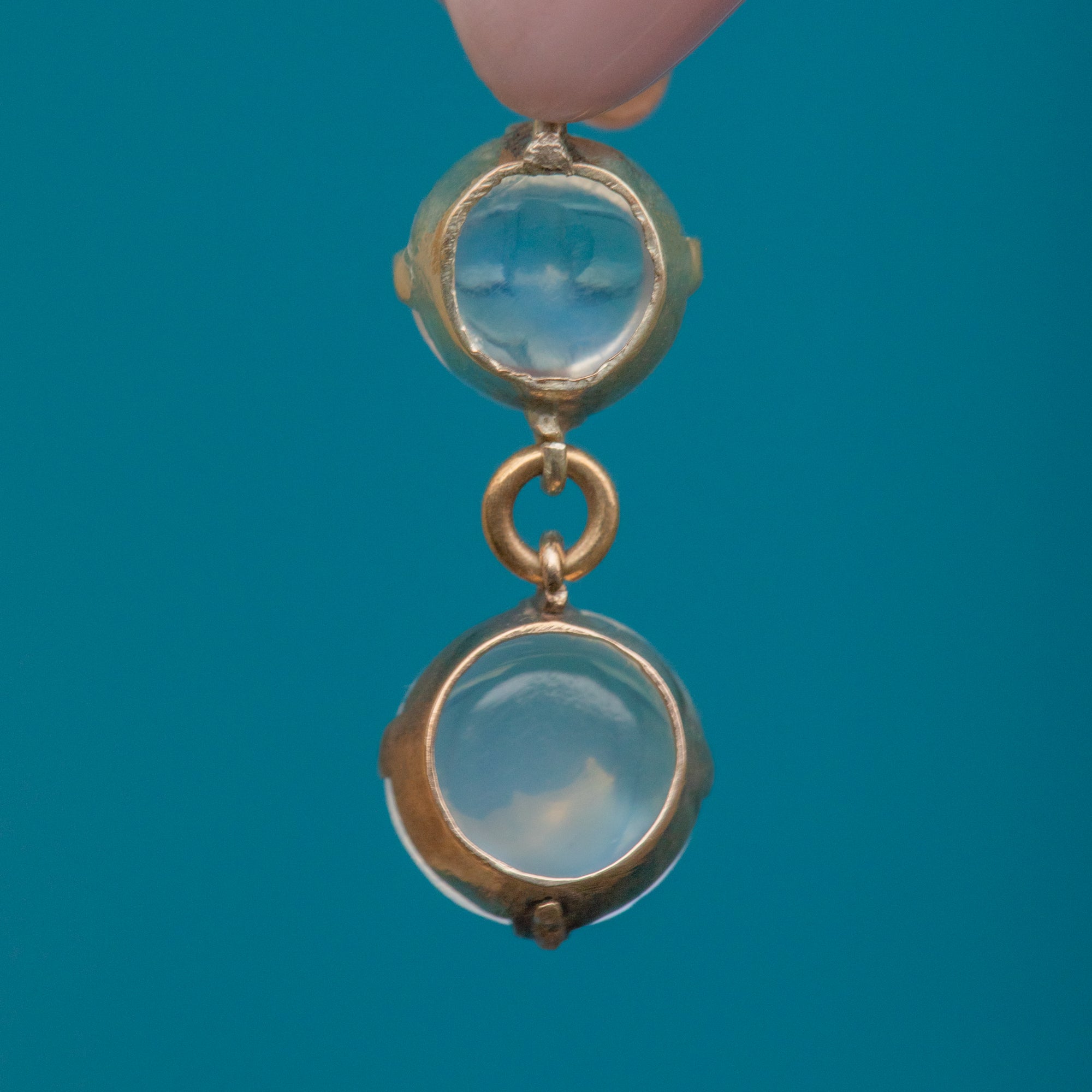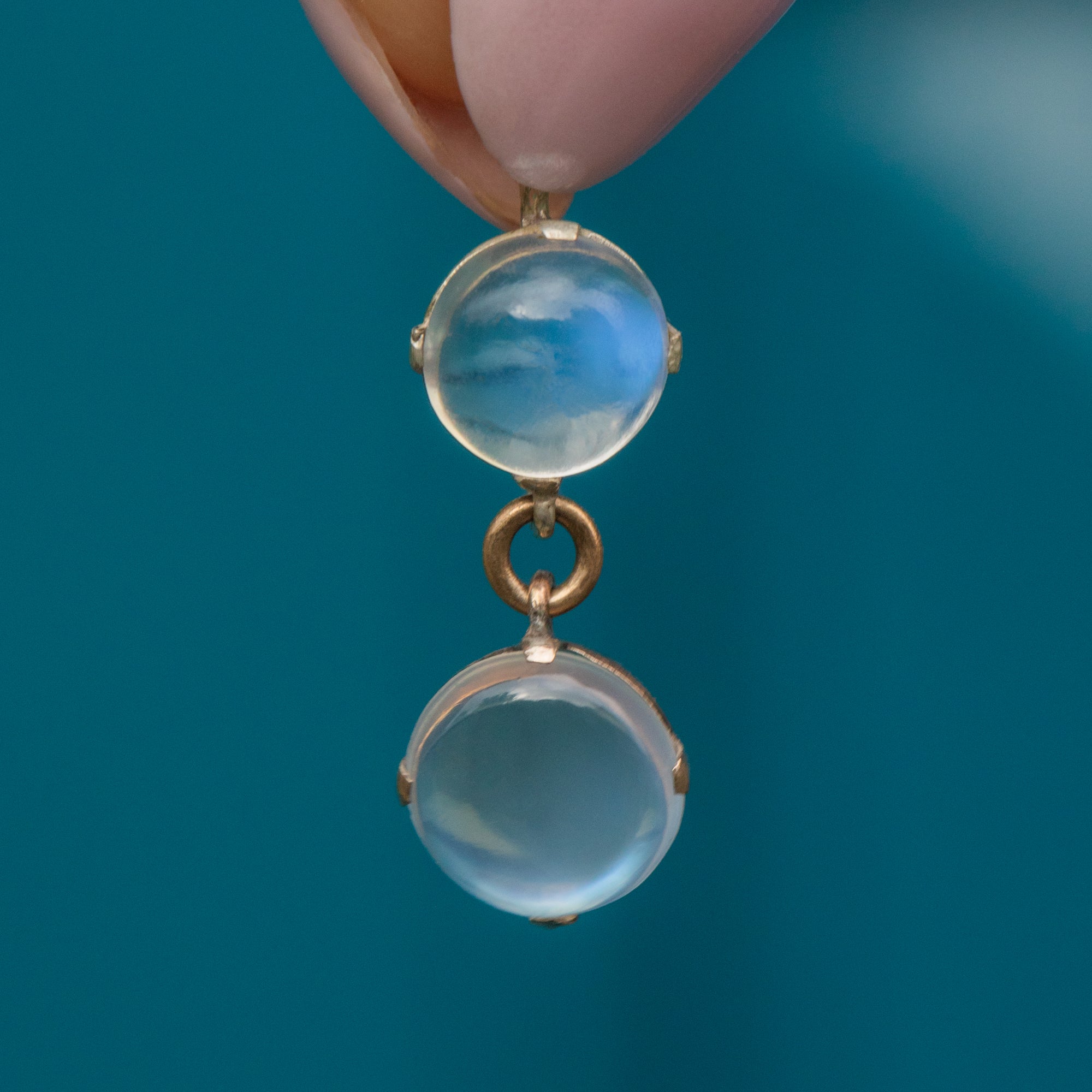 EXCELLENT. This Silver Moonstone drop charm is in excellent condition! Each Moonstone is securely set, oozing an admirable adularescence, and is free from any signs of wear. The Silver has retained its structural integrity and accrued a gorgeous patina over the years adding to her vintage charm. She is sublime!