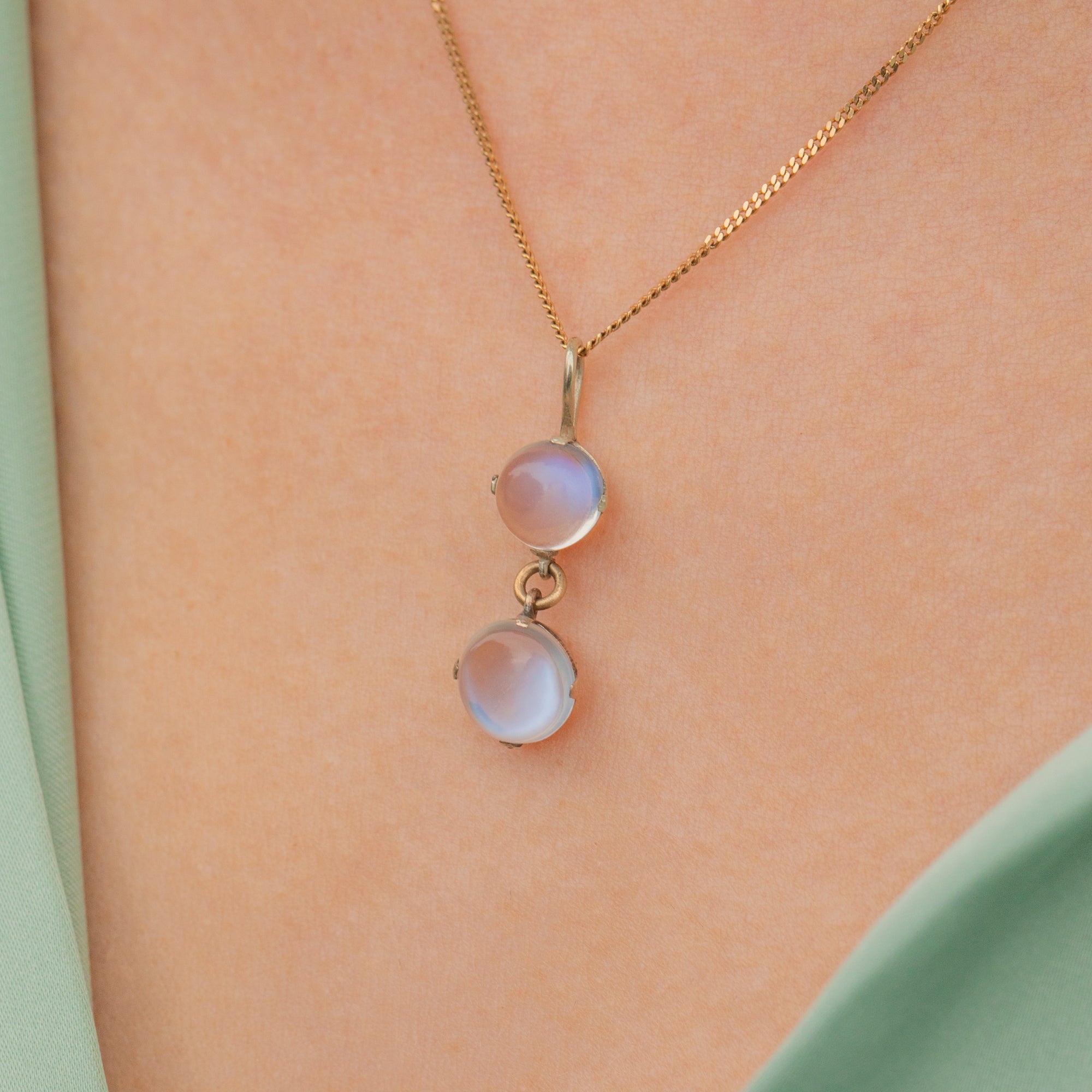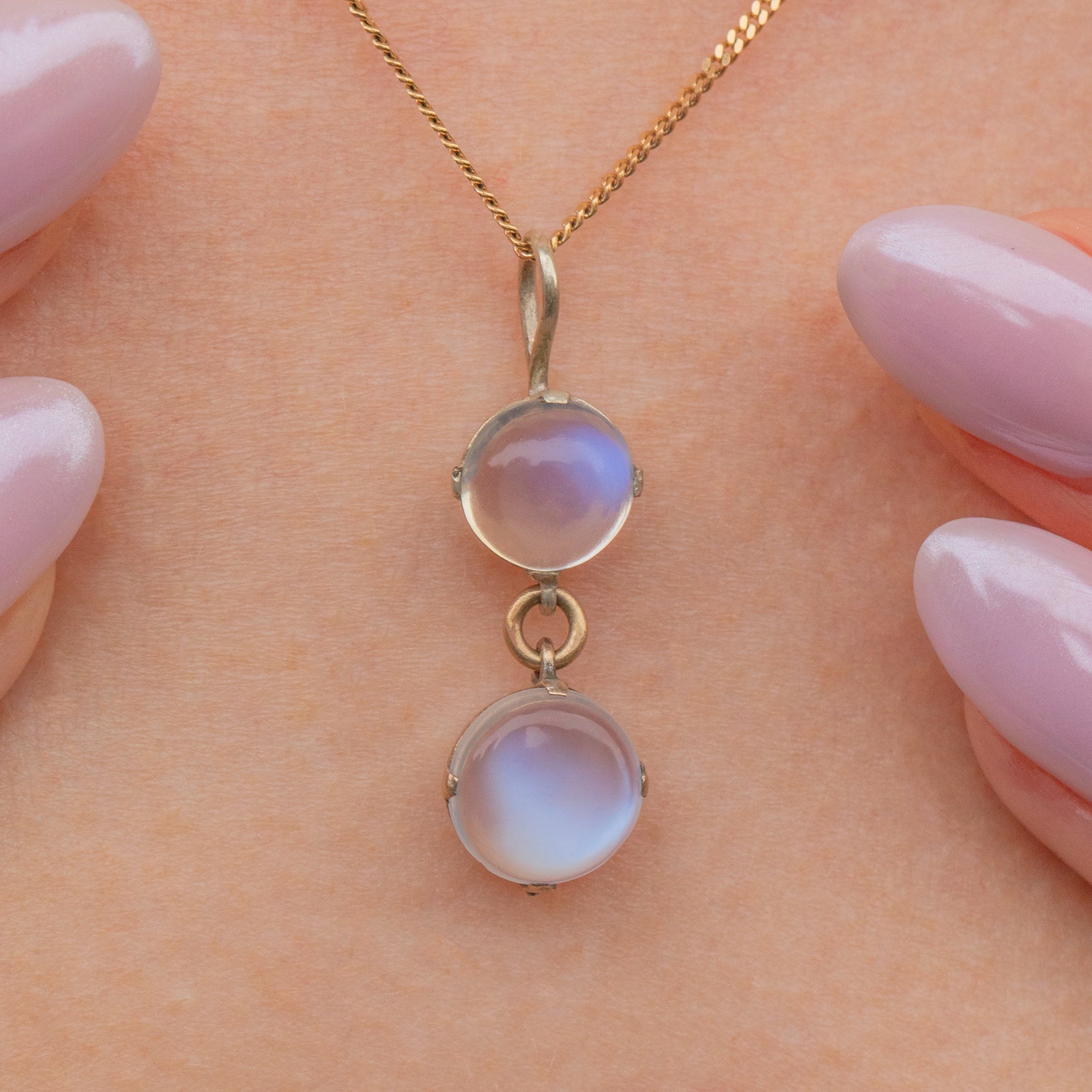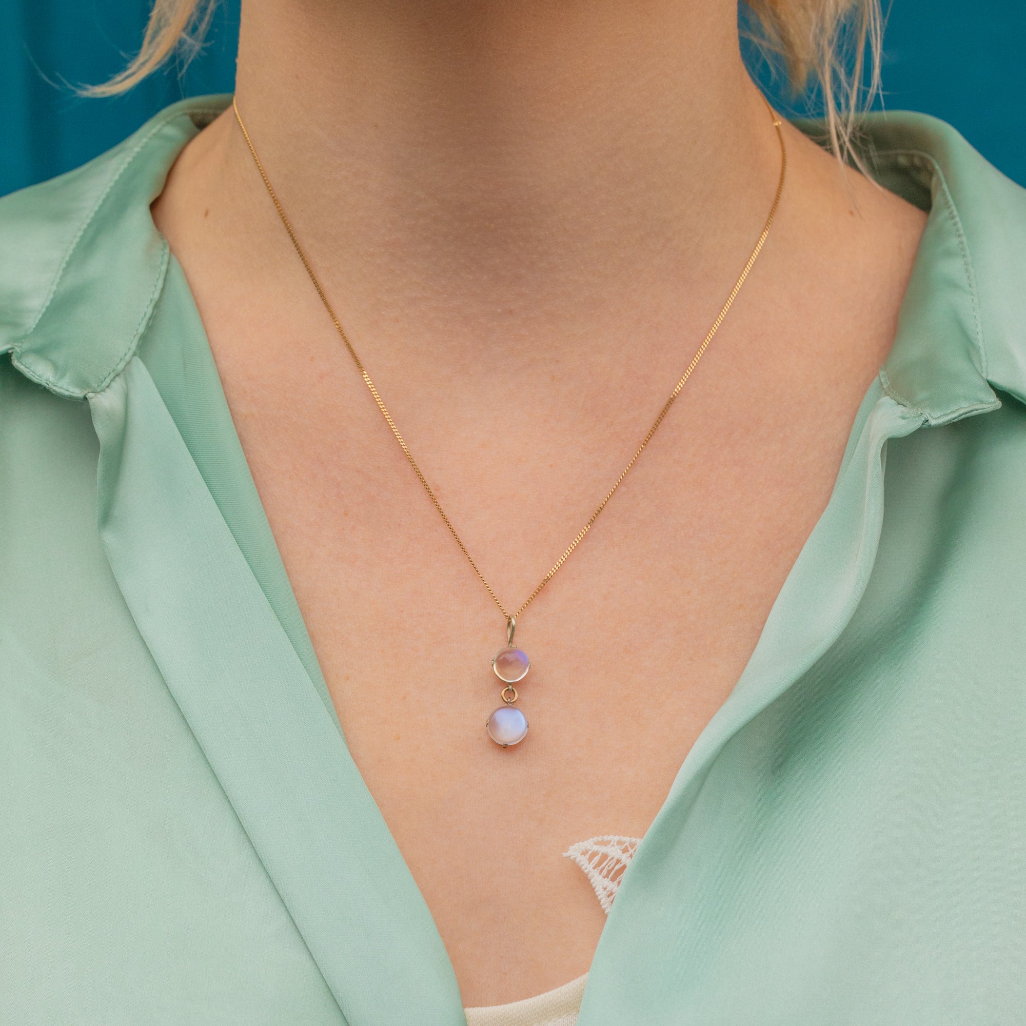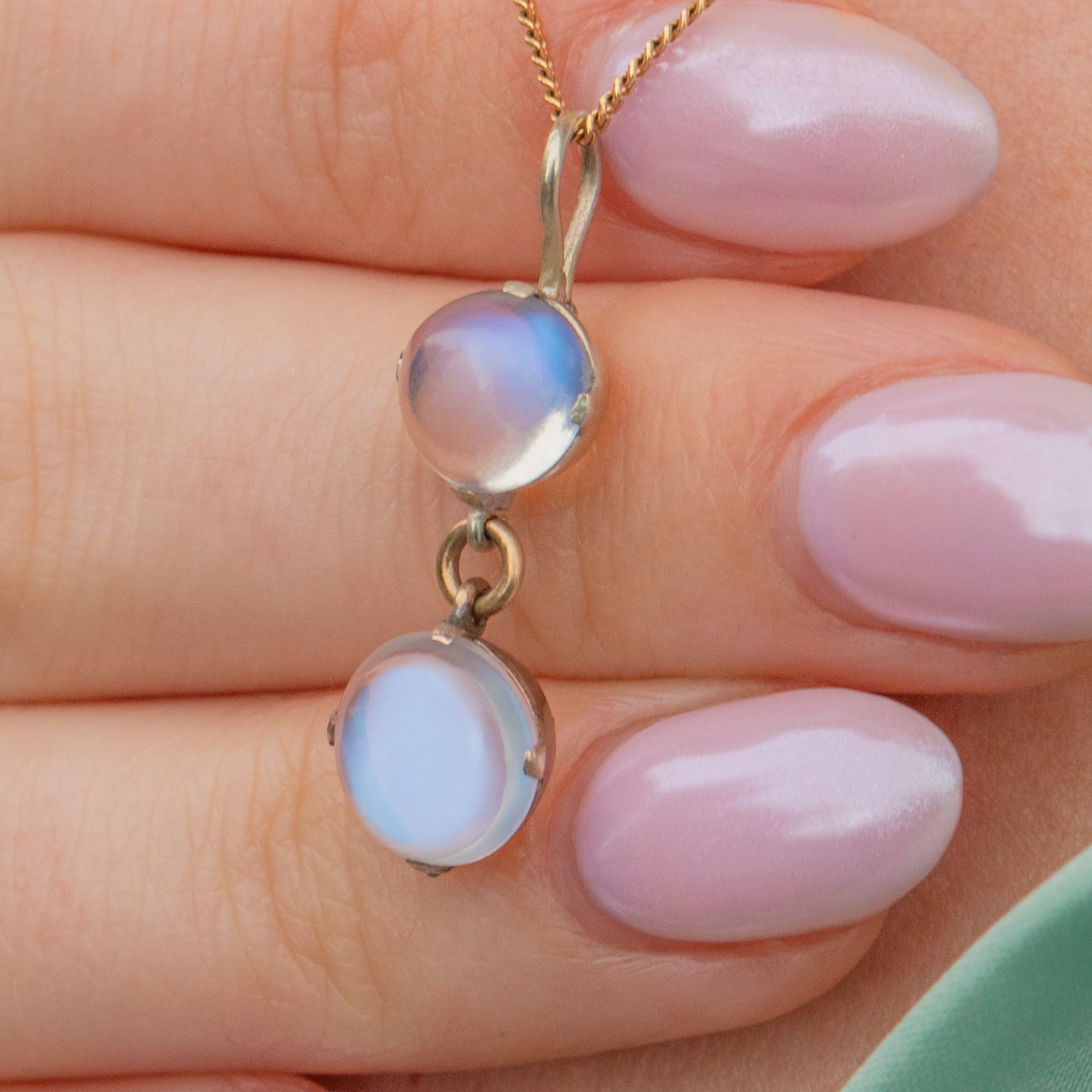 Sterling Silver encases each Moonstone forming the Mid-Century Vintage charm's elegant drop. Her petite form makes for the perfect finishing touch to any sophisticated attire. Simply suspend this vintage charm from a fine Silver chain and soak up her splendour as she adorns your neck.