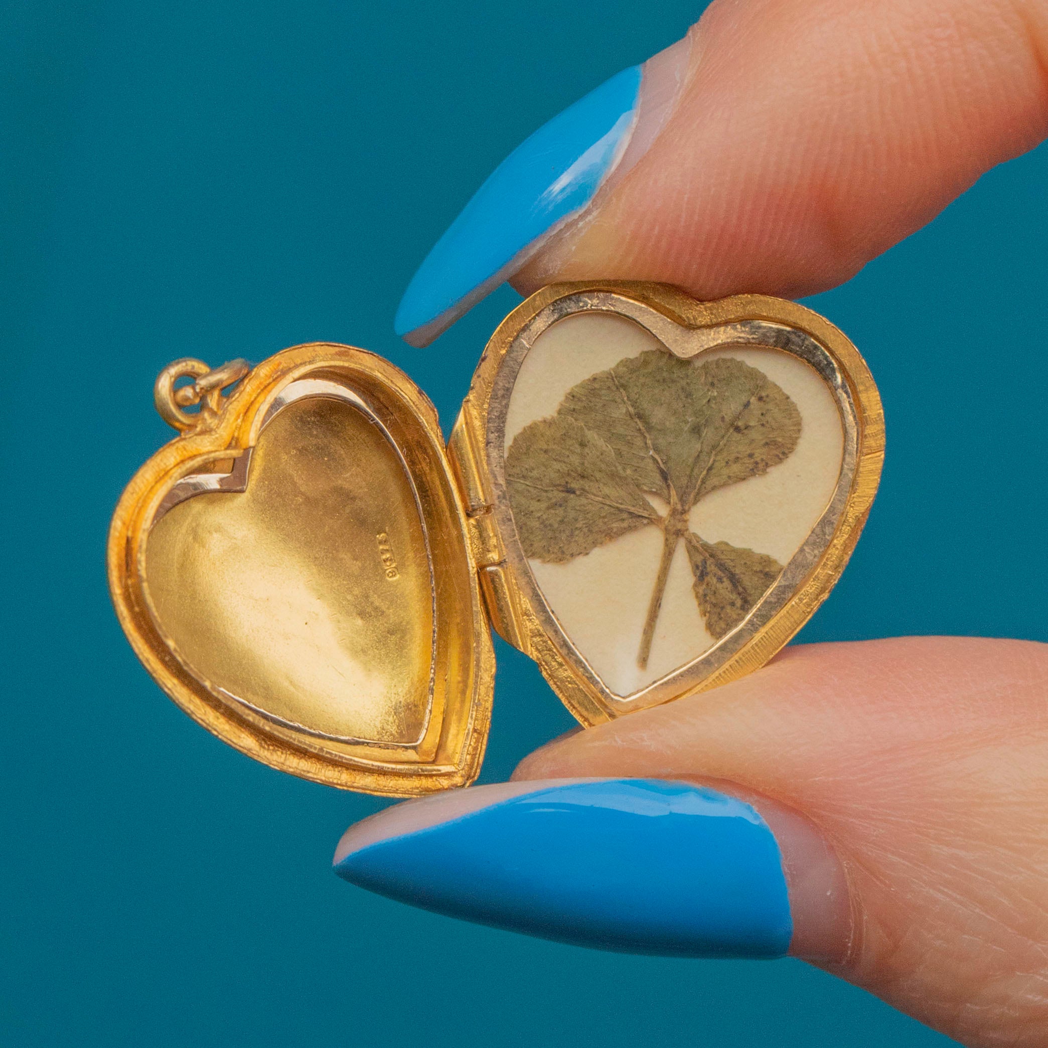 Even more special, the interior features a real pressed four-leaf clover, carefully preserved under a pane of glass—adding an extra touch of luck and sentimentality. Whether as a personal keepsake or a thoughtful gift for a loved one, this mid-century locket is a true treasure.