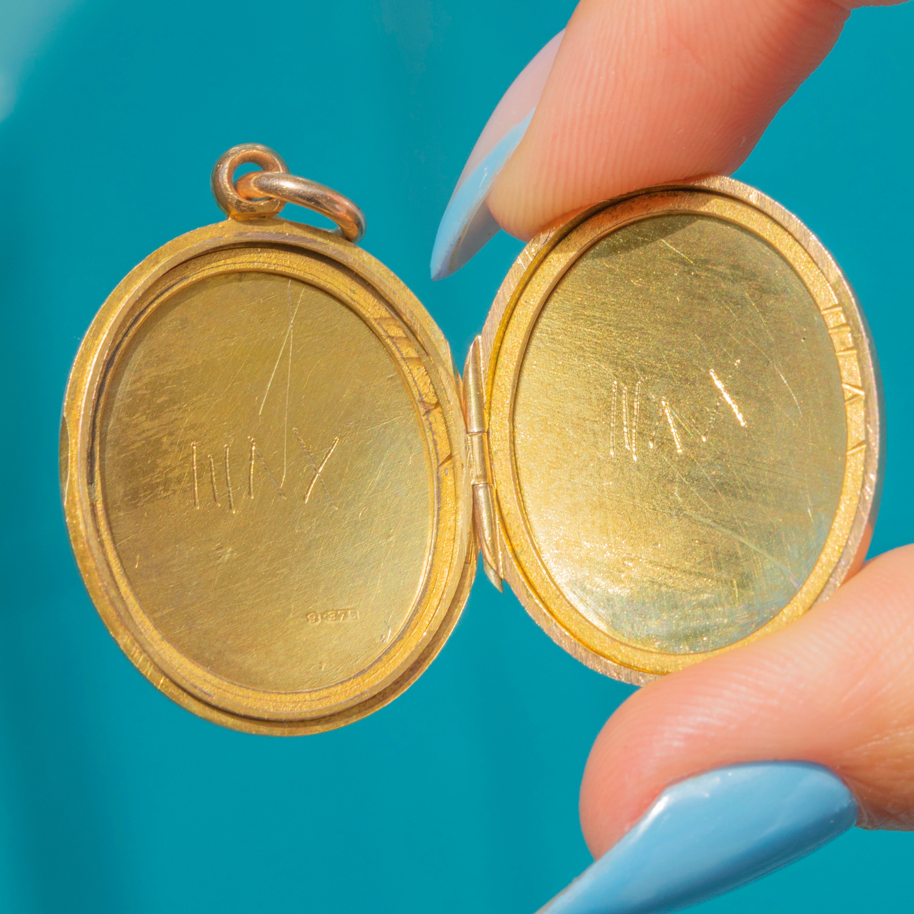 Solid 9ct Gold Engraved Oval Locket c.1919