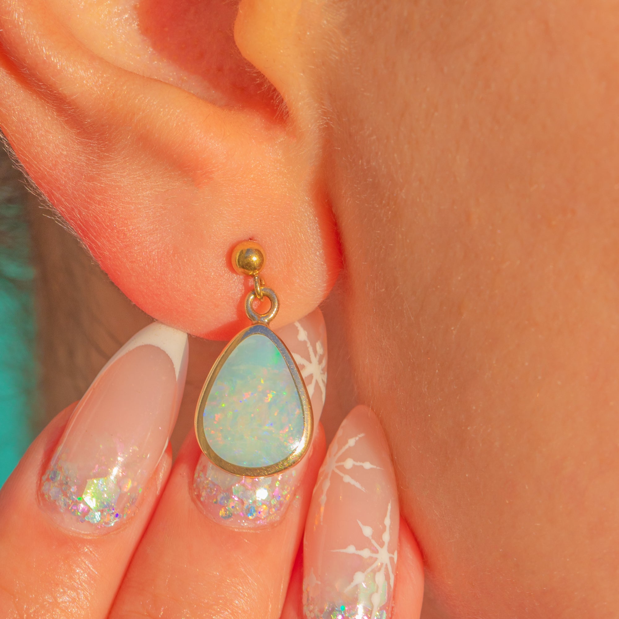 Solid 9ct Gold Opal Pear Drop Earrings- 5.00ct Natural Opals