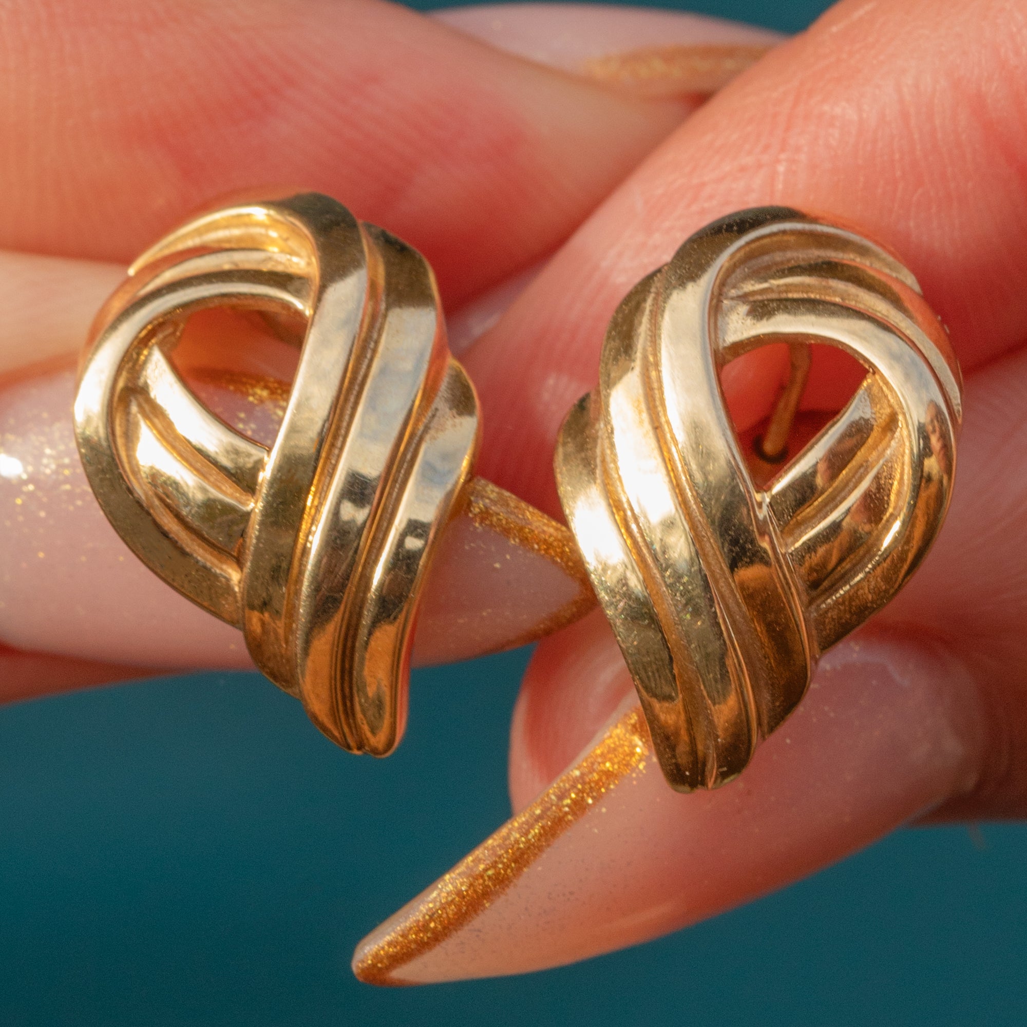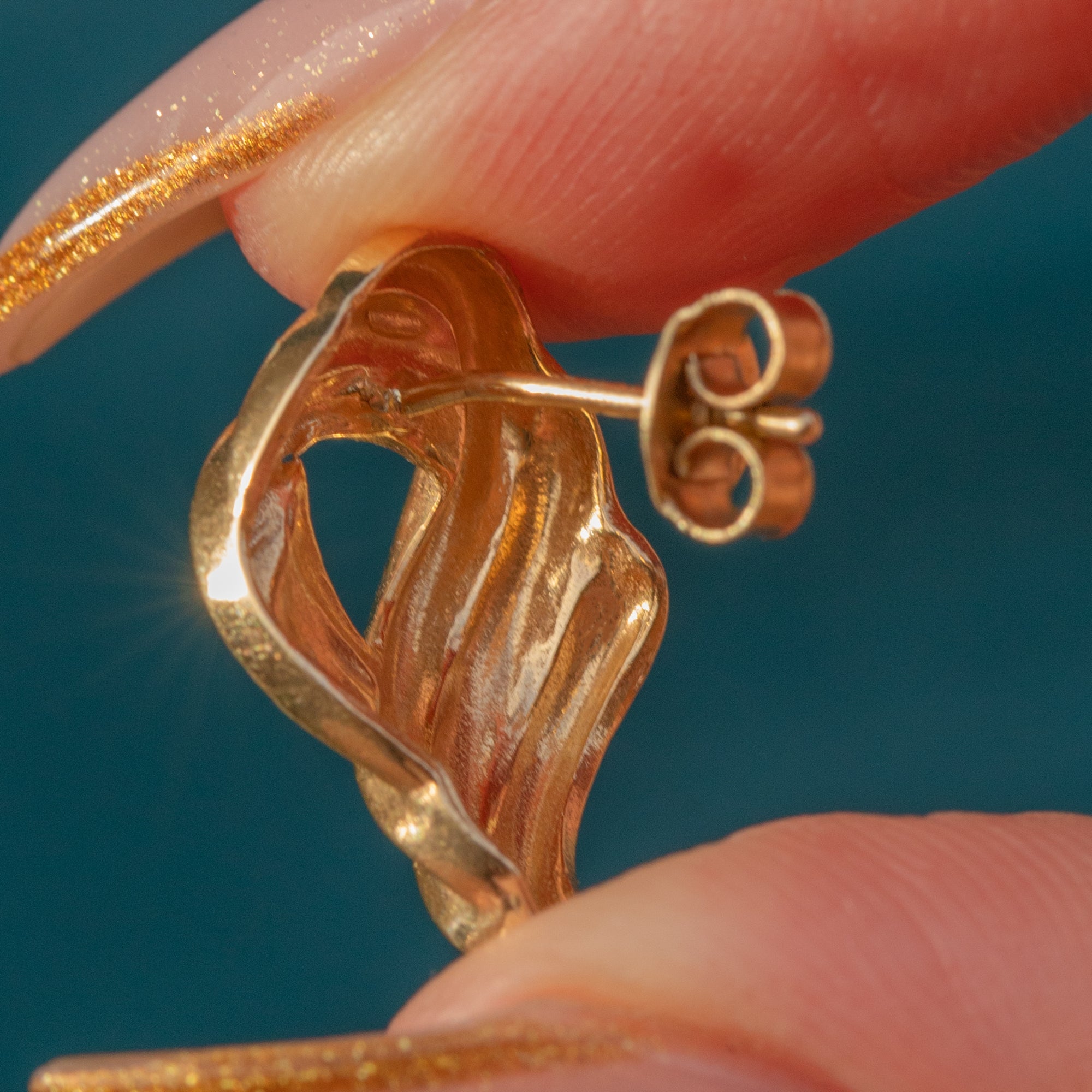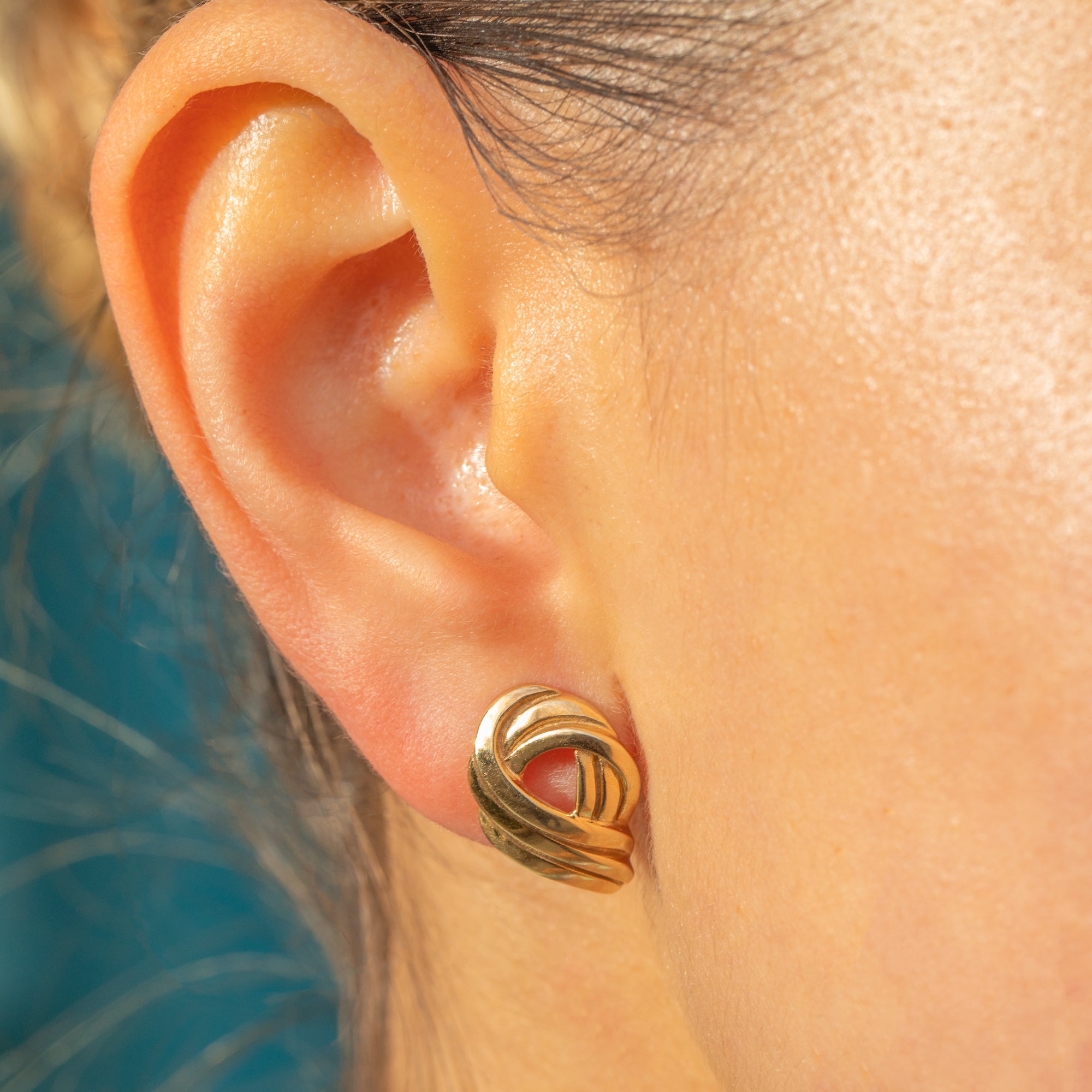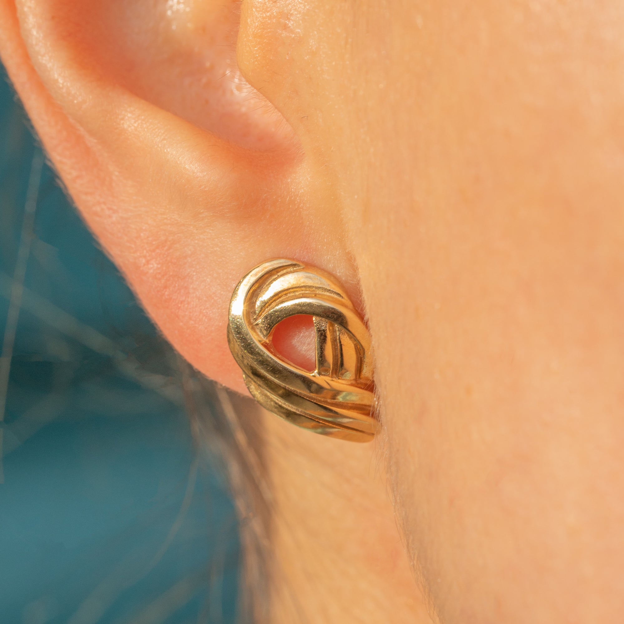 Chic and sculptural, these vintage 1980s 9ct Gold ribbon twist stud earrings bring effortless elegance to any look. Their fluid, folded design catches the light beautifully, adding soft movement and a touch of sophistication whether worn daily or styled for evening.