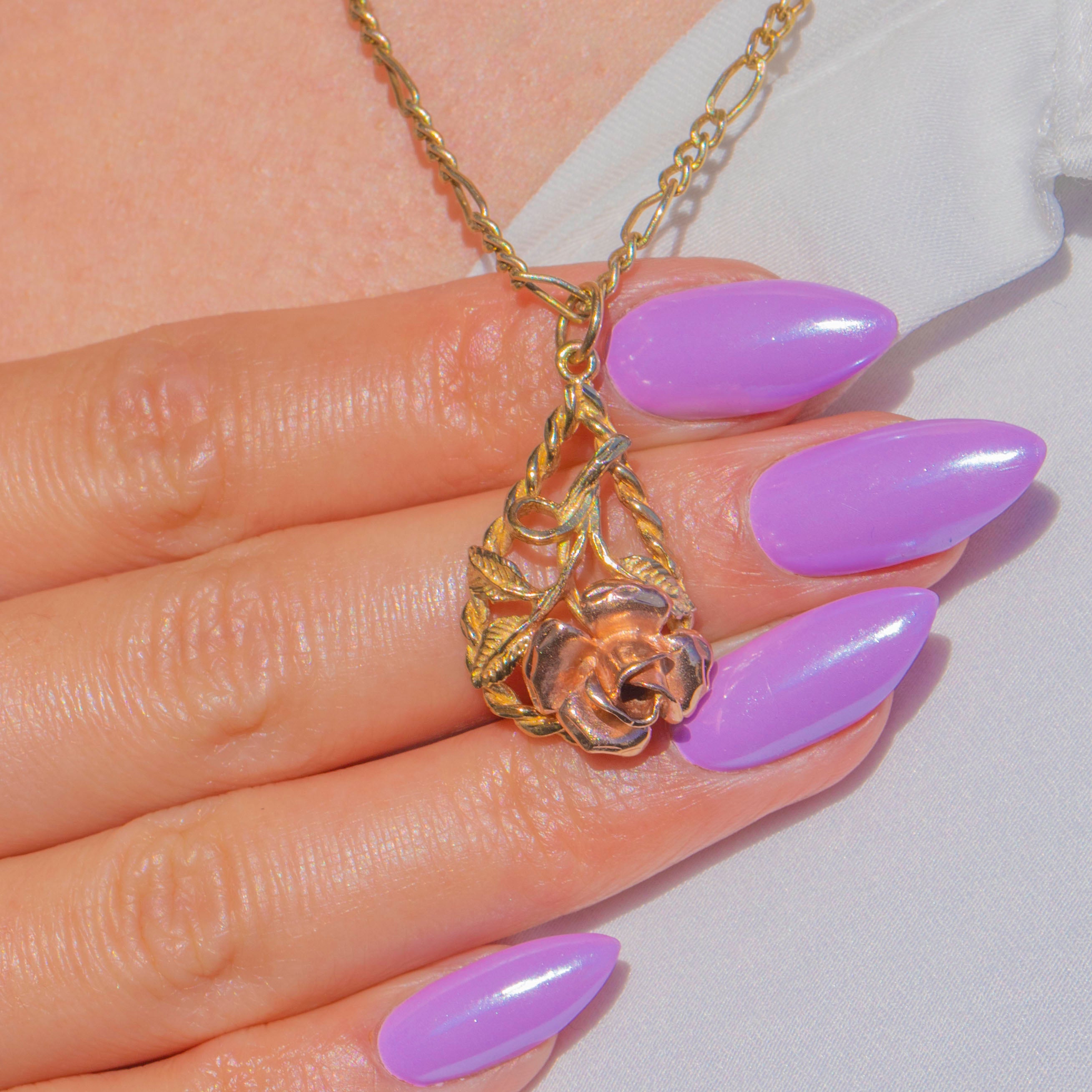 Solid 9ct Gold Rose Motif Pendant, 9ct Yellow & 9ct Rose Gold