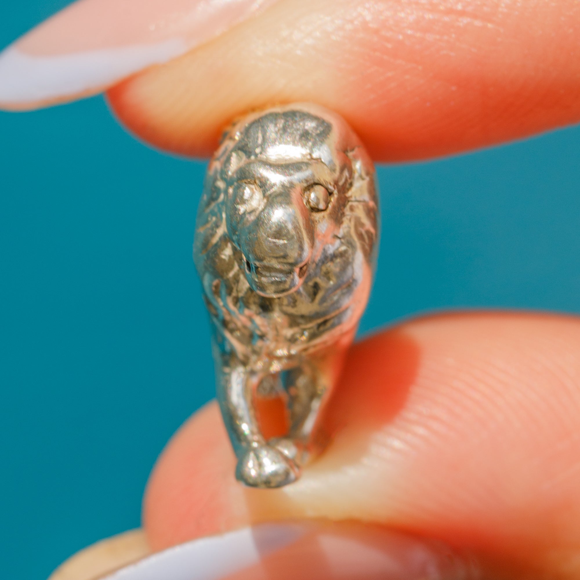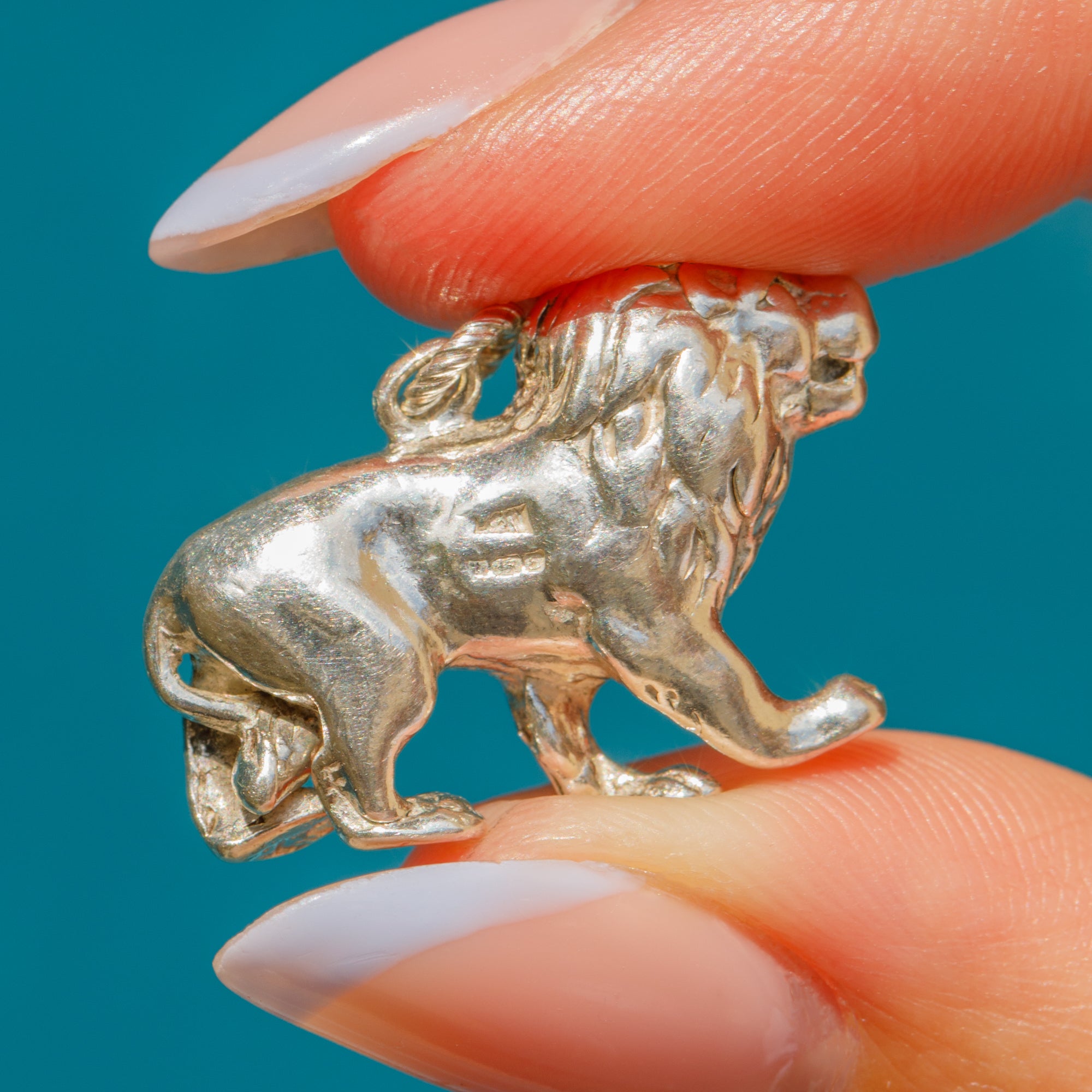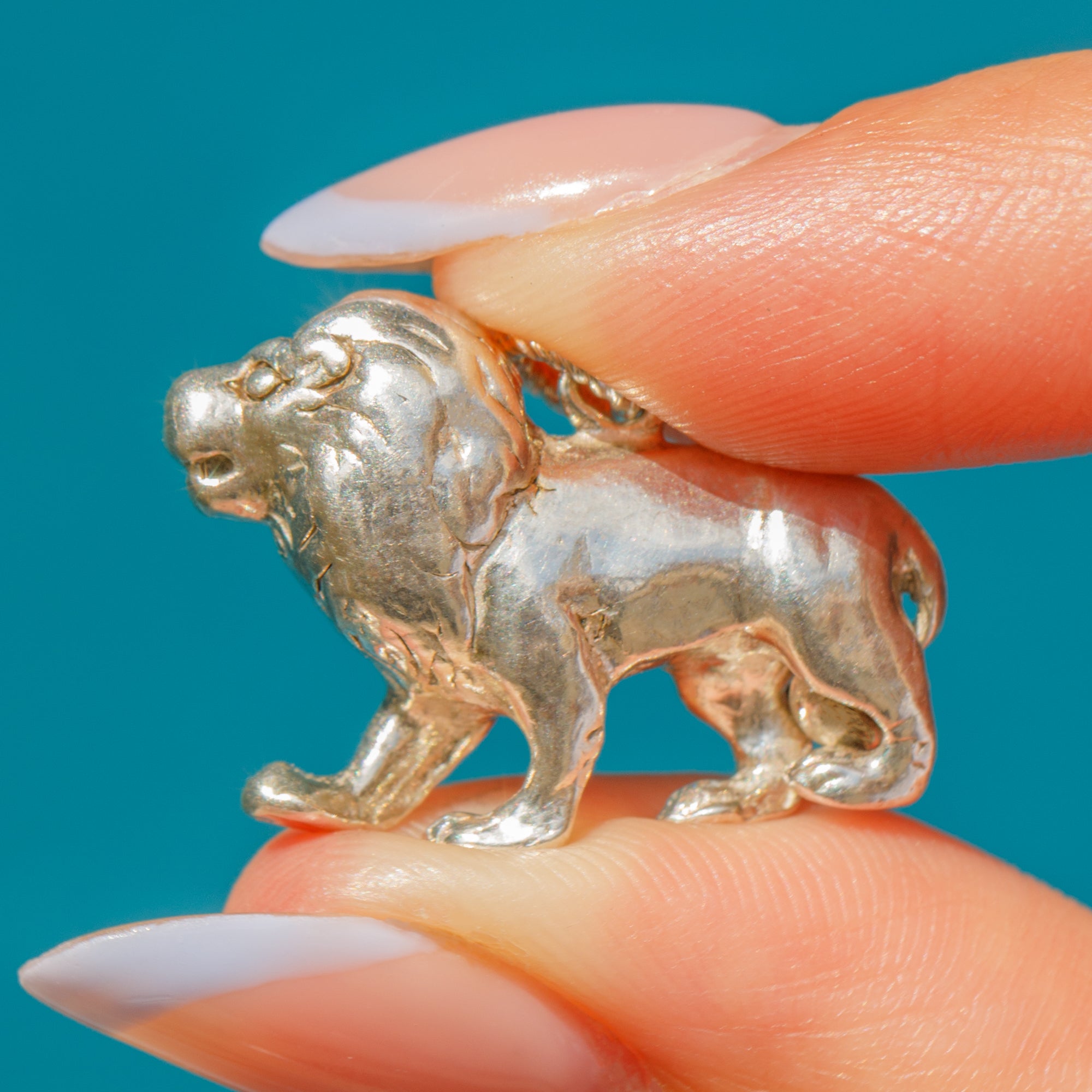 VERY GOOD-EXCELLENT: This Silver lion pendant is in great condition. The Silver is glossy and lustrous, with only some minor dings expected with age. Her jump ring is securely soldered and with little else to note, you can wear her with utmost confidence!