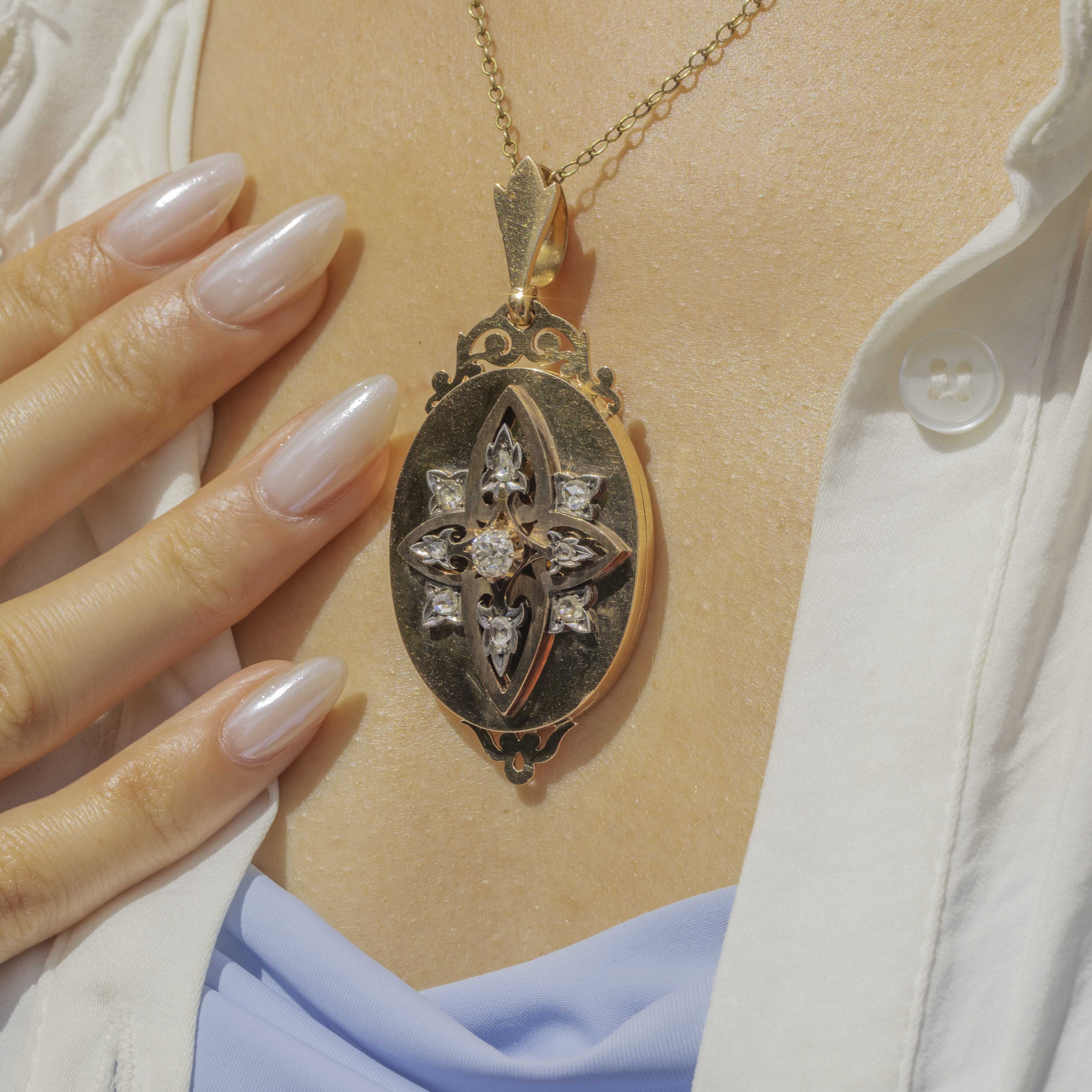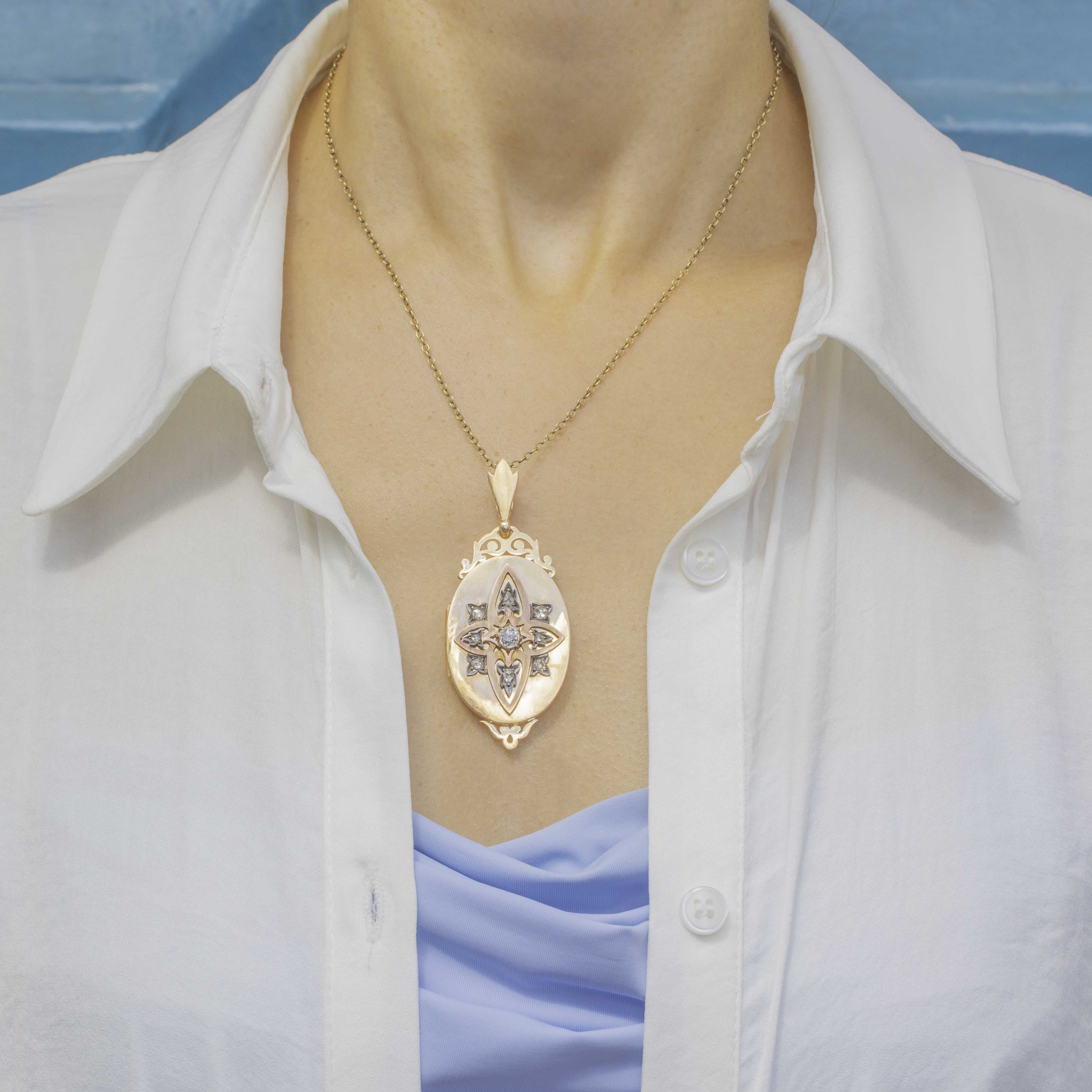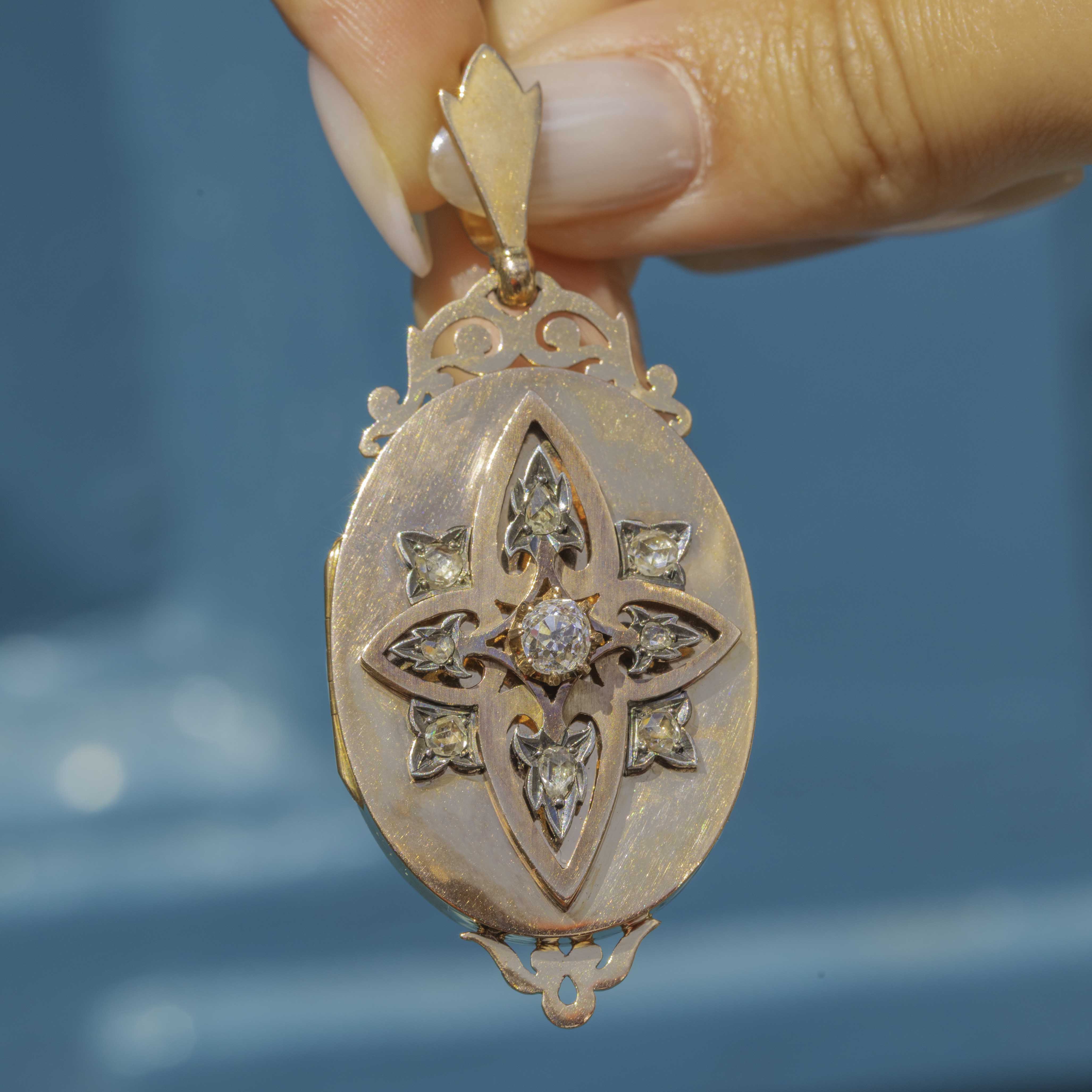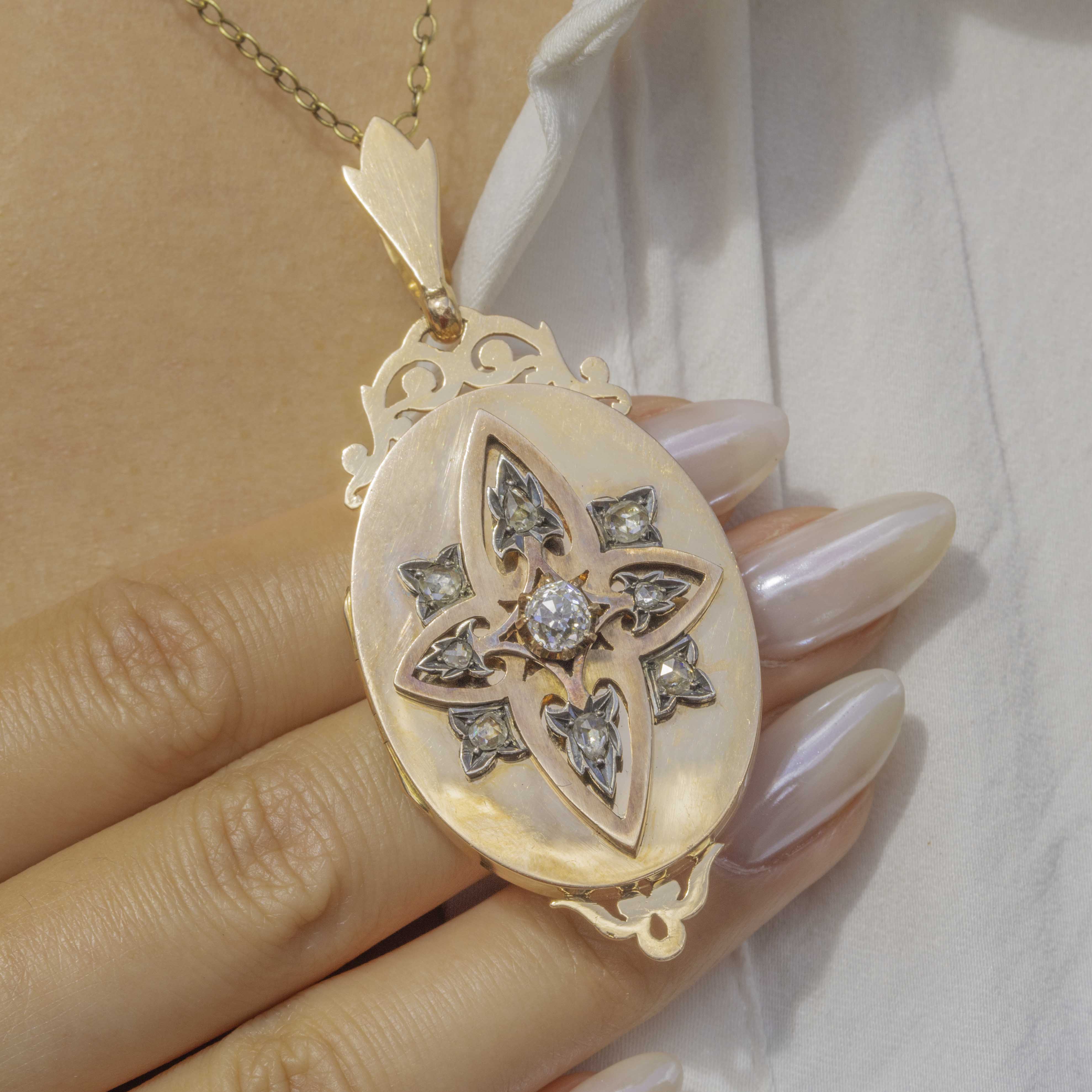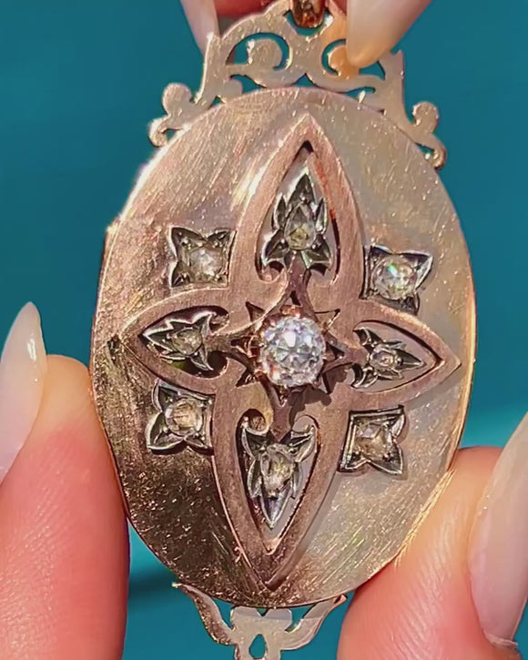 This antique Diamond locket has an impressive presence and boasts exquisite details, perfectly capturing the skilled and thoughtful craftsmanship of the Victorian era!