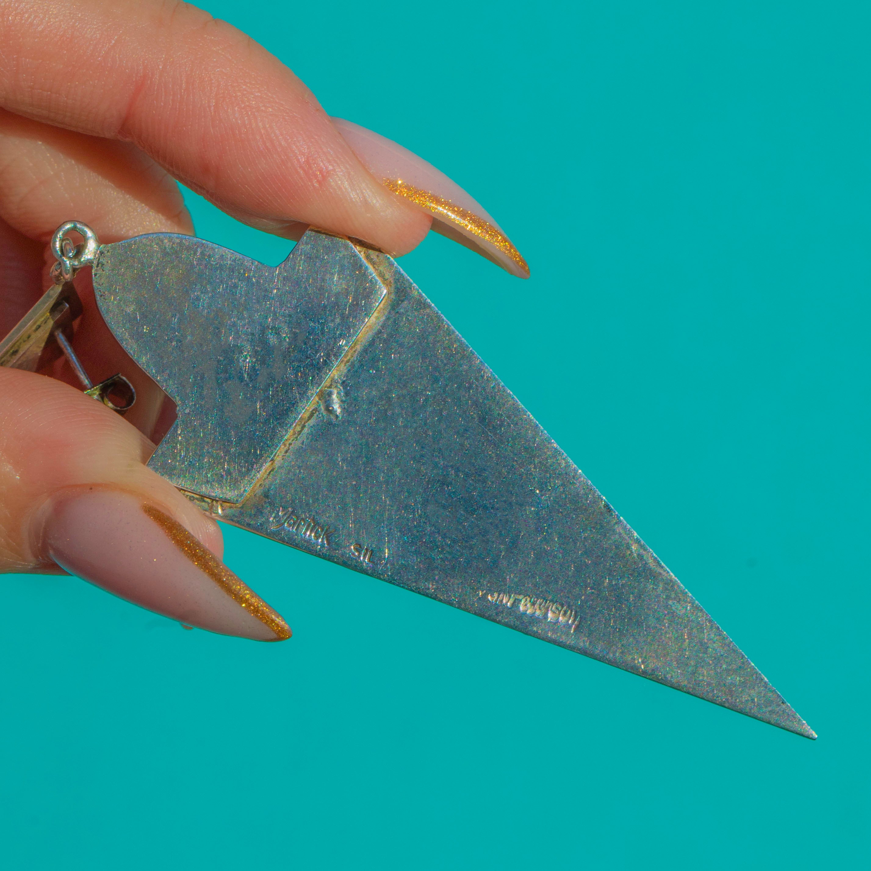 Each earring features a long, tapered Sterling Silver panel set with a deep ultramarine Lapis cabochon, full of natural flecks and rich colour. Stamped “VAN PETERSON”, “SIL” and “MARTICK”, they are a rare, collectible design with fantastic presence and movement—striking, stylish, and unmistakably 1980s–1990s.