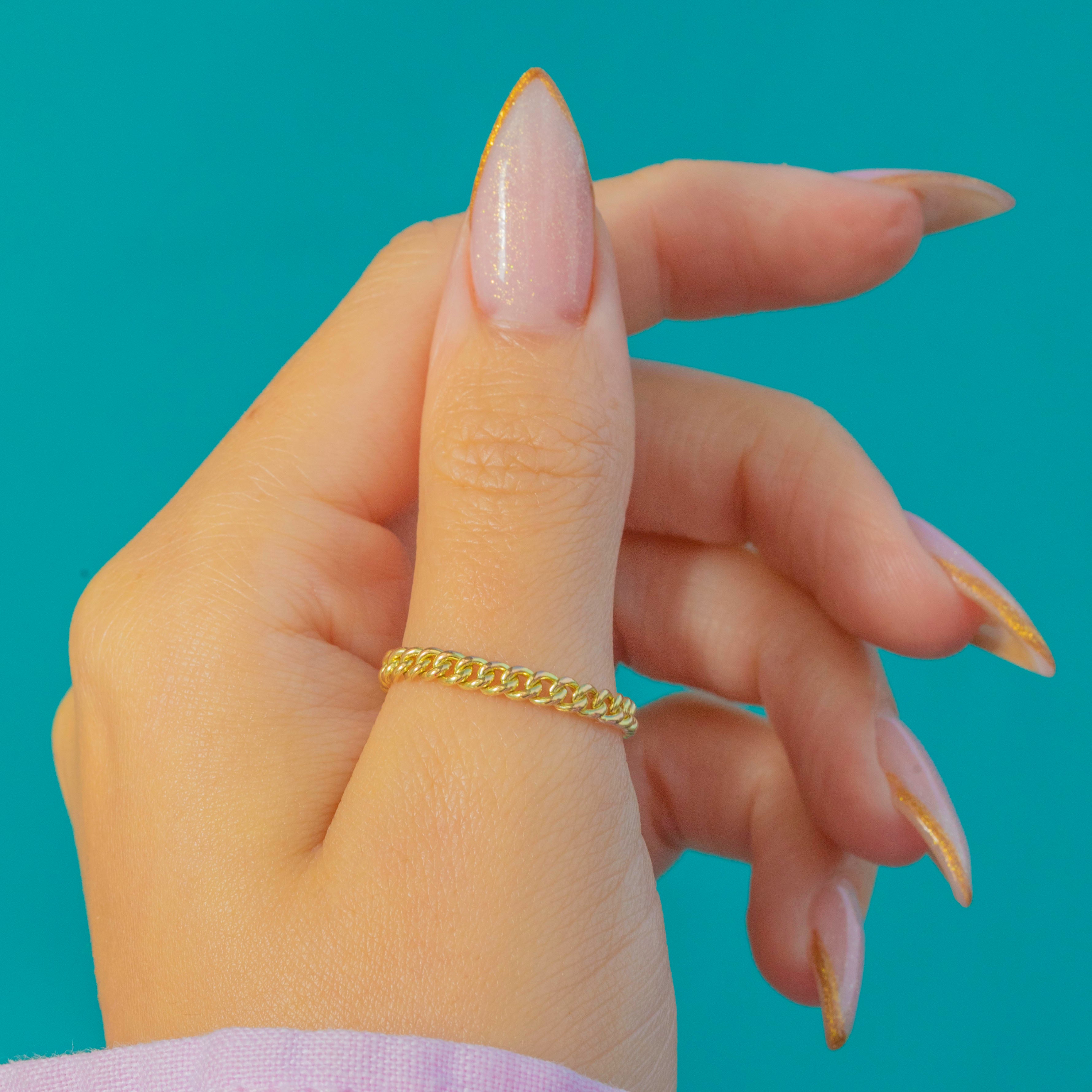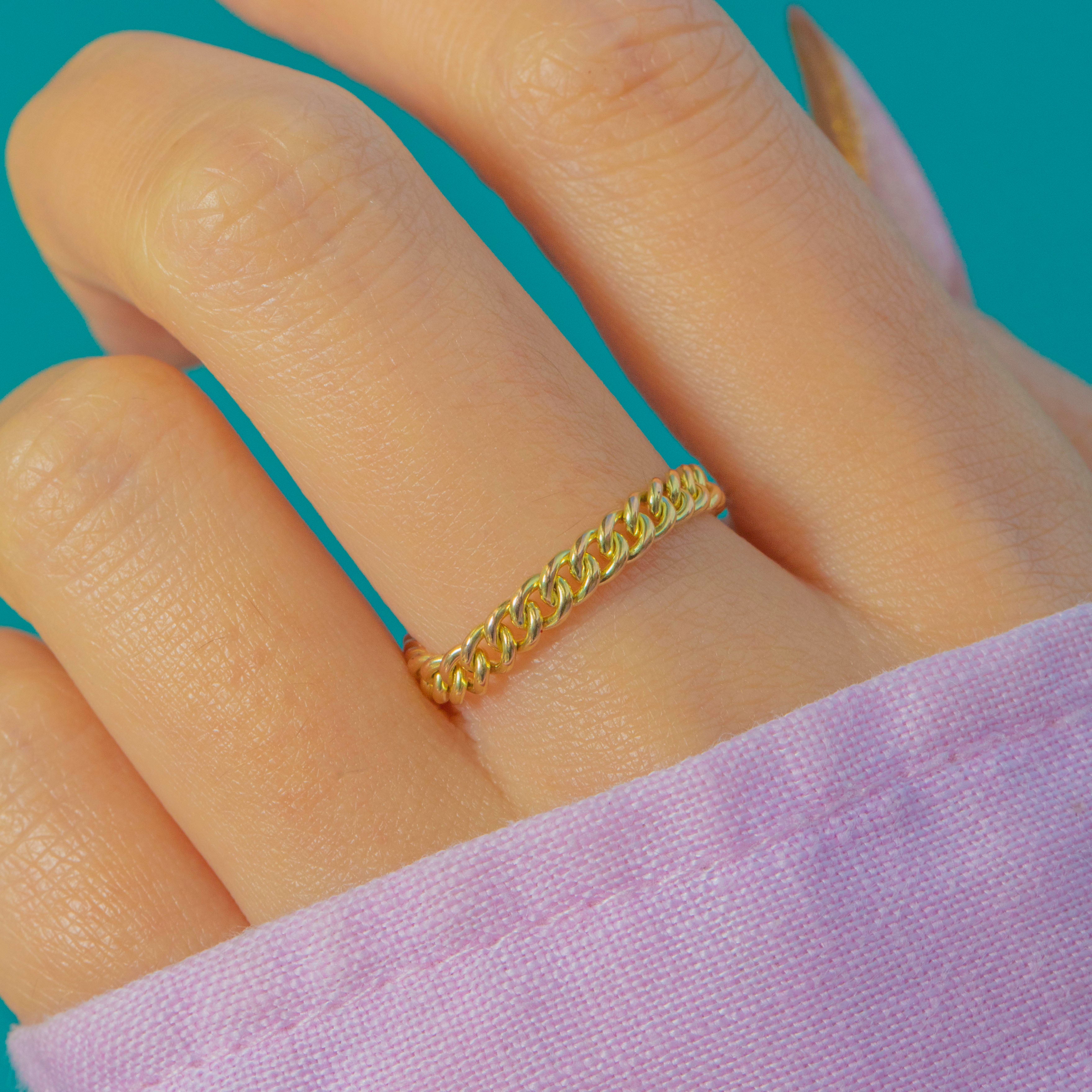 A gorgeous Victorian 15ct Gold curb-chain ring with beautifully rounded 3mm links and that unmistakable warm antique glow. Textured, tactile and effortlessly stylish, it’s perfect for stacking or wearing alone as a soft, golden accent.