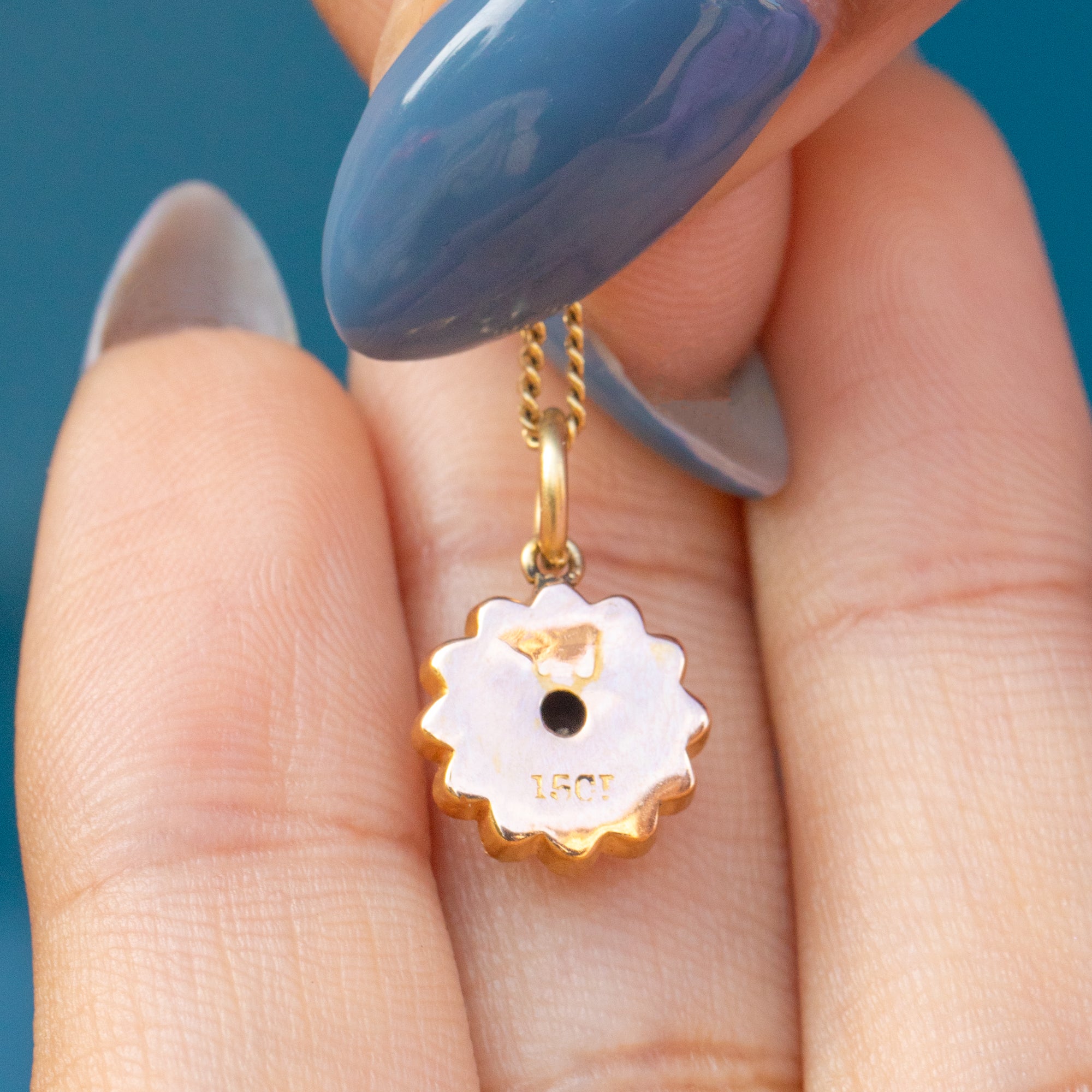 STAMPS: '15CT' on the back of the pendant.