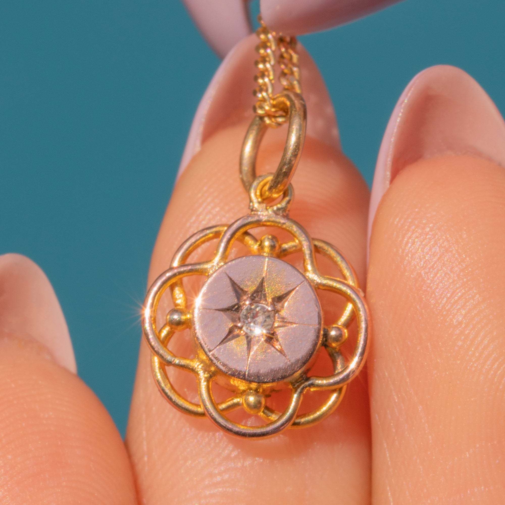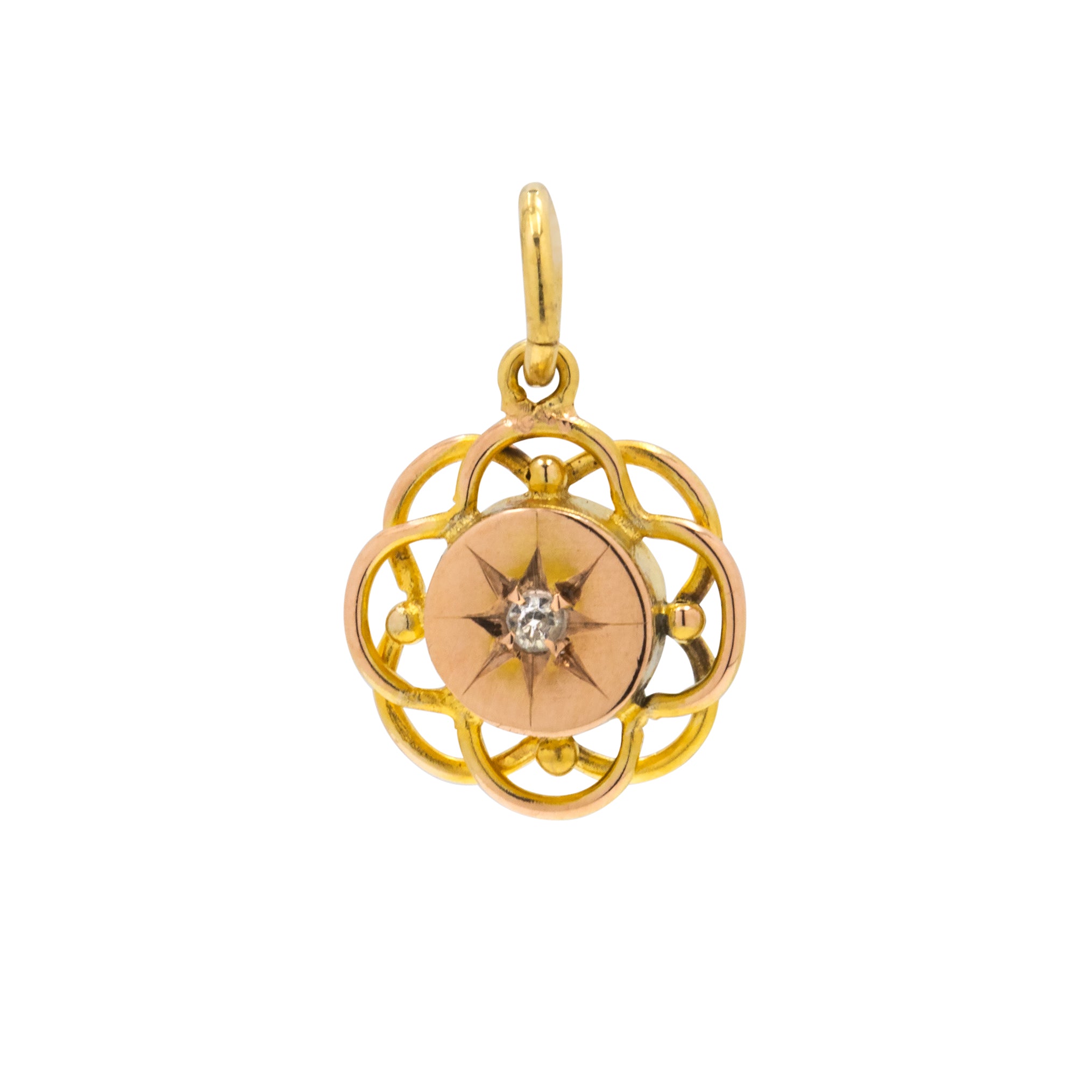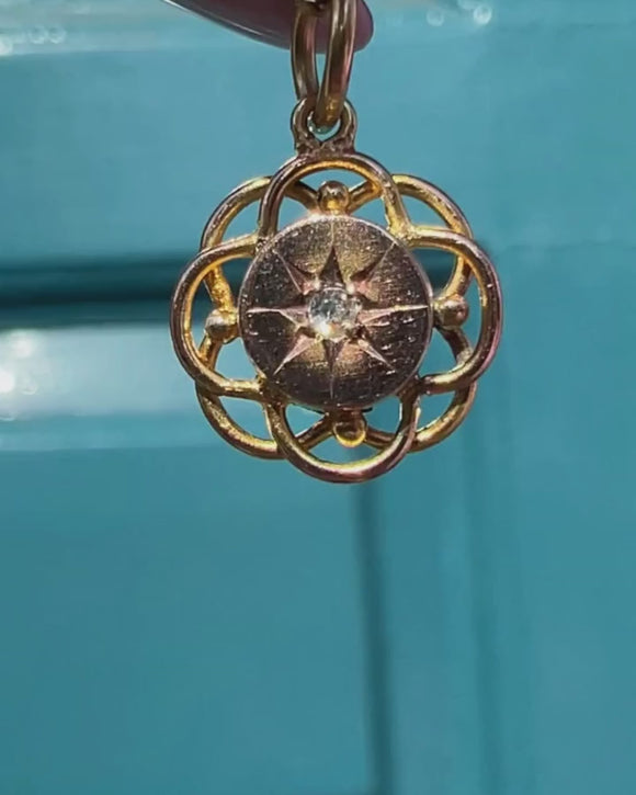 EXCELLENT. This Victorian 9ct Gold Diamond star-set charm is in excellent condition! The Diamond is set securely adding a soft sparkle to the rich 9ct Gold. There is no damage to the Gold and the wire work detailing is crisp. With a jump-ring to finish, this antique Diamond charm is ready to wear straight from your pink Lillicoco box!