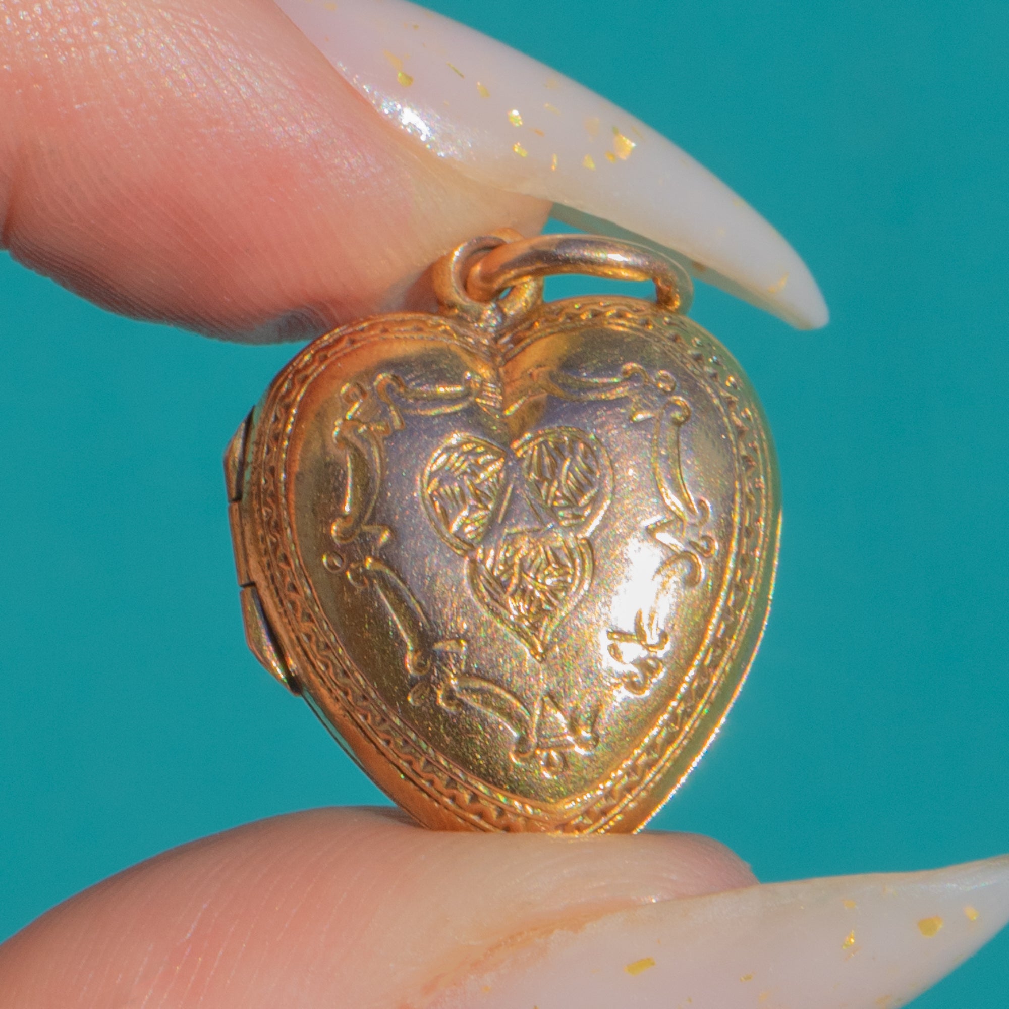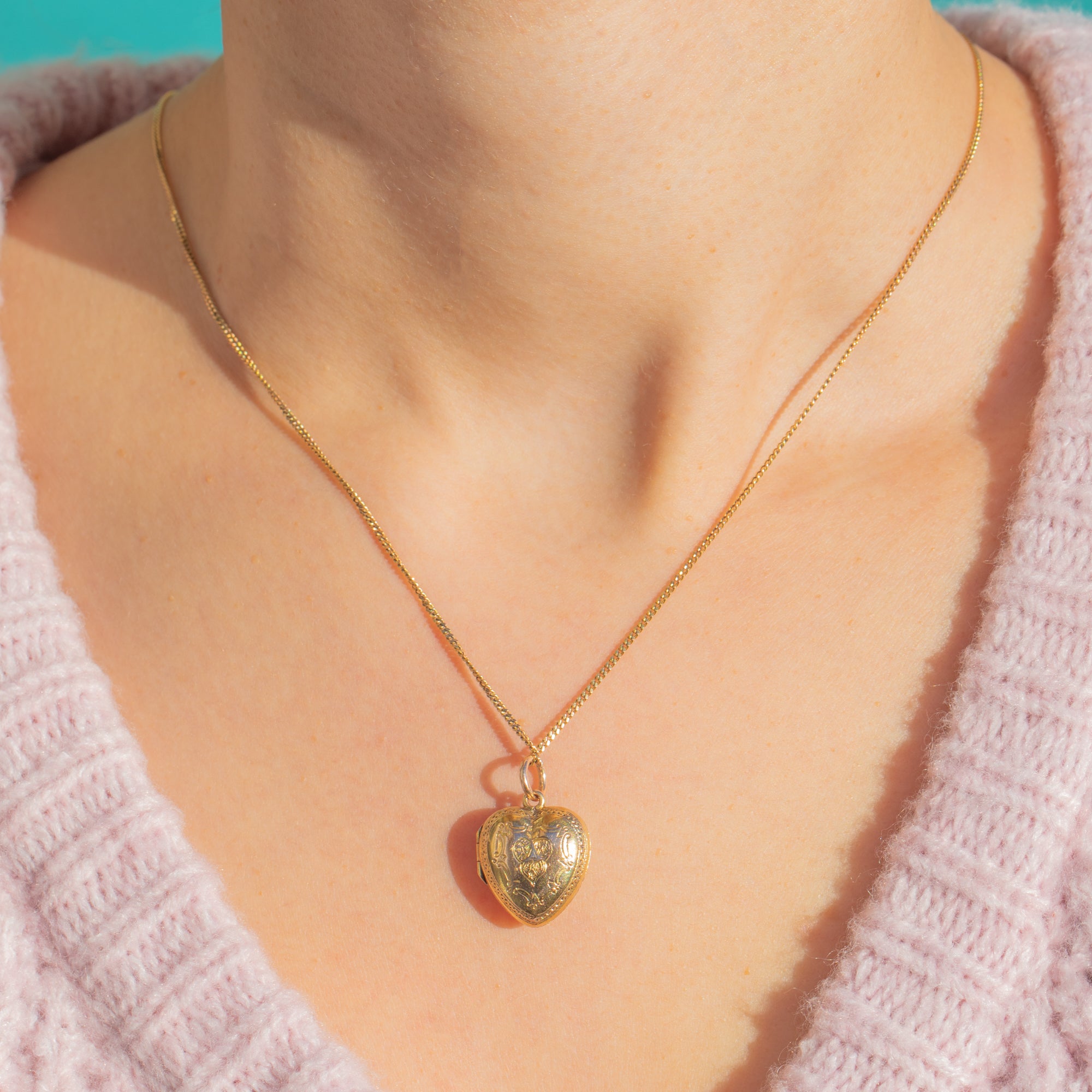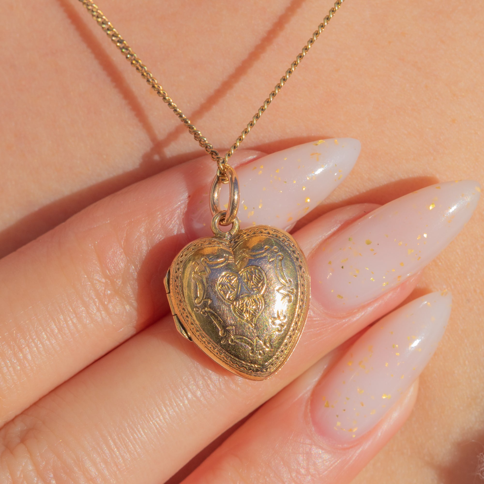 A dainty Victorian heart locket crafted in luscious 15ct Gold, sweetly adorned with fine foliate scroll engraving and a pretty beaded border. The front features a softly contrasting central reserve that lends a subtle two‑tone look, catching the light beautifully against the warm Yellow Gold.