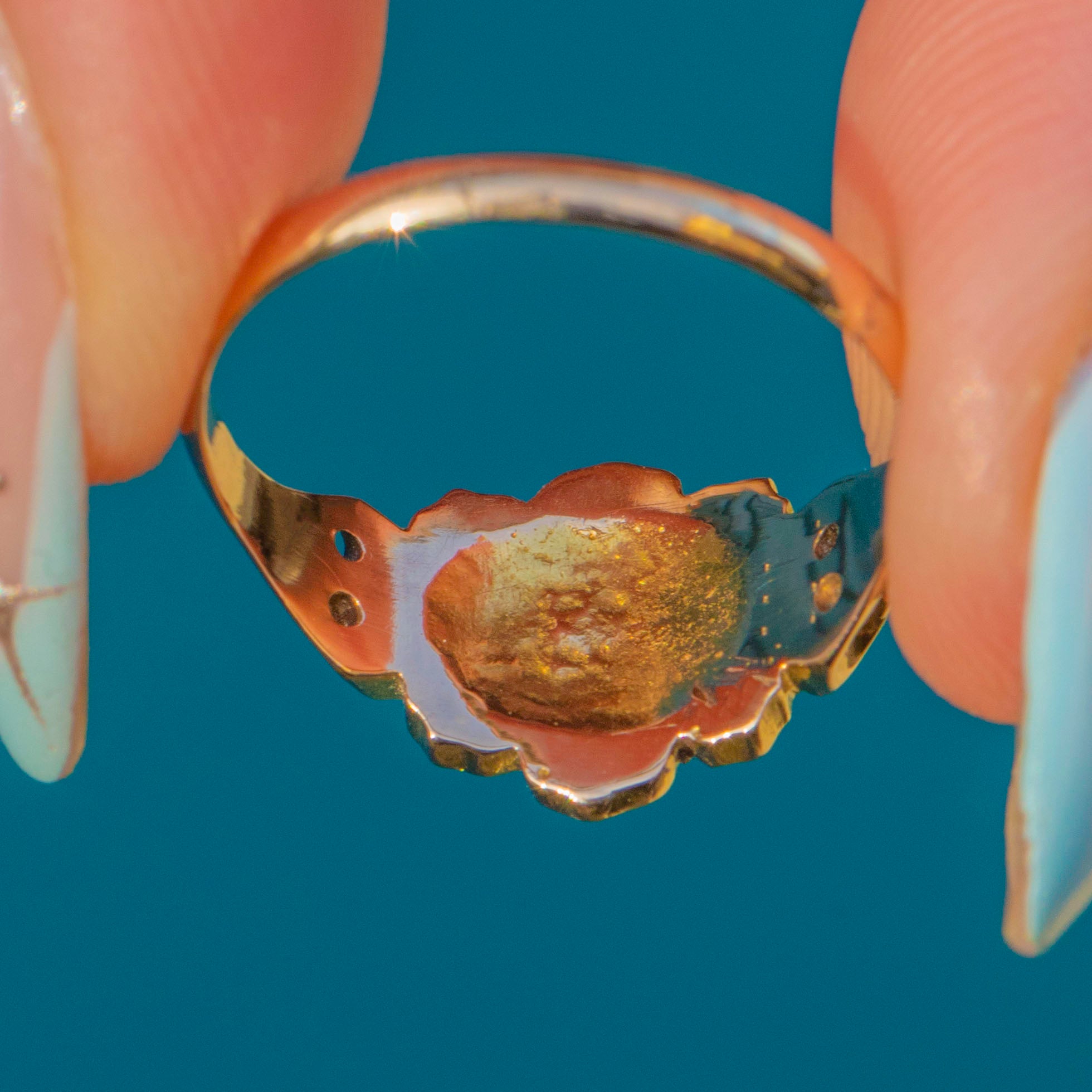 Hand-fabricated with a fully closed, foil-backed central star setting, the head glows softly with antique warmth. Subtle pierced shoulder details and a slender D-section shank complete the refined silhouette. Stamped 15CT and dating to circa 1870, it’s a quintessential late-Victorian jewel with timeless allure.