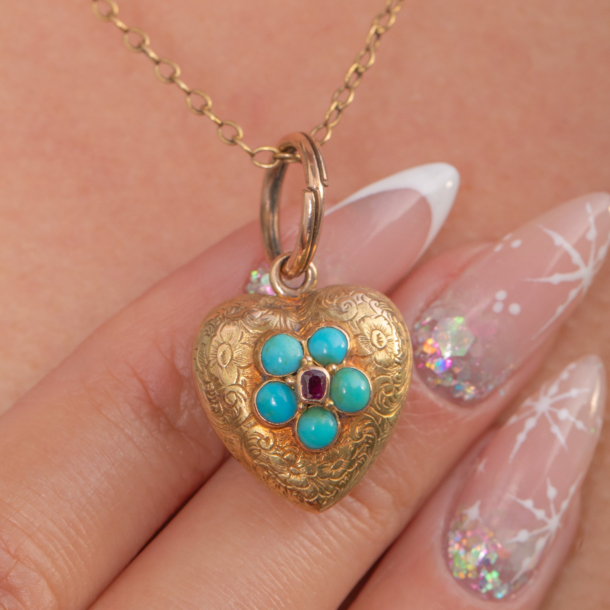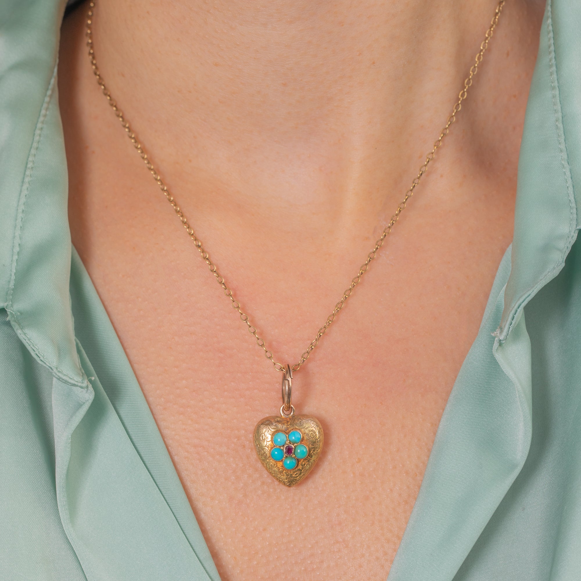 Victorian 15ct Gold Turquoise and Garnet Heart Locket Pendant