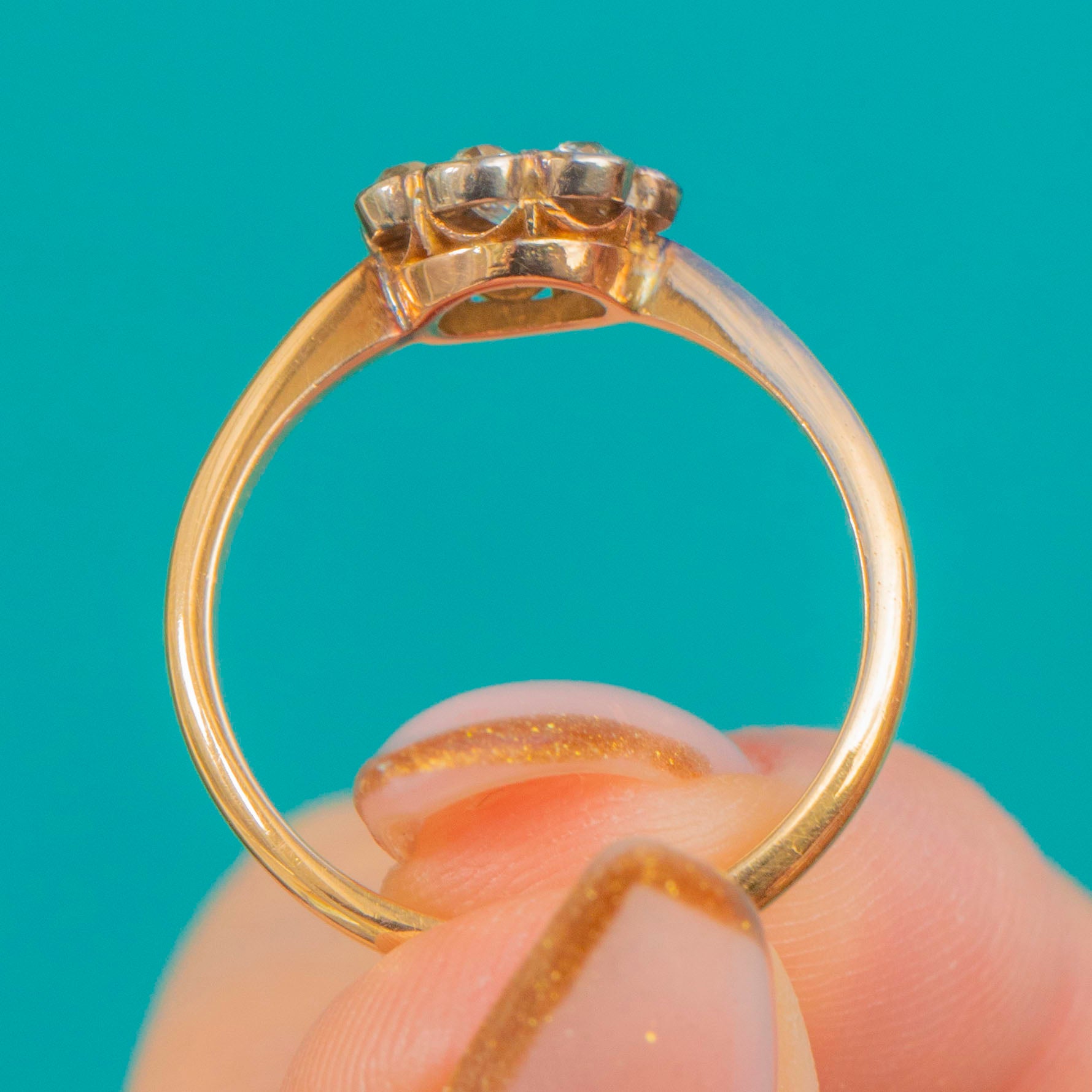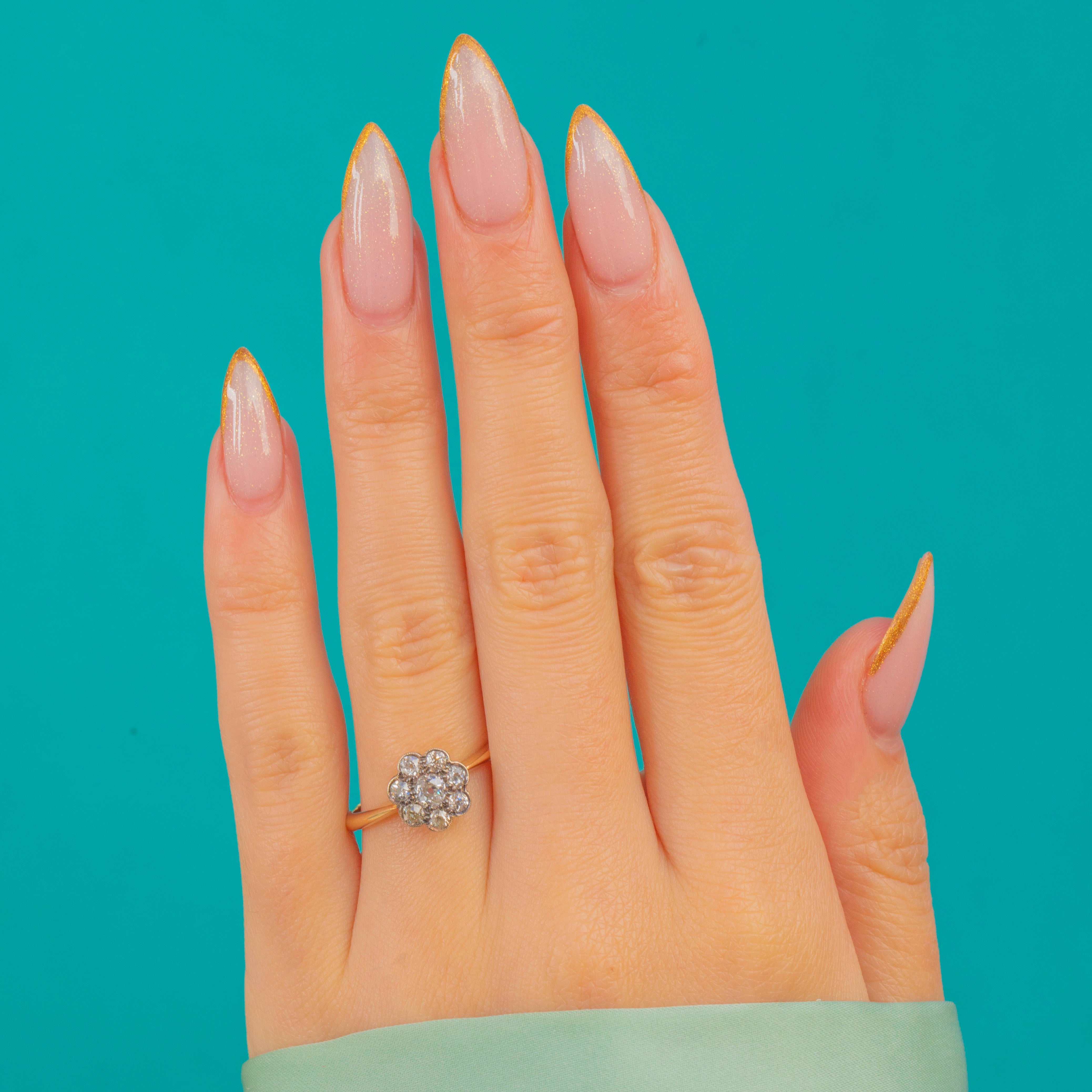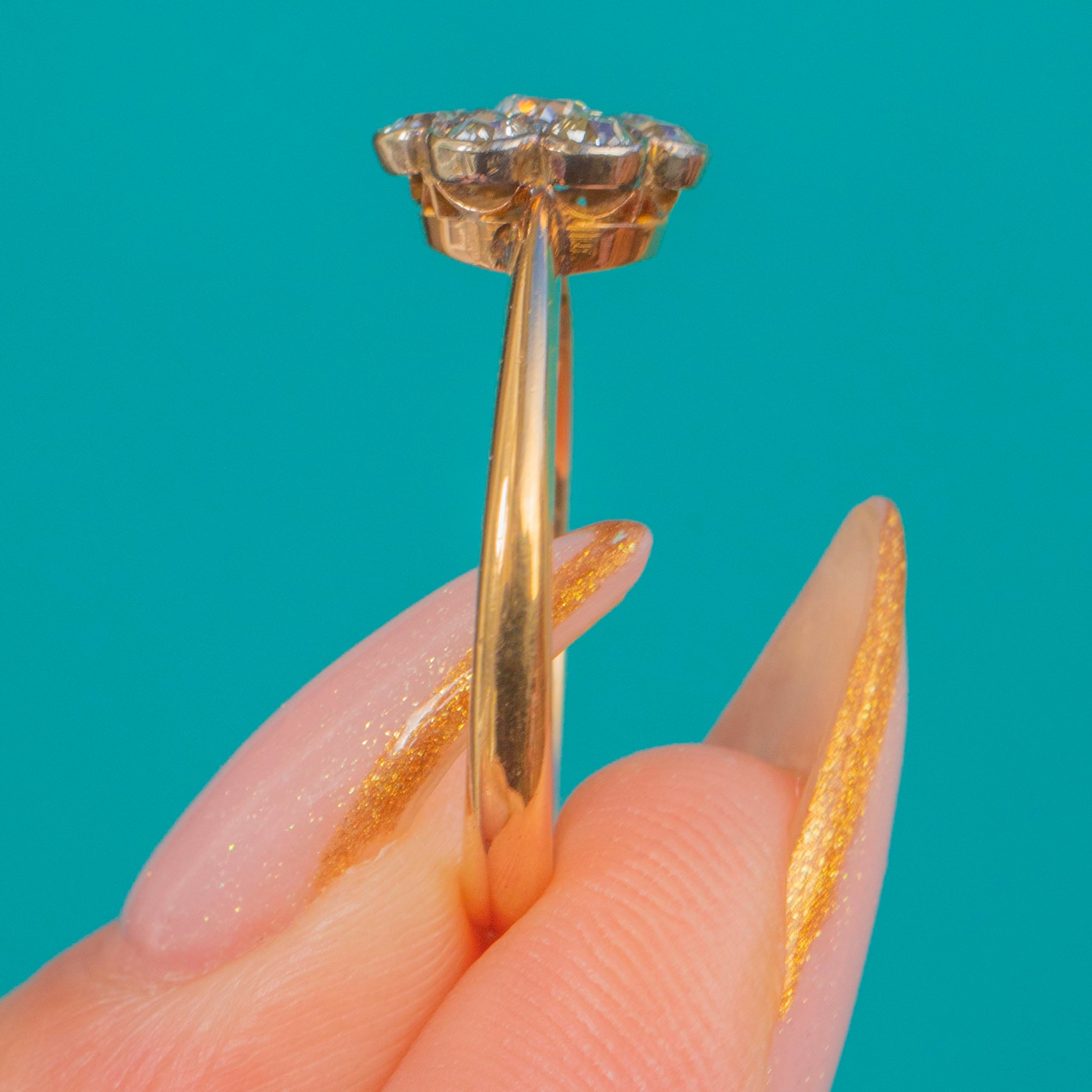 Delicate yet full of presence, this 0.35ct Diamond cluster sits low on the finger with a warm Golden shank, making it wonderfully wearable for everyday or special occasions. A charming and elegant Victorian treasure.