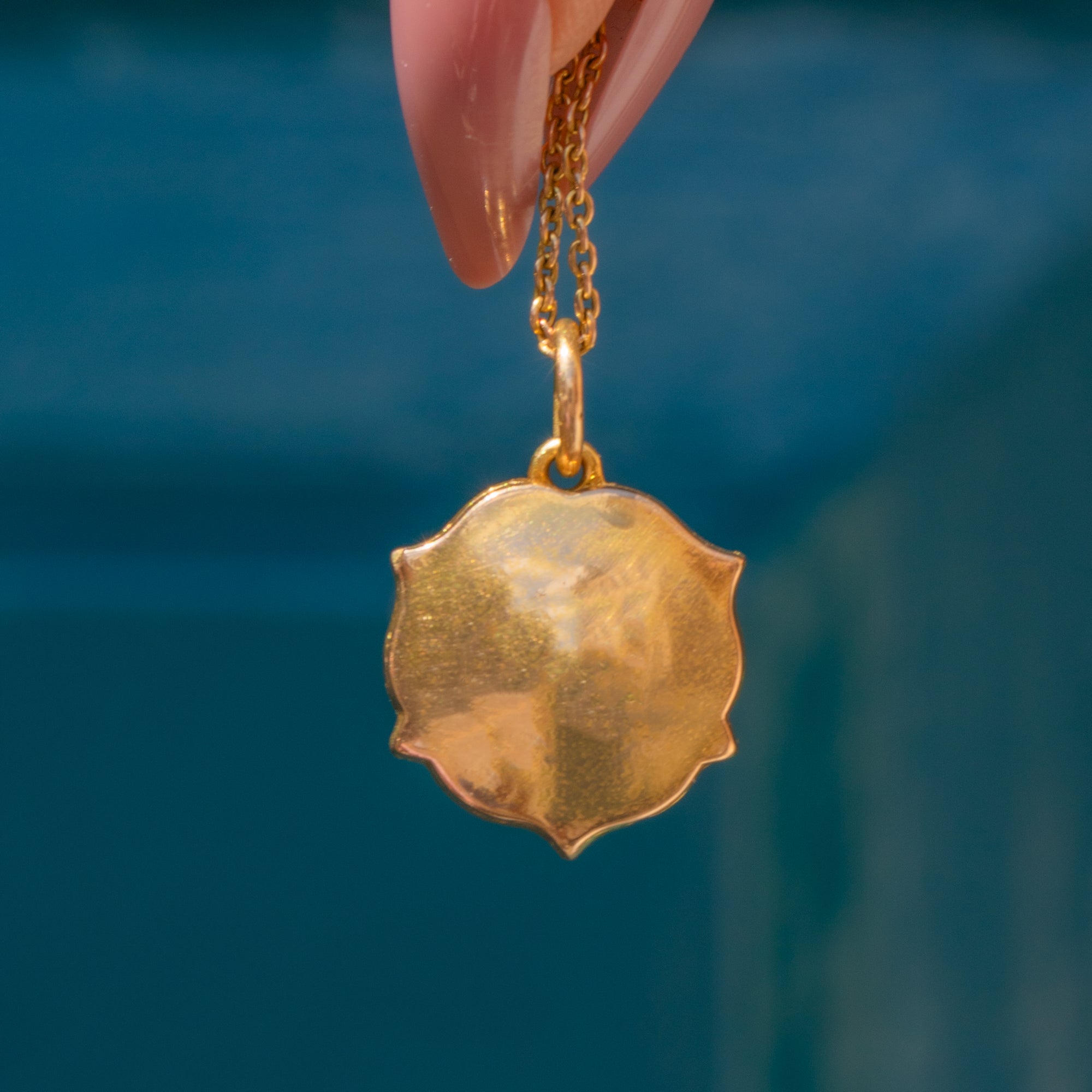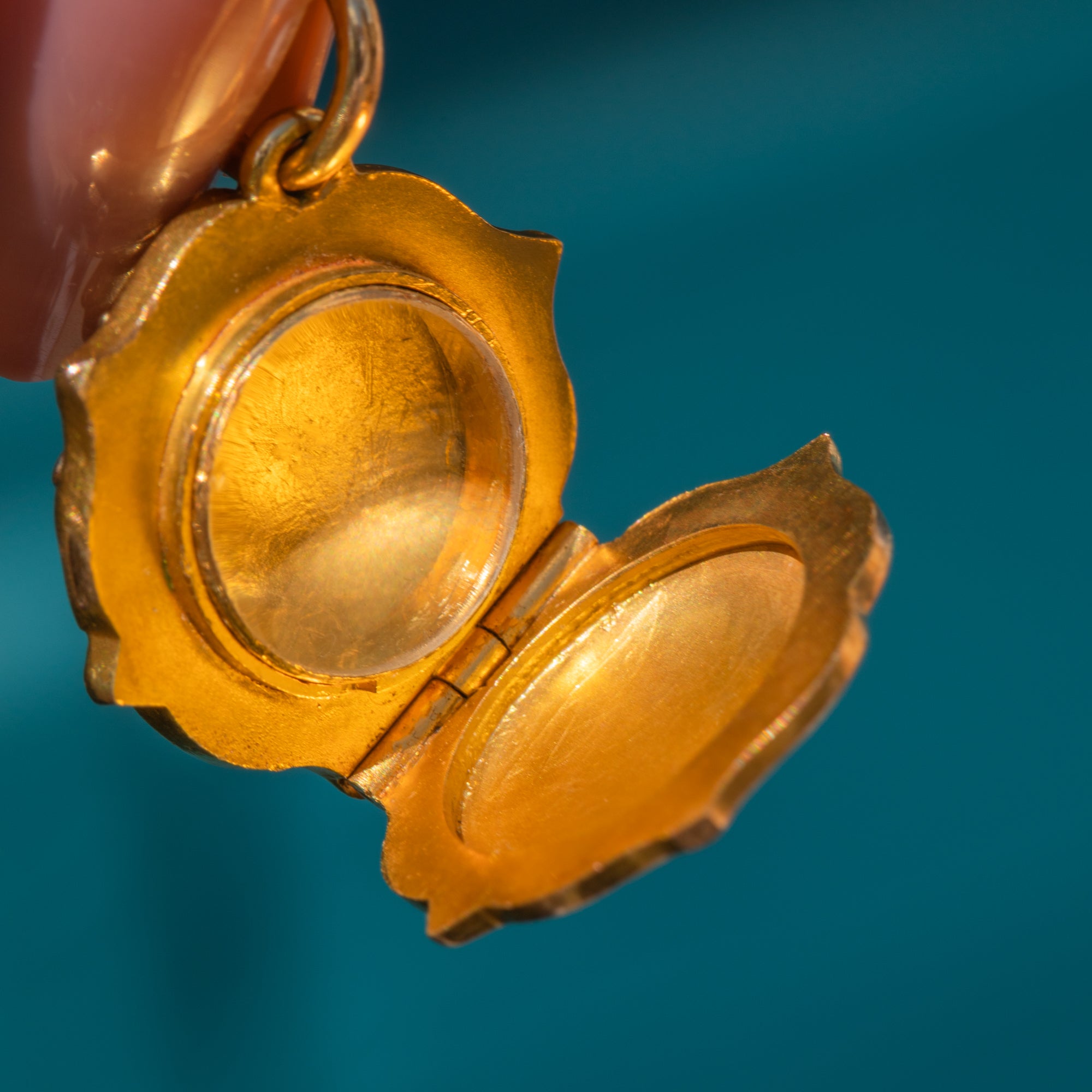 Beautifully formed from sumptuous 18ct Gold, this rose opens to present a locket compartment that has retained its original glass pane, in which you can place gems or a photo of your loved one. All this treasure needs is a chunky Gold chain from which you can suspend it - we think a dog-clip would be the perfect match!