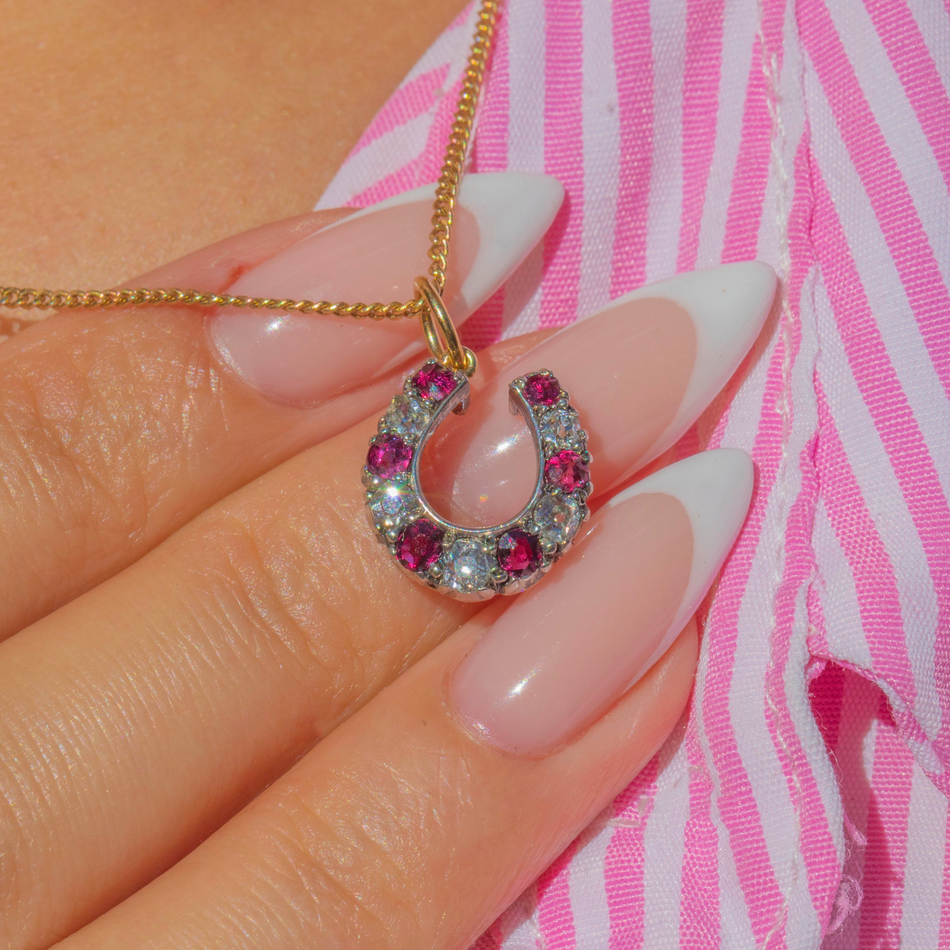 Victorian 18ct Gold Ruby Old Mine Cut Diamond Horseshoe Charm