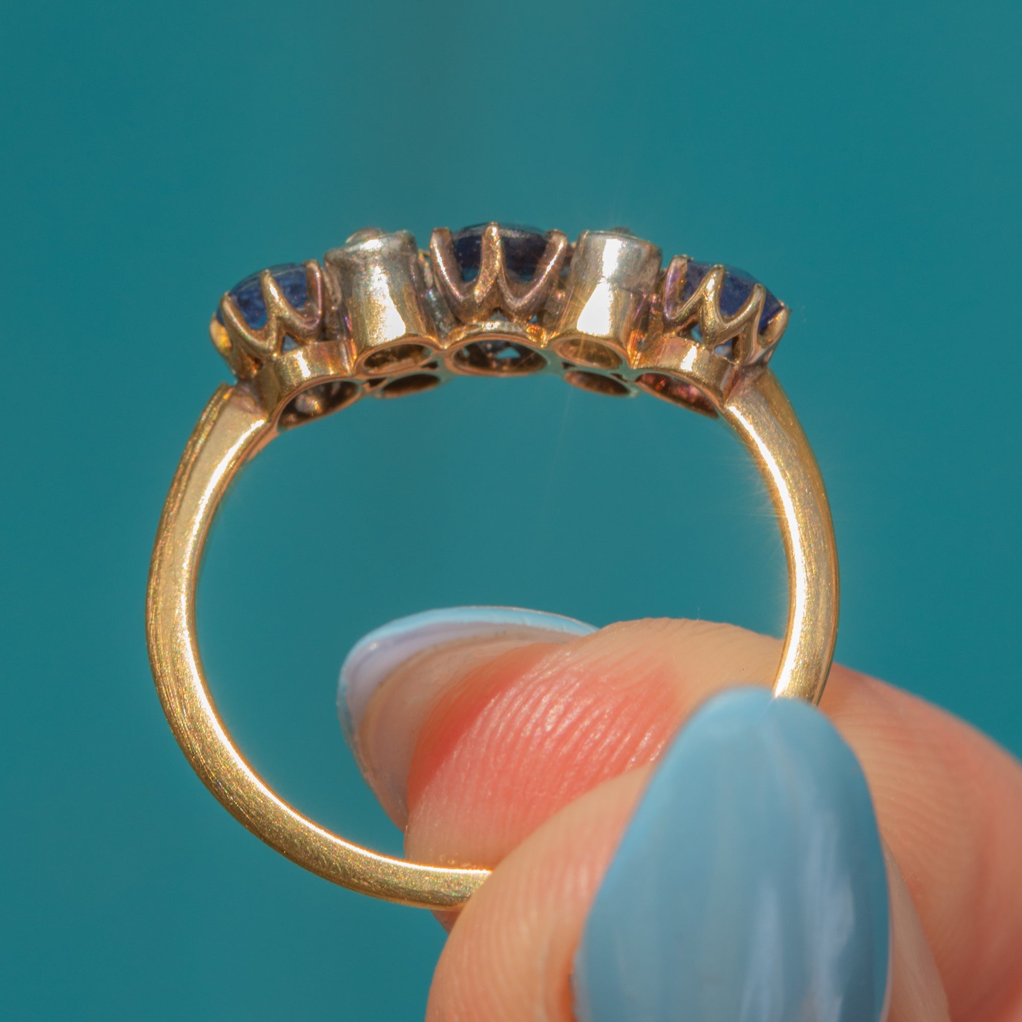 Victorian 18ct Gold Sapphire Diamond Seven Stone Ring
