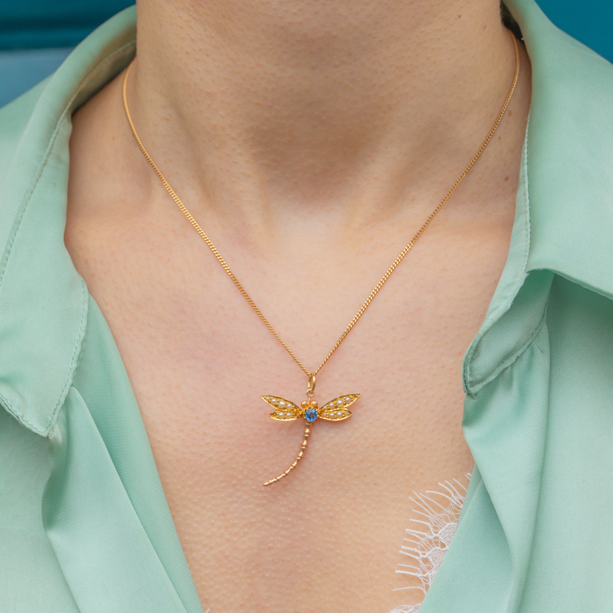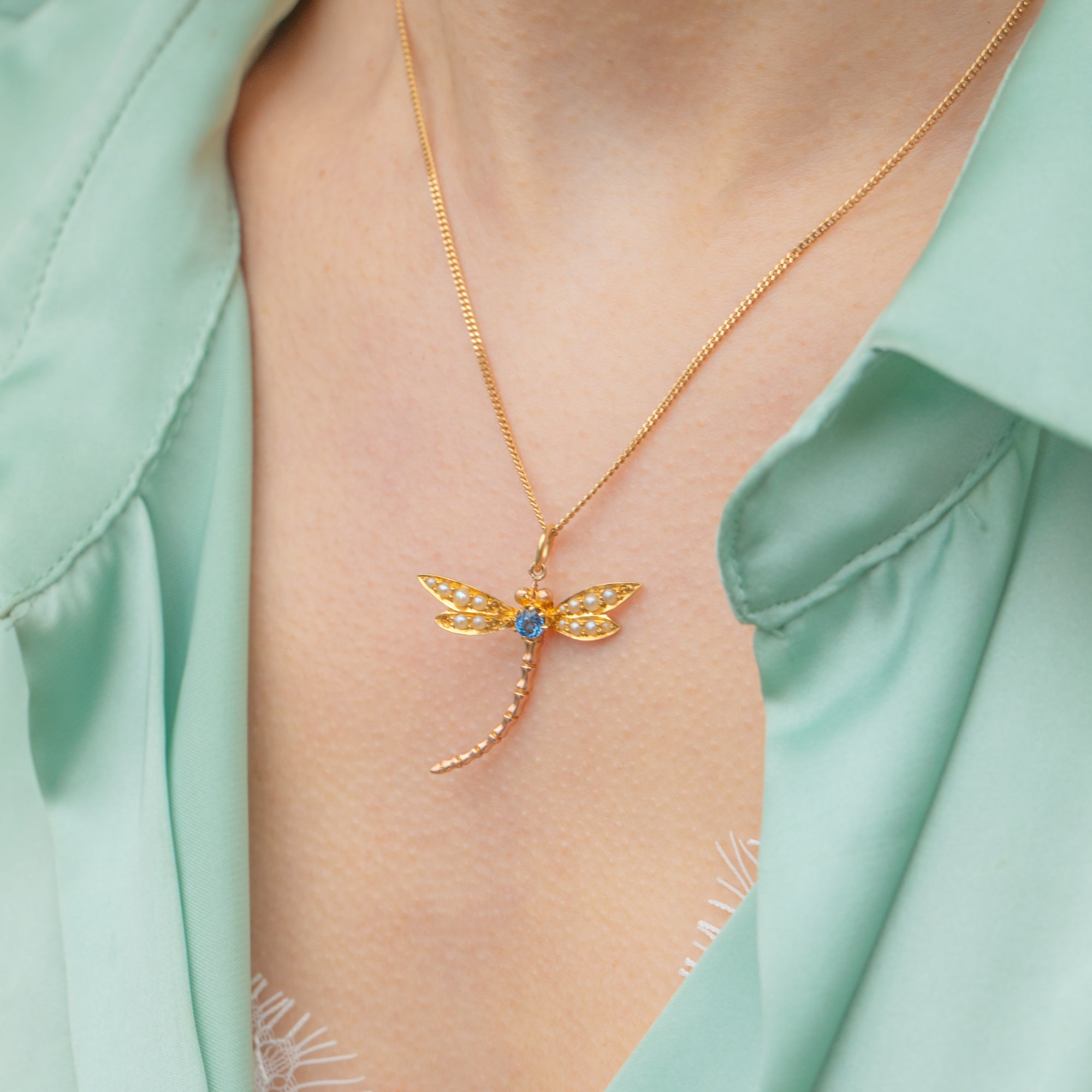 This delicate Victorian dragonfly pendant will look gorgeous fluttering across your décolletage!