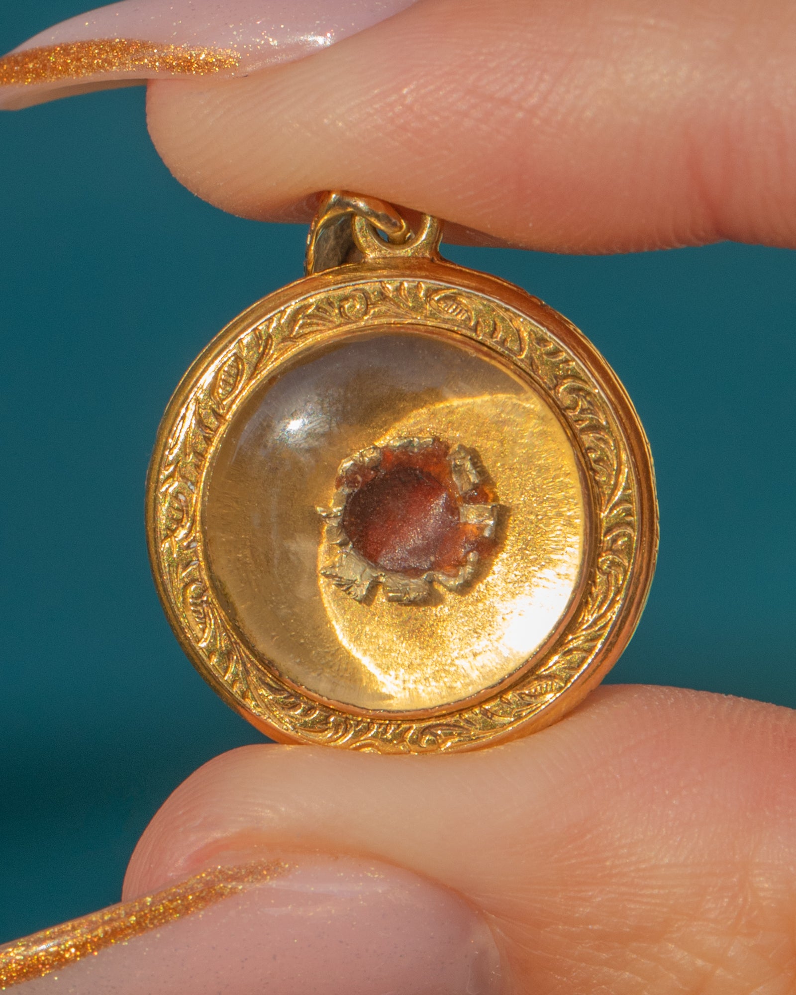 The back of the locket is complete with a glass compartment, to which you can place a treasured photograph or momento. Romantic, rare, and brimming with Victorian charm.