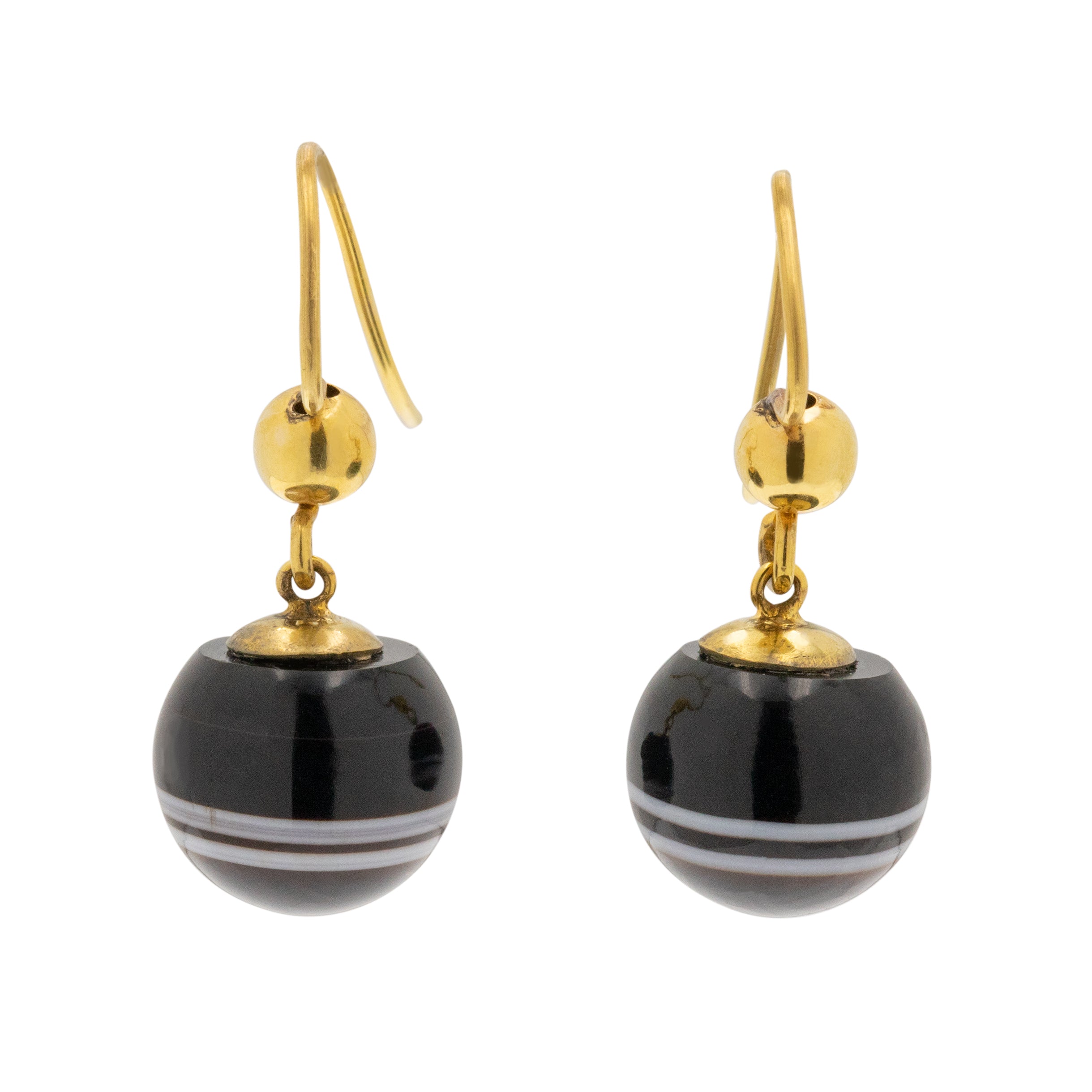 Victorian 9ct Gold Banded Agate Orb Earrings