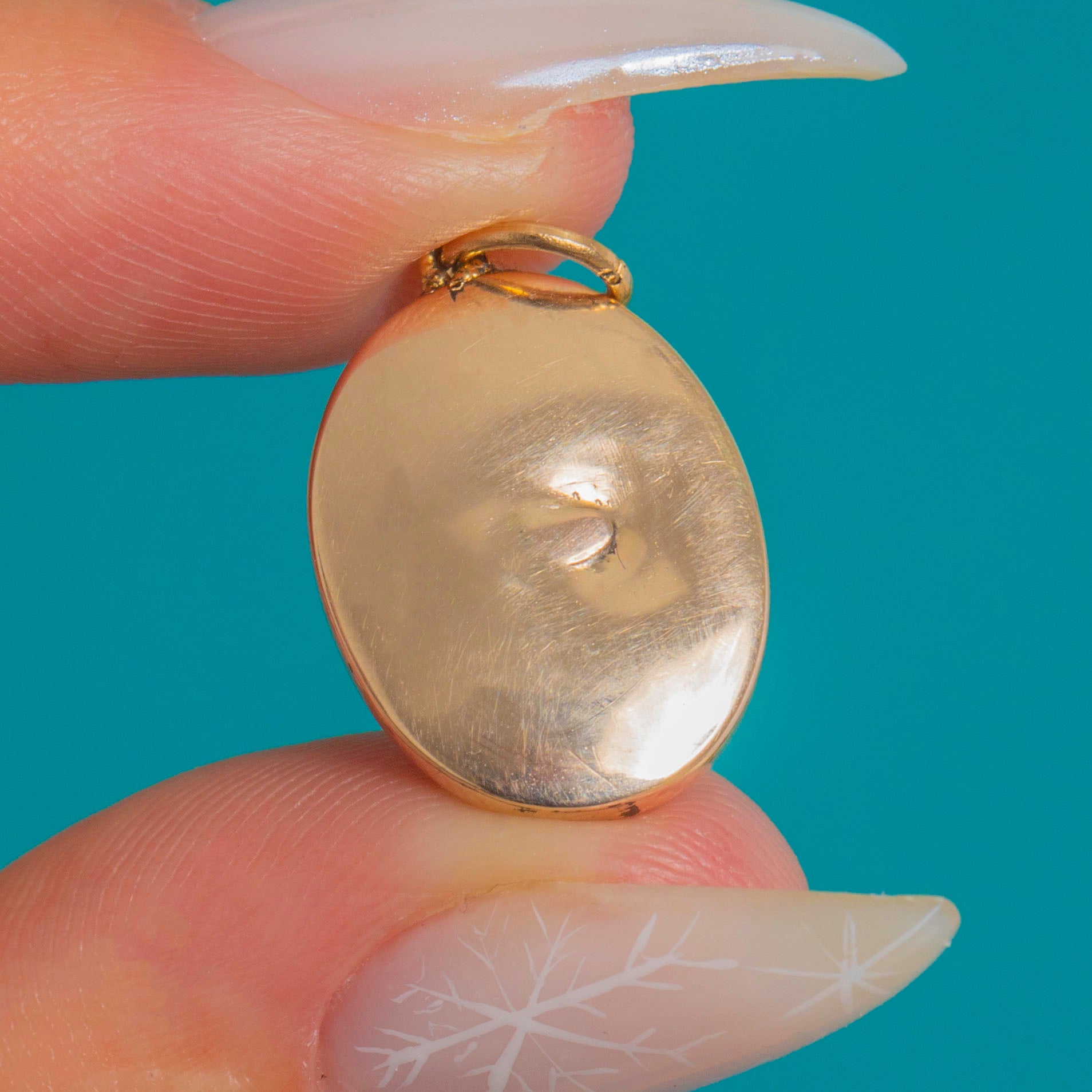 A delicate Victorian treasure, this petite pendant showcases a mesmerising Banded "bullseye" Agate cabochon: a deep, inky centre ringed by pale grey-white. Glossy and high-domed, the stone sits in a simple bezel that lets the natural pattern take centre stage.