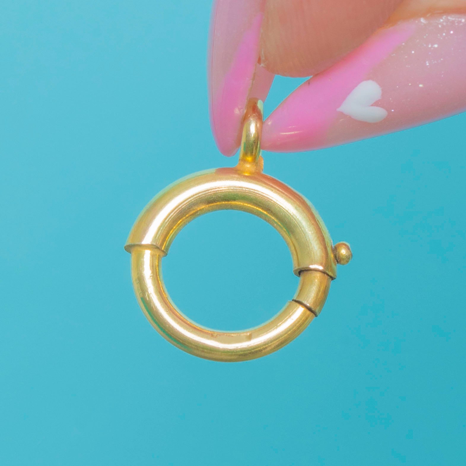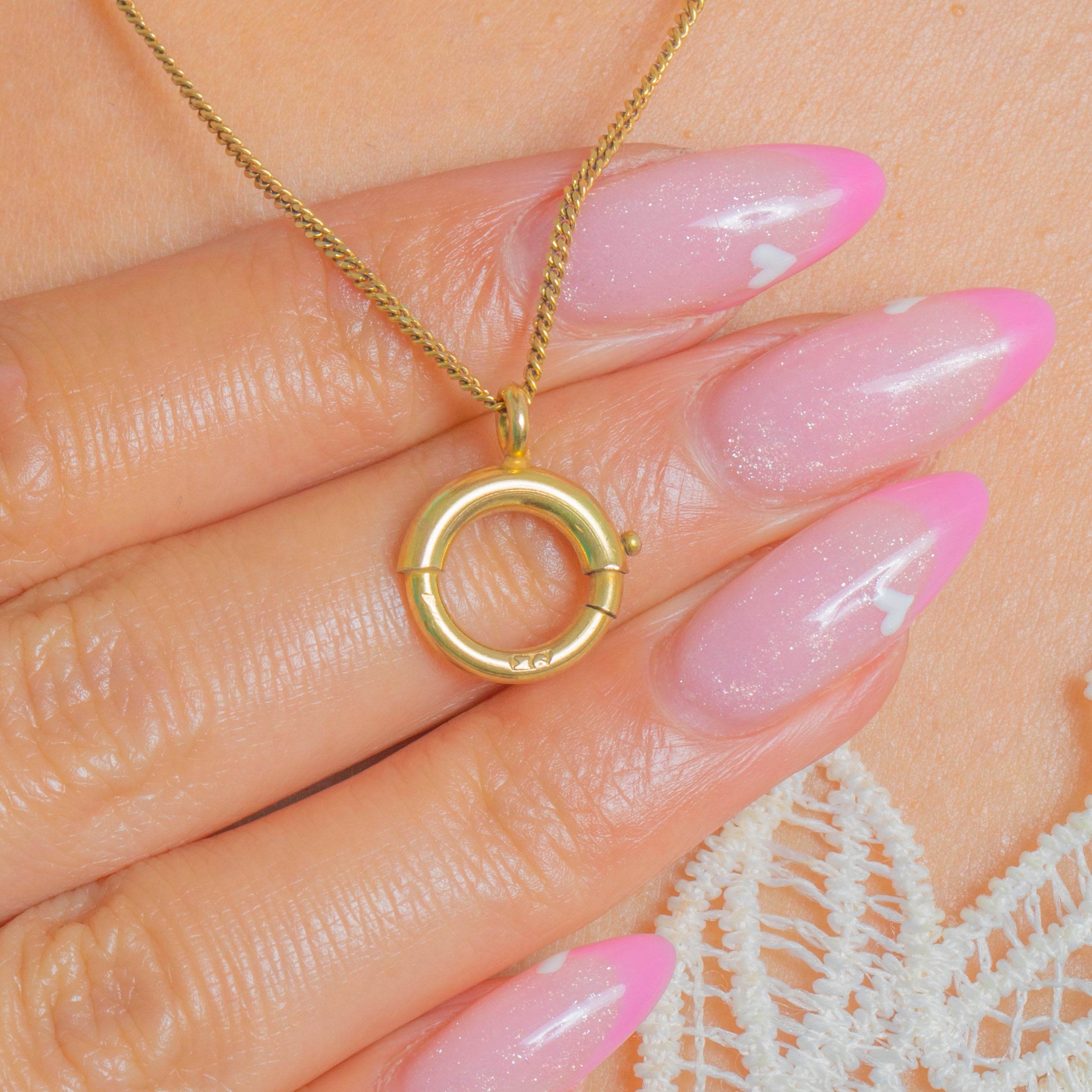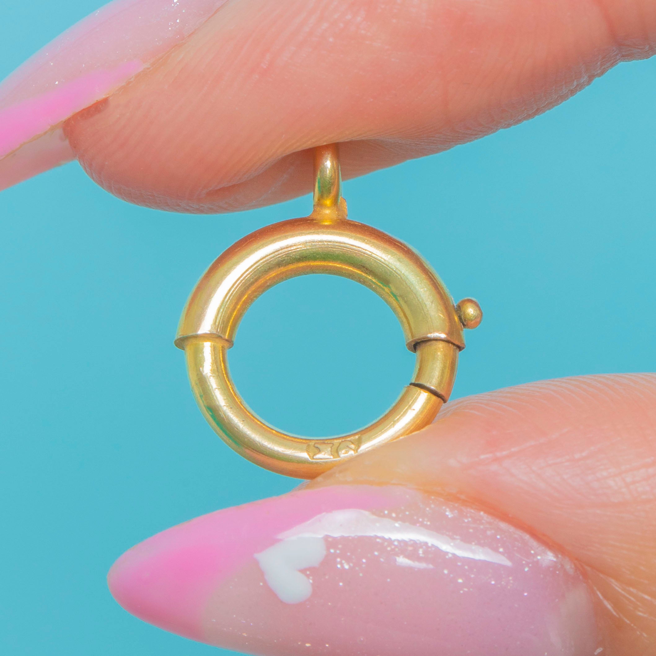 A classic Victorian 9ct Gold bolt ring of impressive size, perfect for wearing as a pendant, charm holder or clasp for your favourite antique chains. Crafted in rich, buttery yellow Gold, it has a lovely smooth finish and retains its strong spring action. A timeless and versatile staple for any antique jewellery collection.