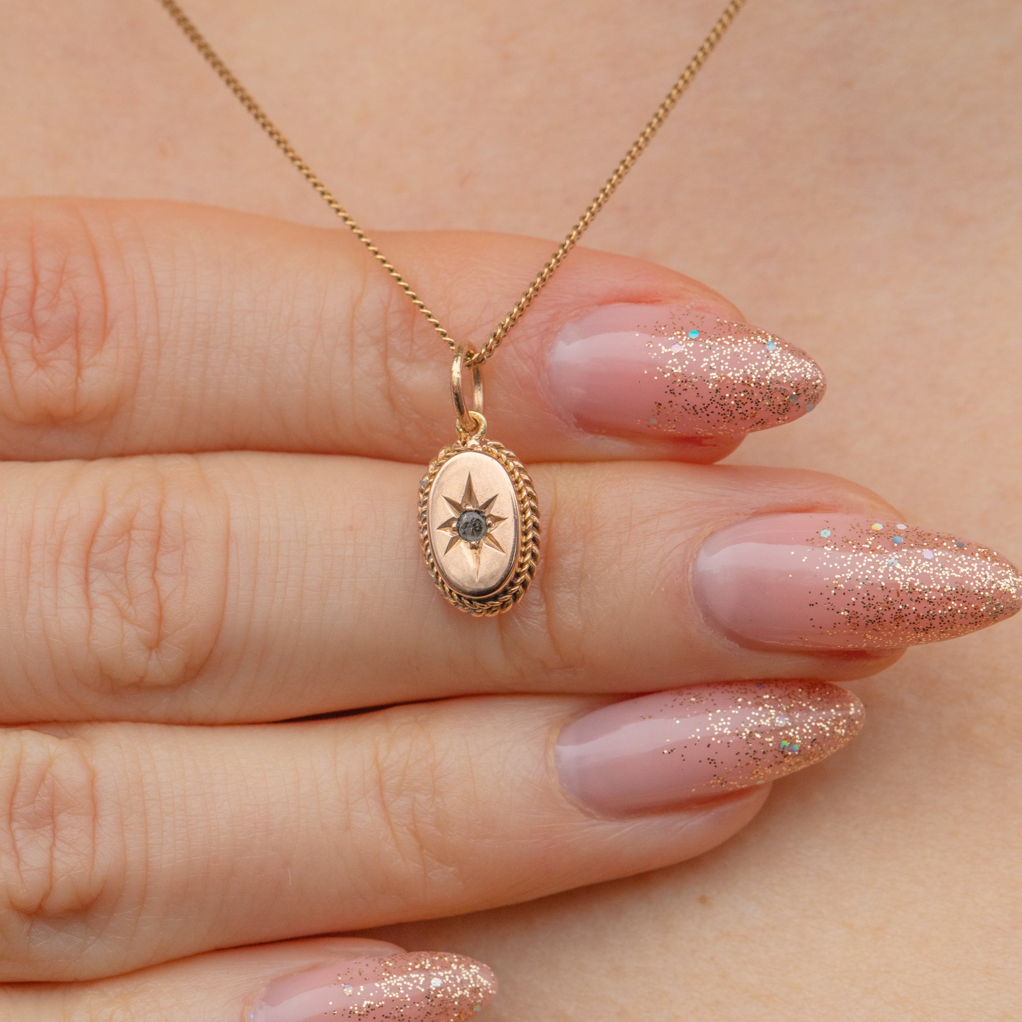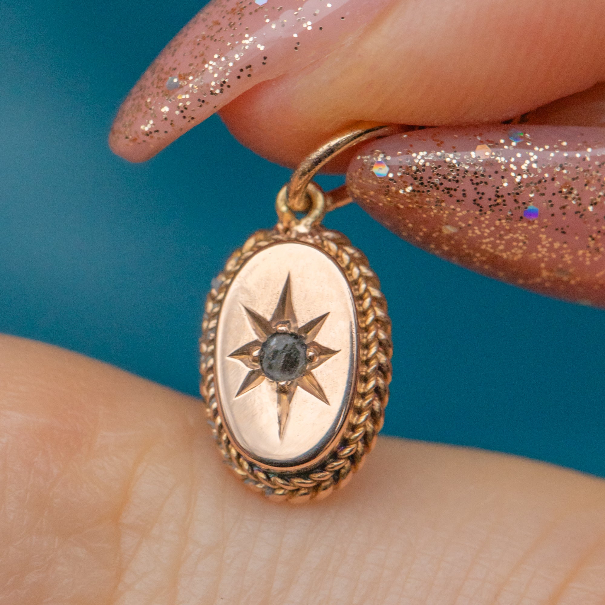 This adorable ethereal Victorian 9ct Gold Diamond star-set charm is the perfect piece to take your jewellery collection up a notch! This alluring antique piece is crafted in true Etruscan style, homing a twinkling rose-cut Diamond nestled in her centre.