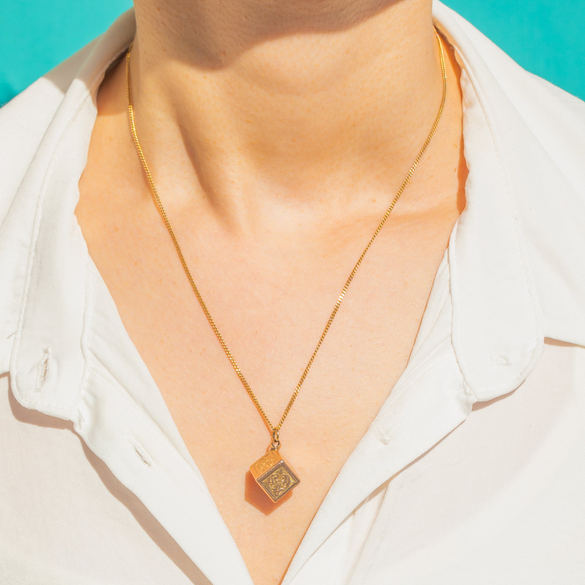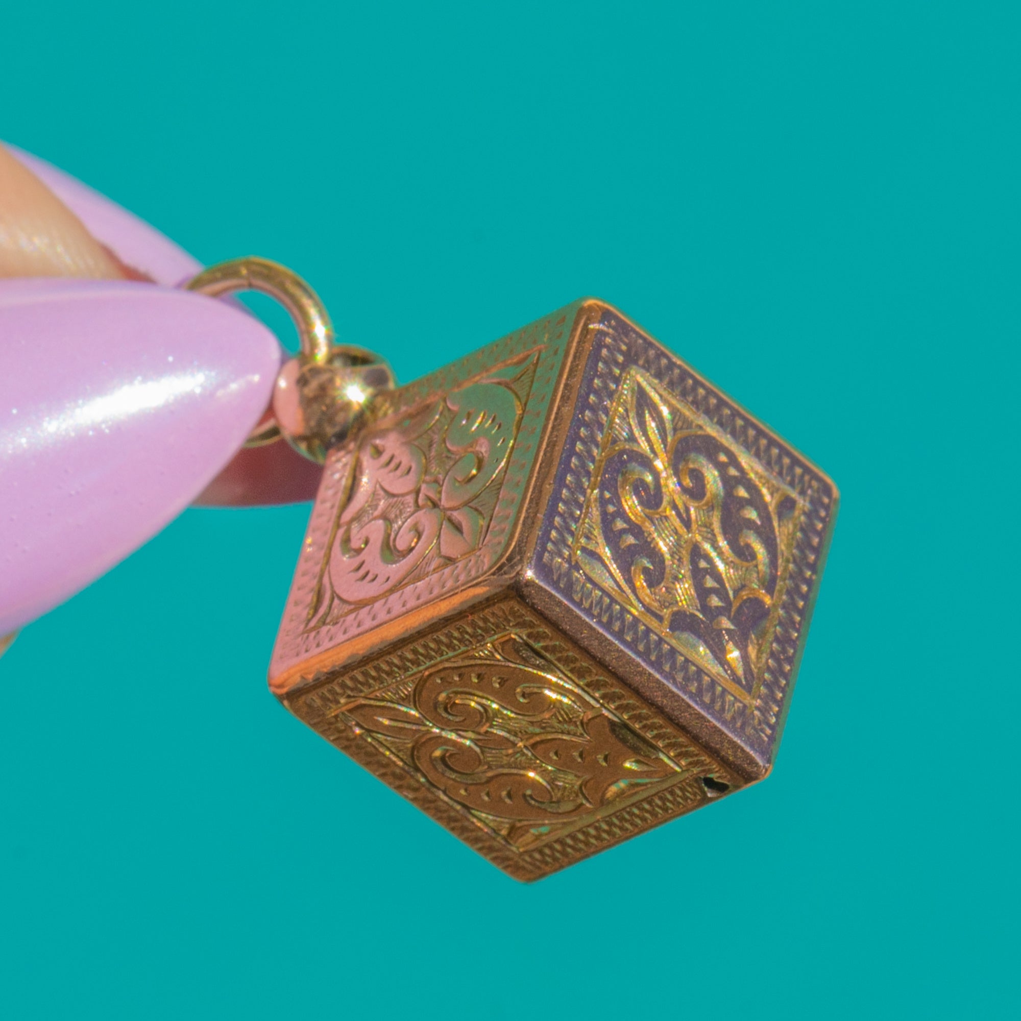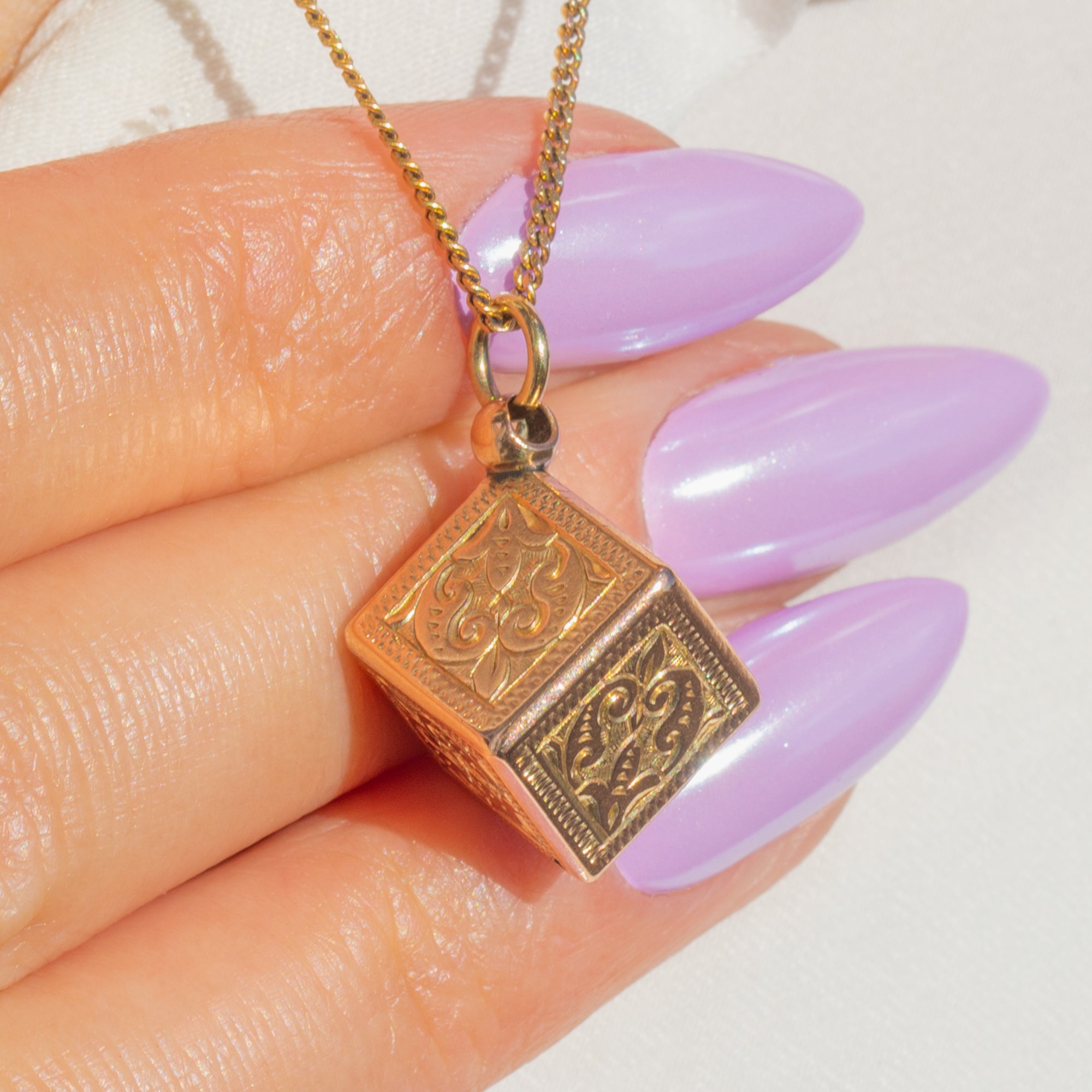 Victorian 9ct Gold Engraved Cube Charm