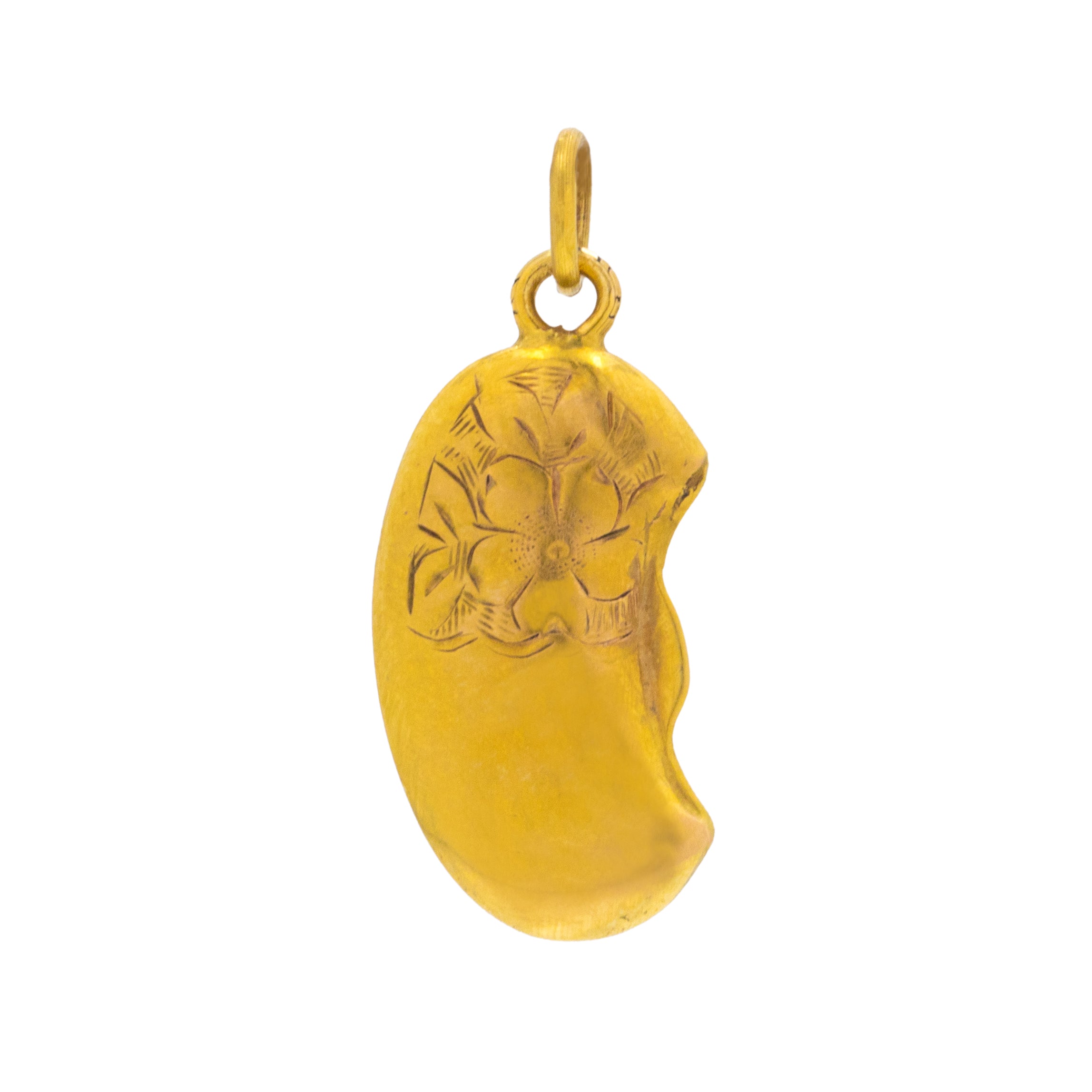Victorian 9ct Gold Engraved Lucky Bean Pendant