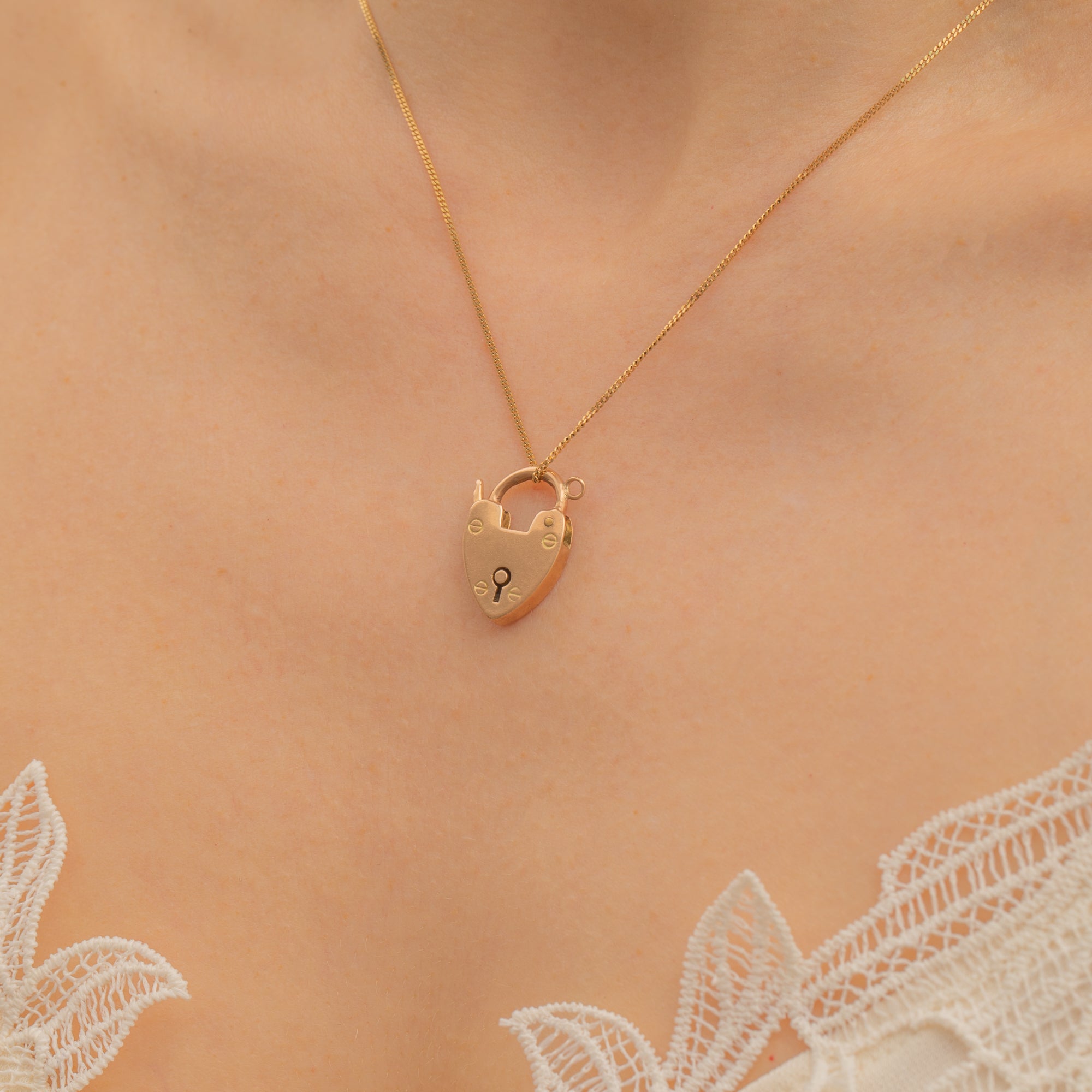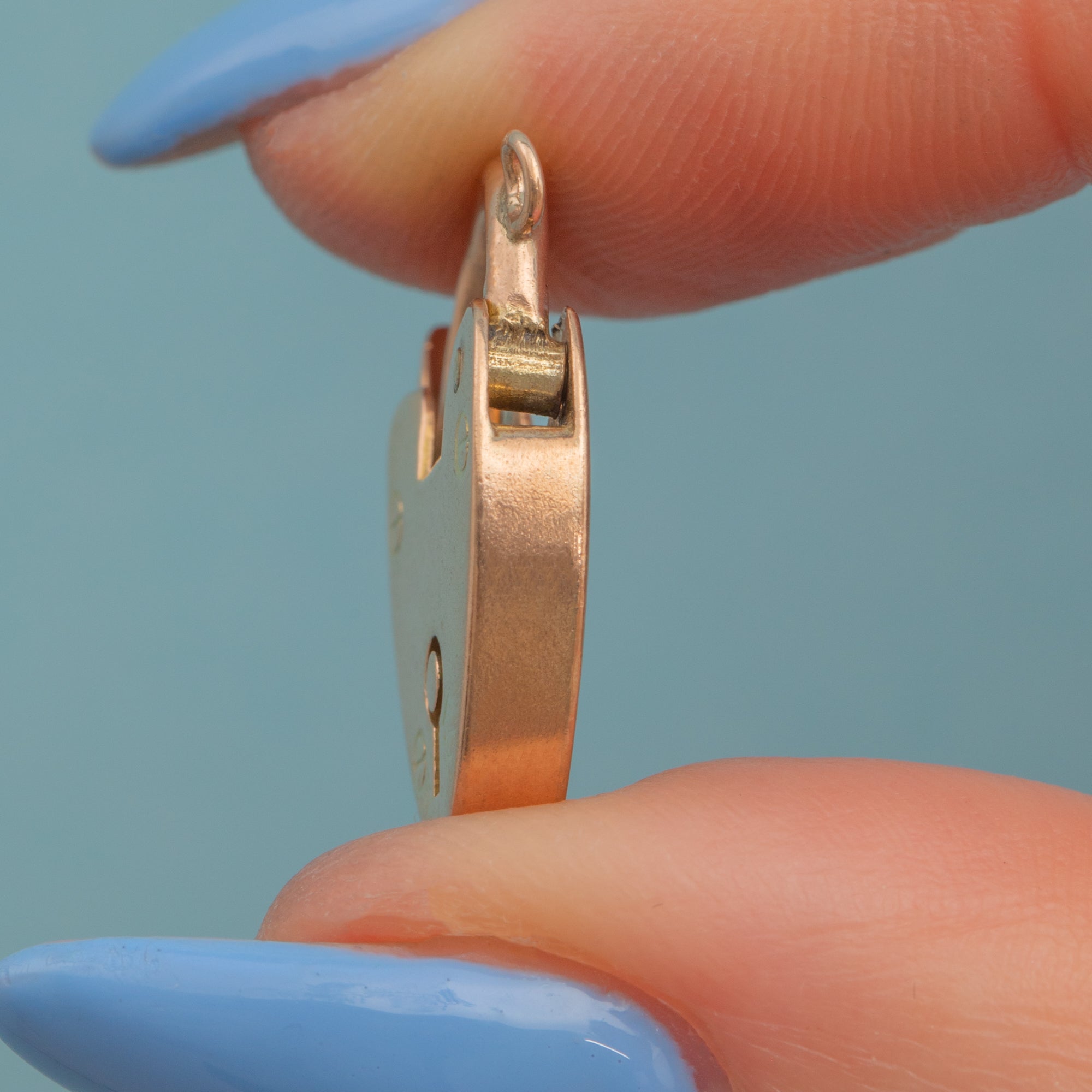 An adorable Victorian 9ct Gold heart padlock pendant to add some antique charm to your everyday look! Emanating romantic charm, the padlock is crafted from blushed 9ct Gold throughout.
