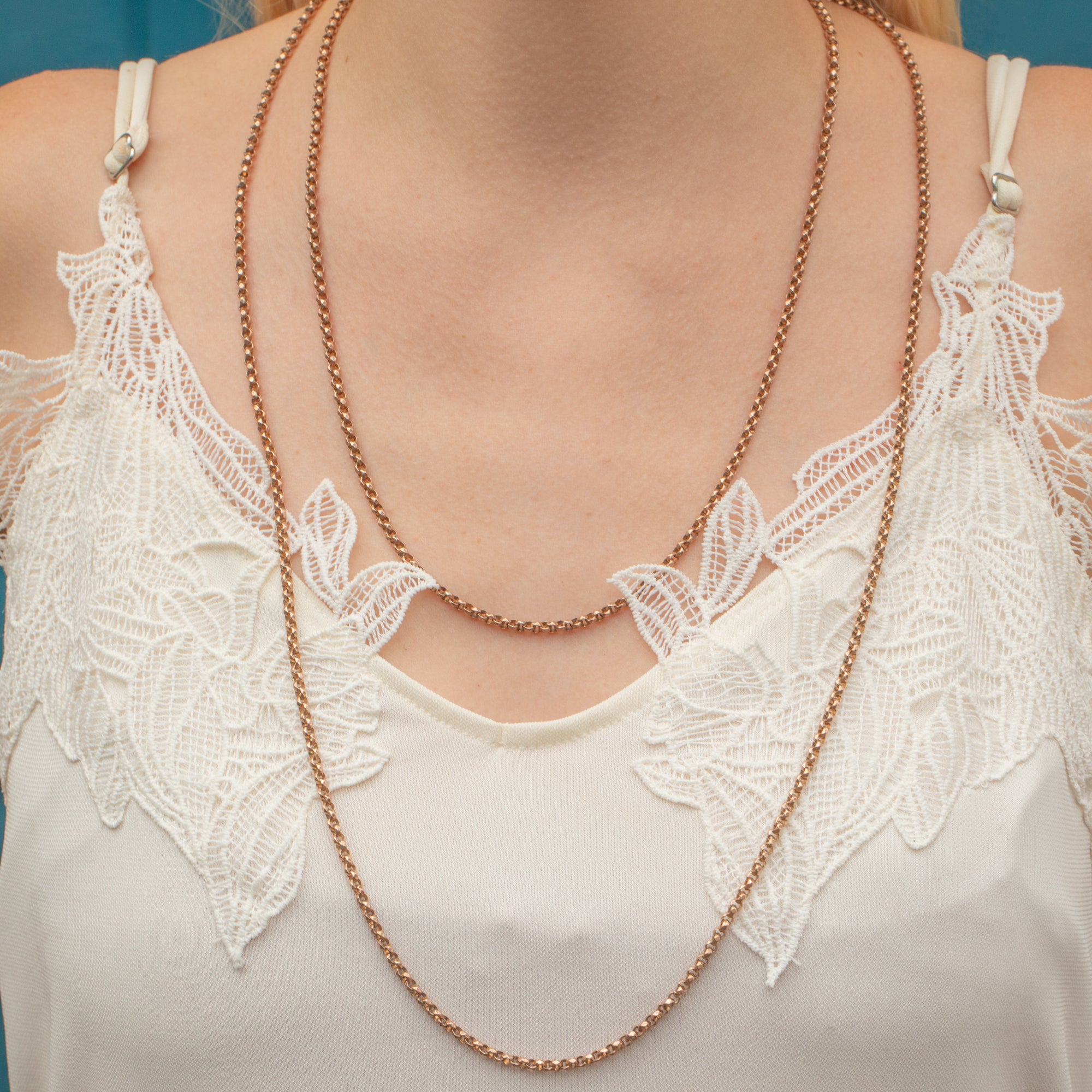 This Victorian 9ct rose-Gold cased longuard chain is an absolute treat! At an impressive 53 inches, the styling opportunities are endless, providing not only the ultimate neck stack, but also the chance to suspend your favourite charms from her fully functioning dog-clip.