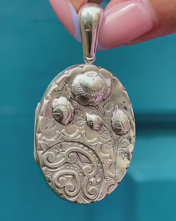 Victorian Aesthetic Silver Floral Engraved Locket, c.1884