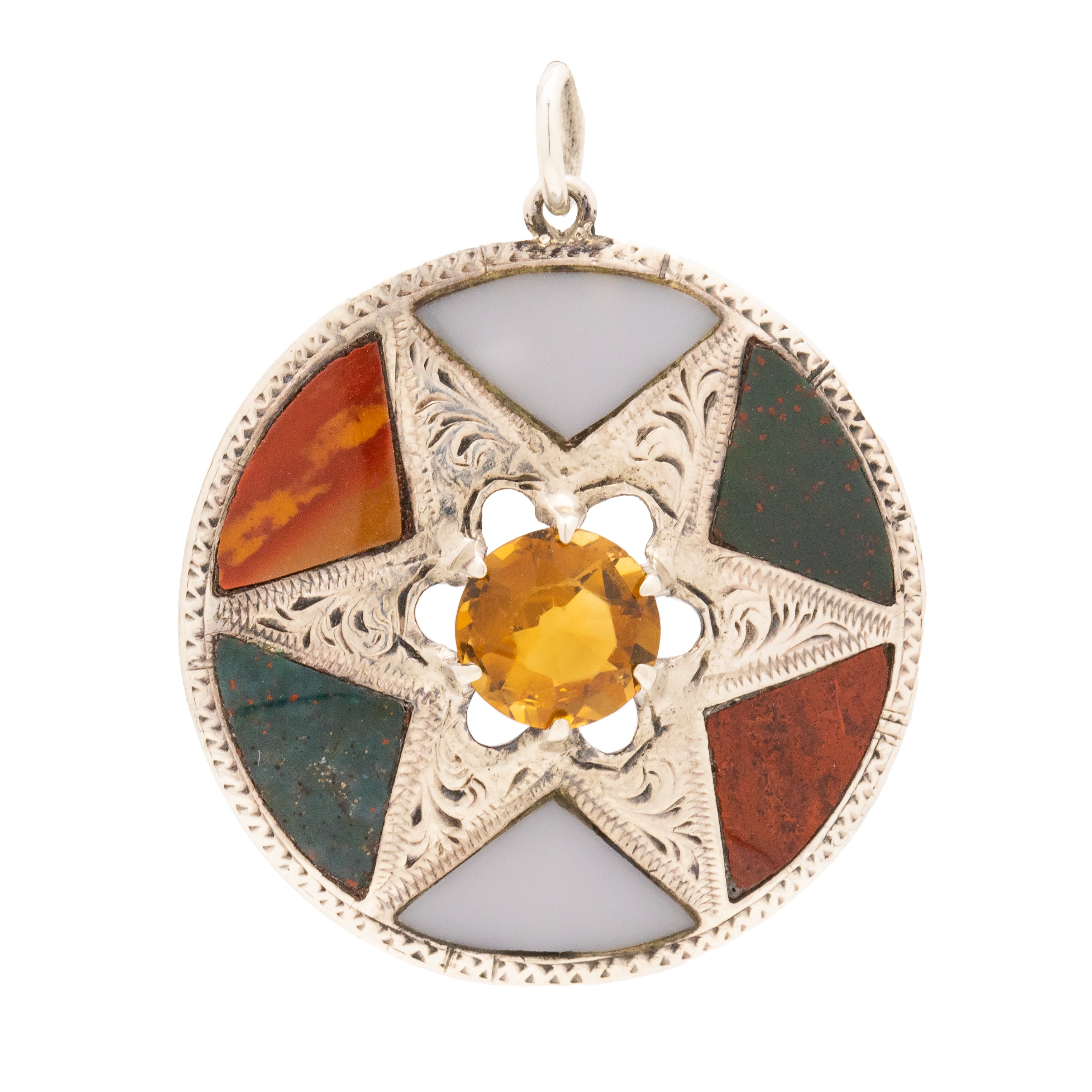 Victorian Scottish Agate Citrine Round Pendant, 1.00ct