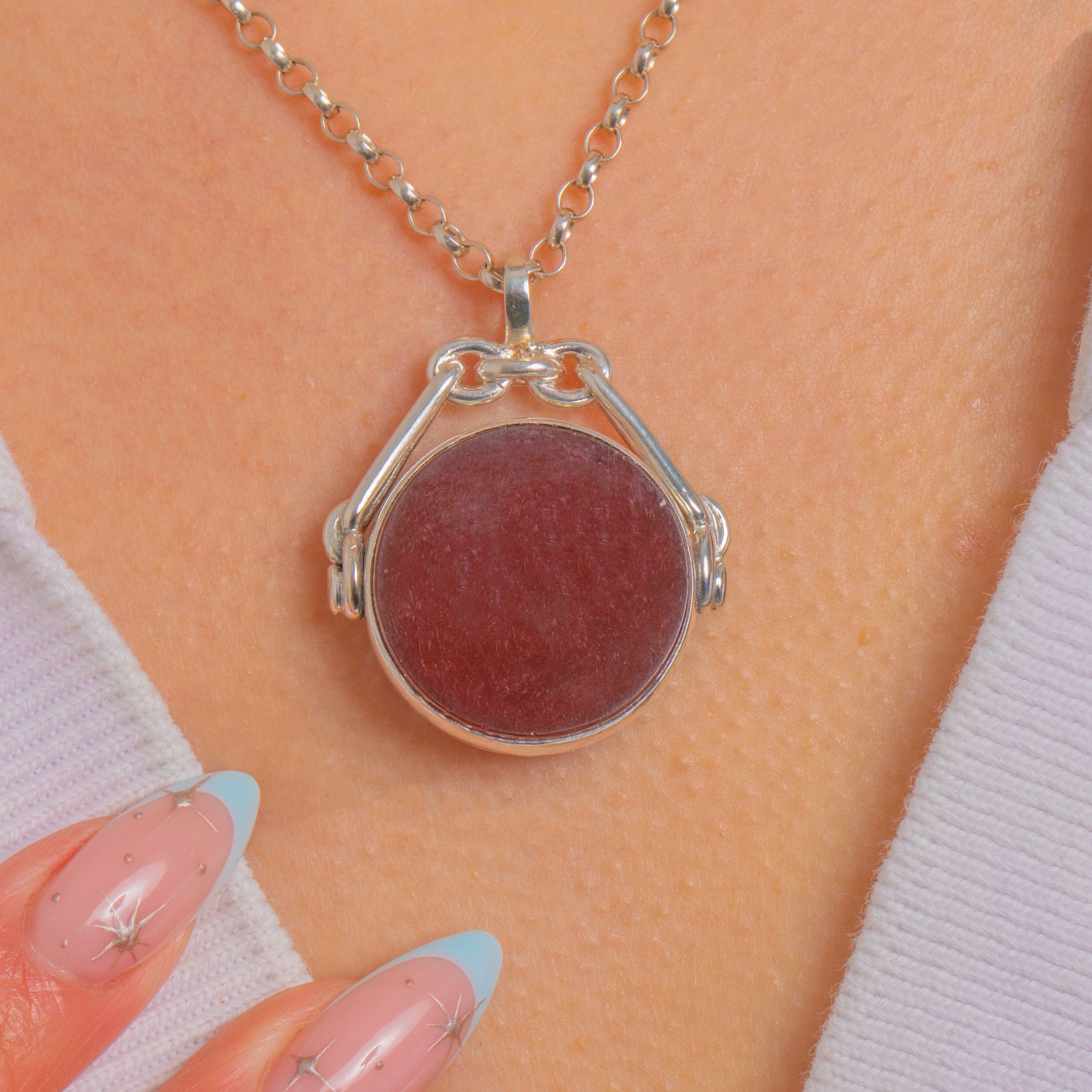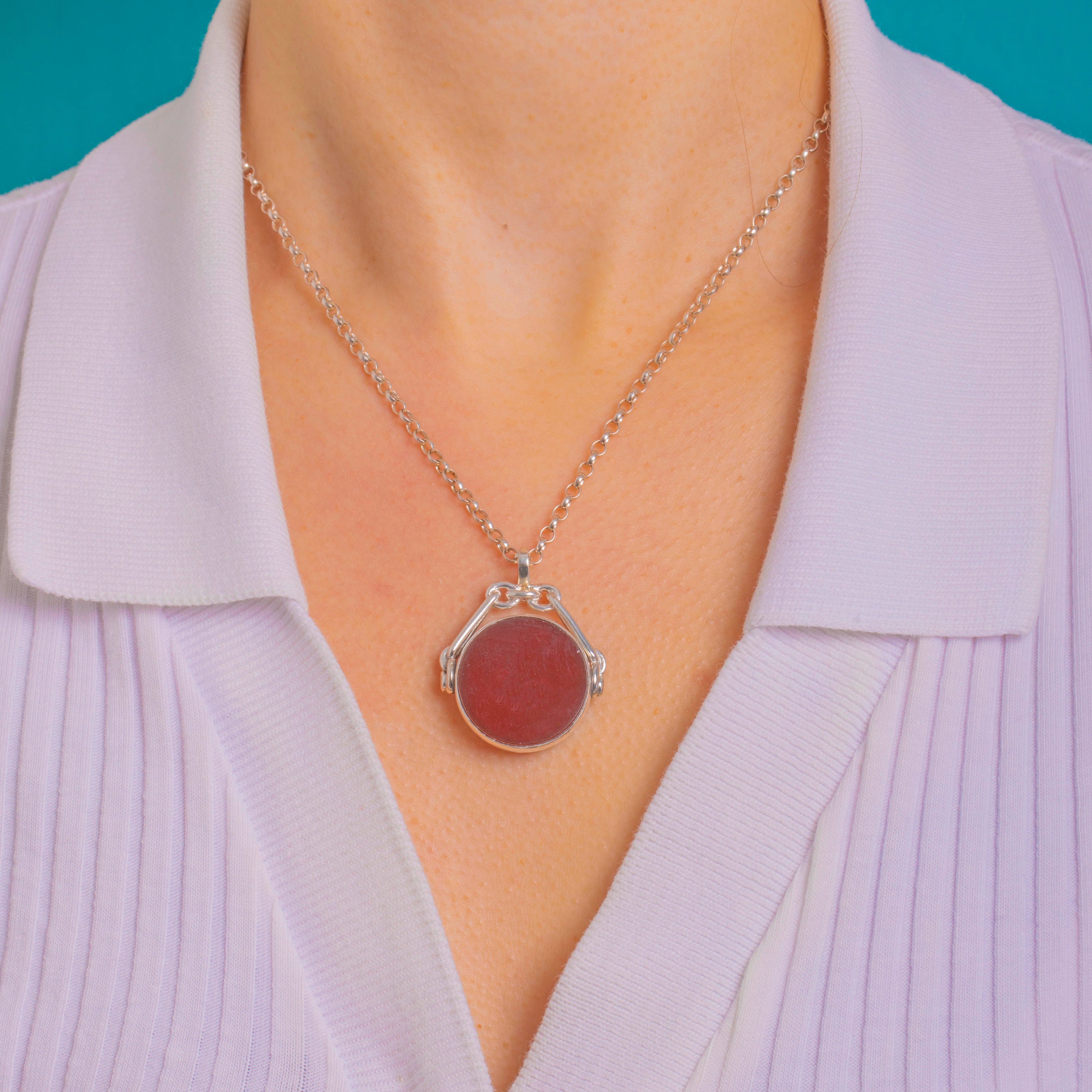 Flip the tablet to choose between the rich, opaque red of Carnelian or the deep green-blue Bloodstone flecked with brick-red. Understated and beautifully made, it wears effortlessly as a pendant.