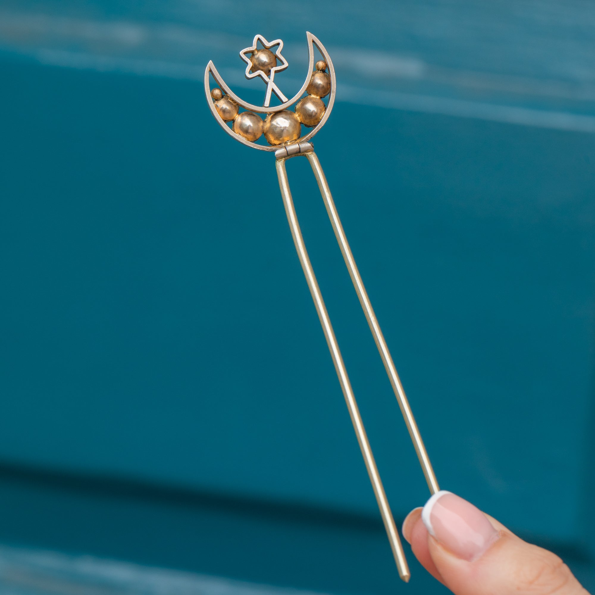 This sublime Victorian Silver Crescent moon hair pin will surely add a celestial touch to your chic up-do or ponytail, she truly is a seraphic vision!