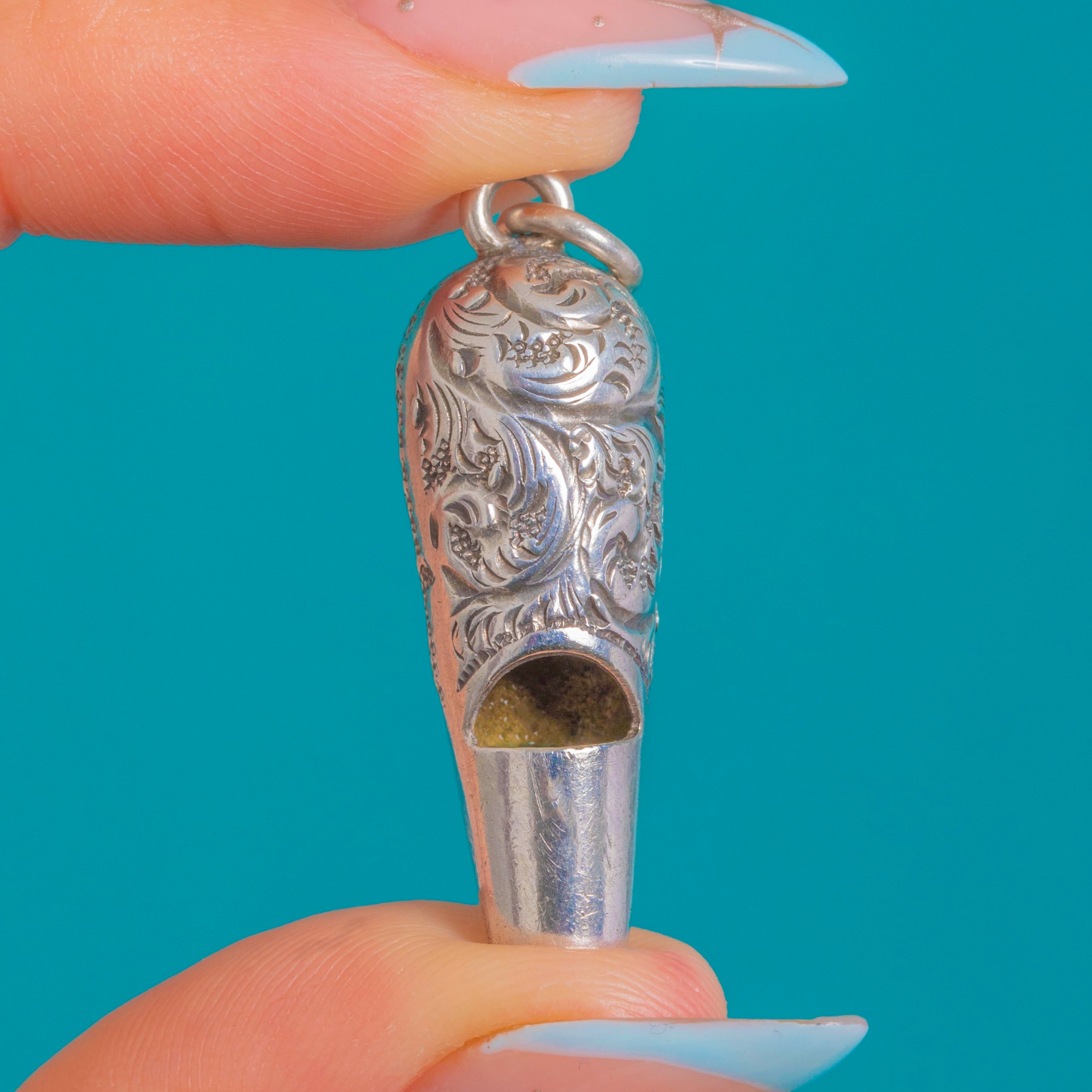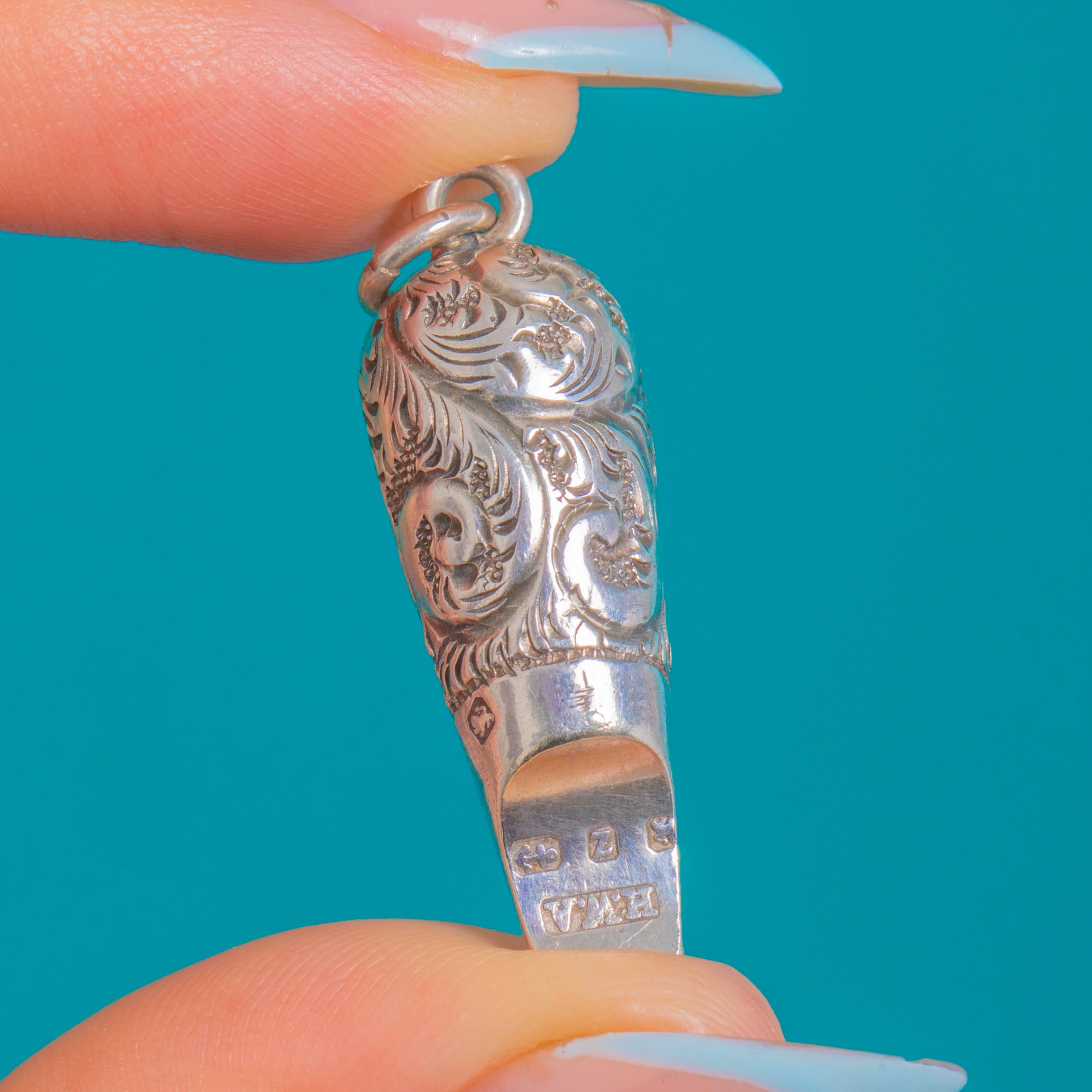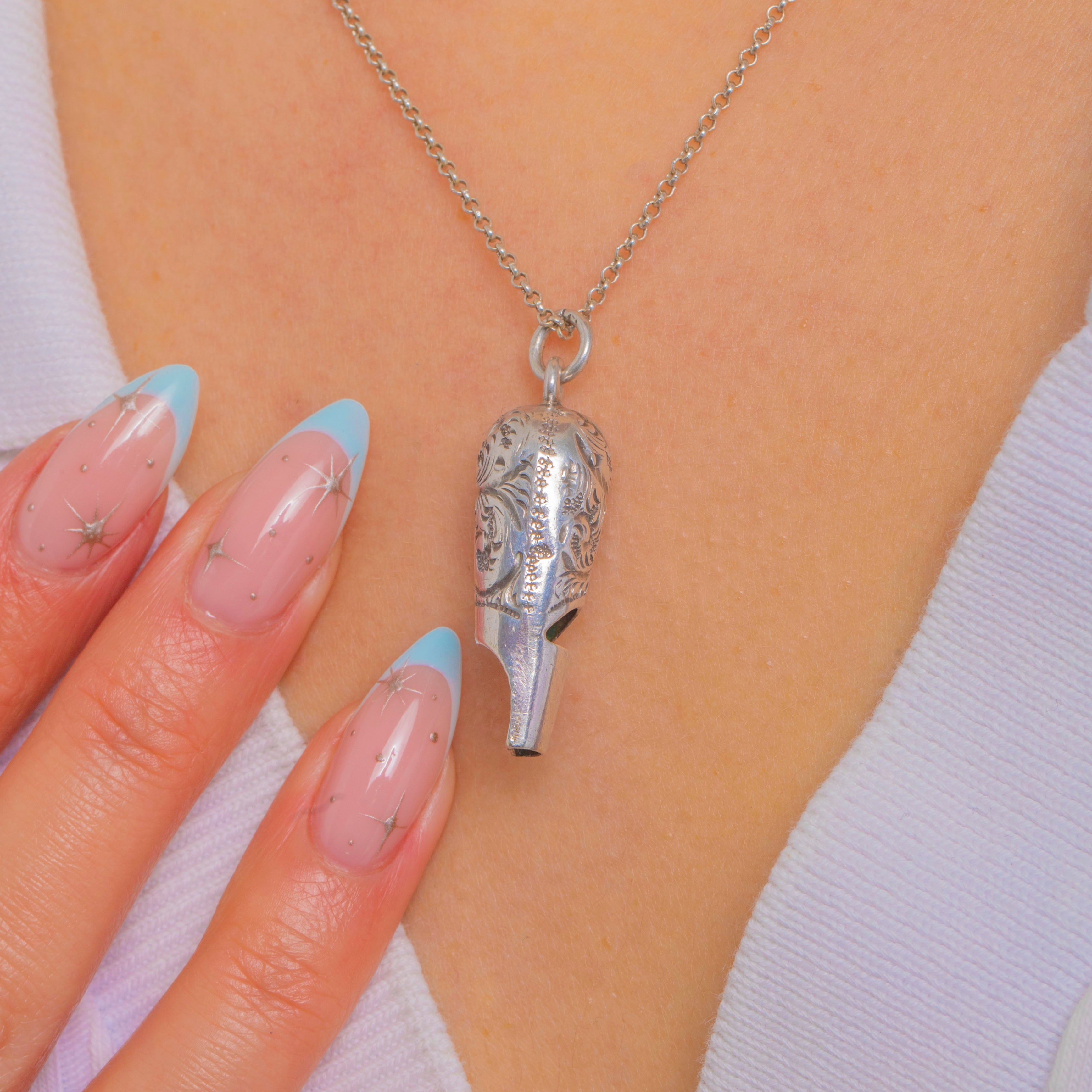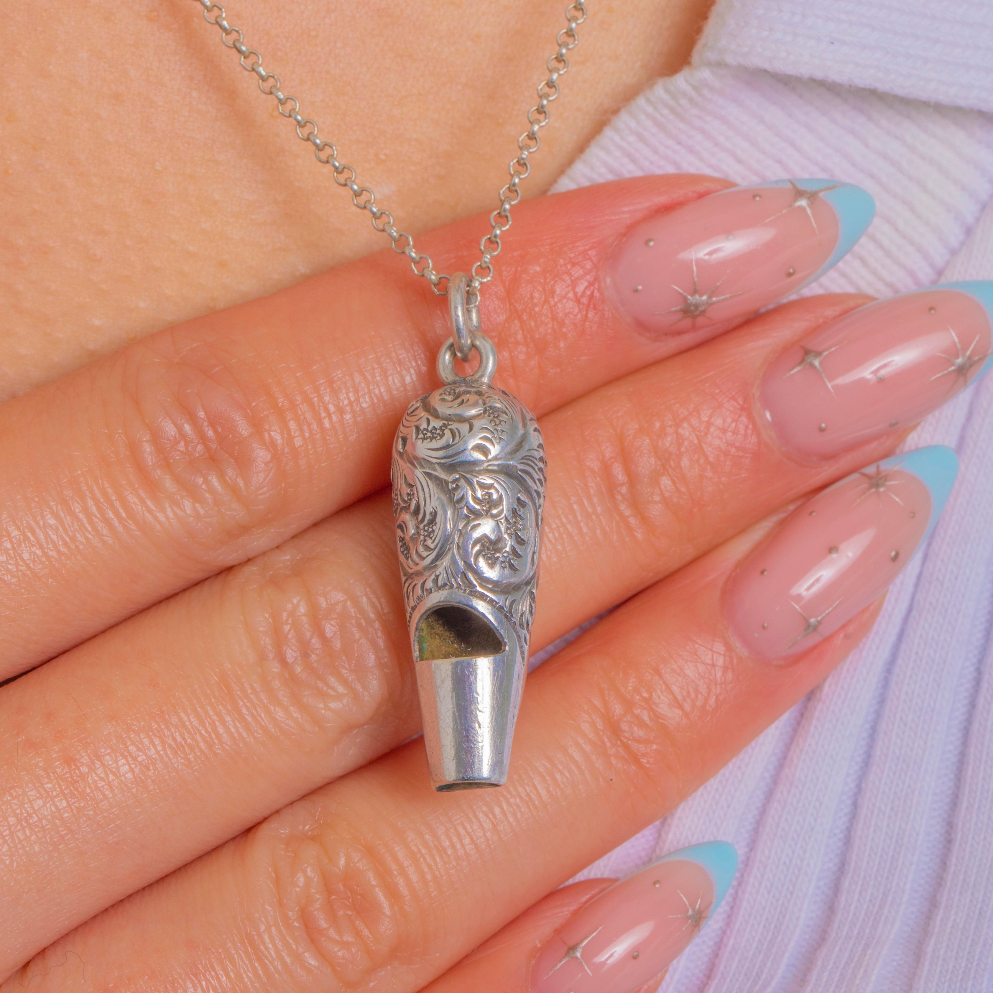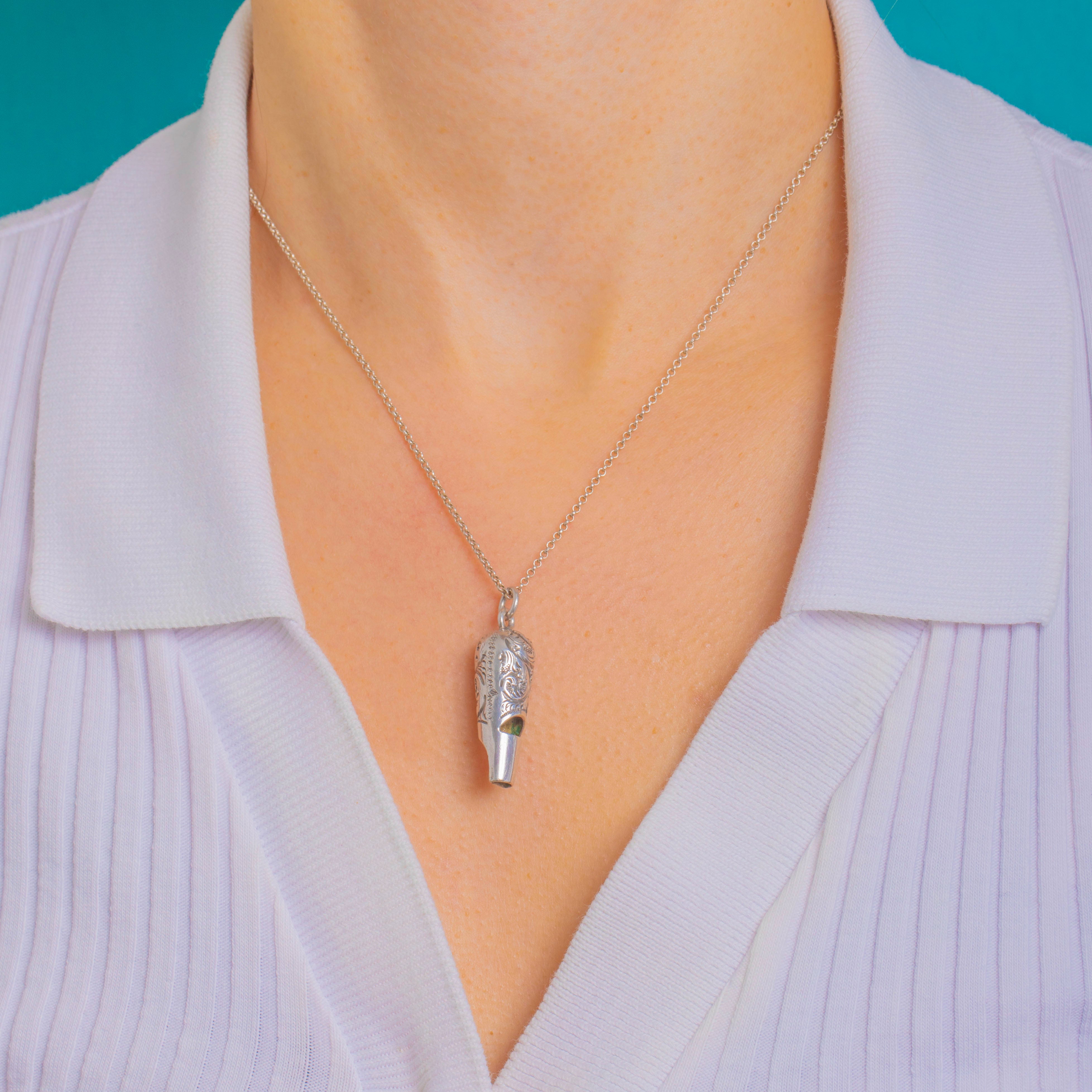 Victorian Silver Engraved Ladies Whistle Pendant c.1874