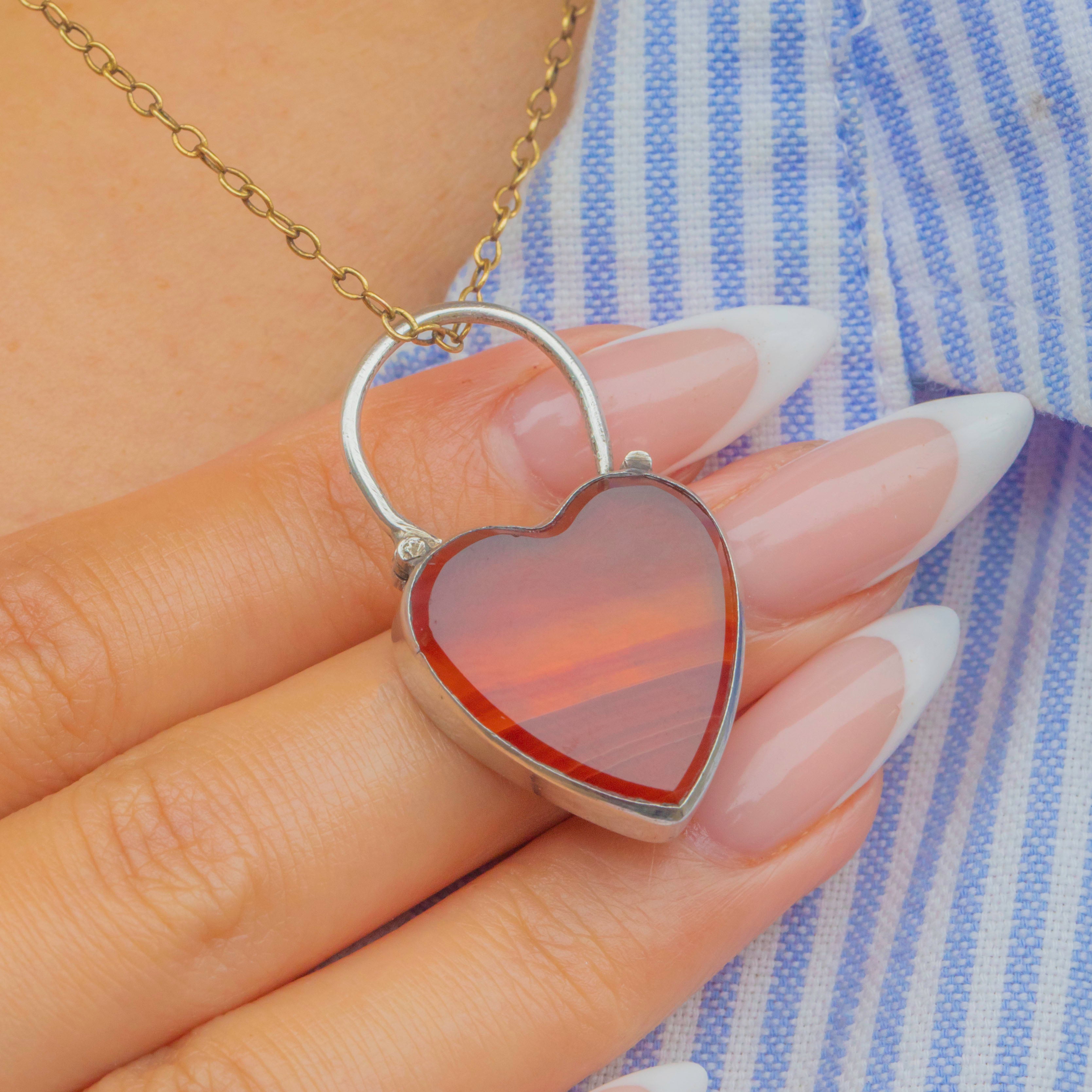 Victorian Sterling Silver Banded Orange Agate Heart Padlock