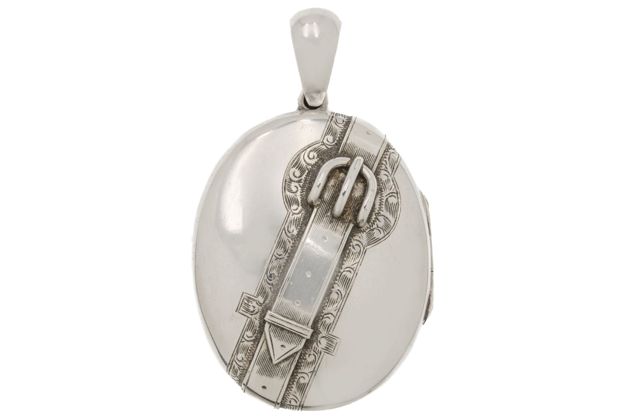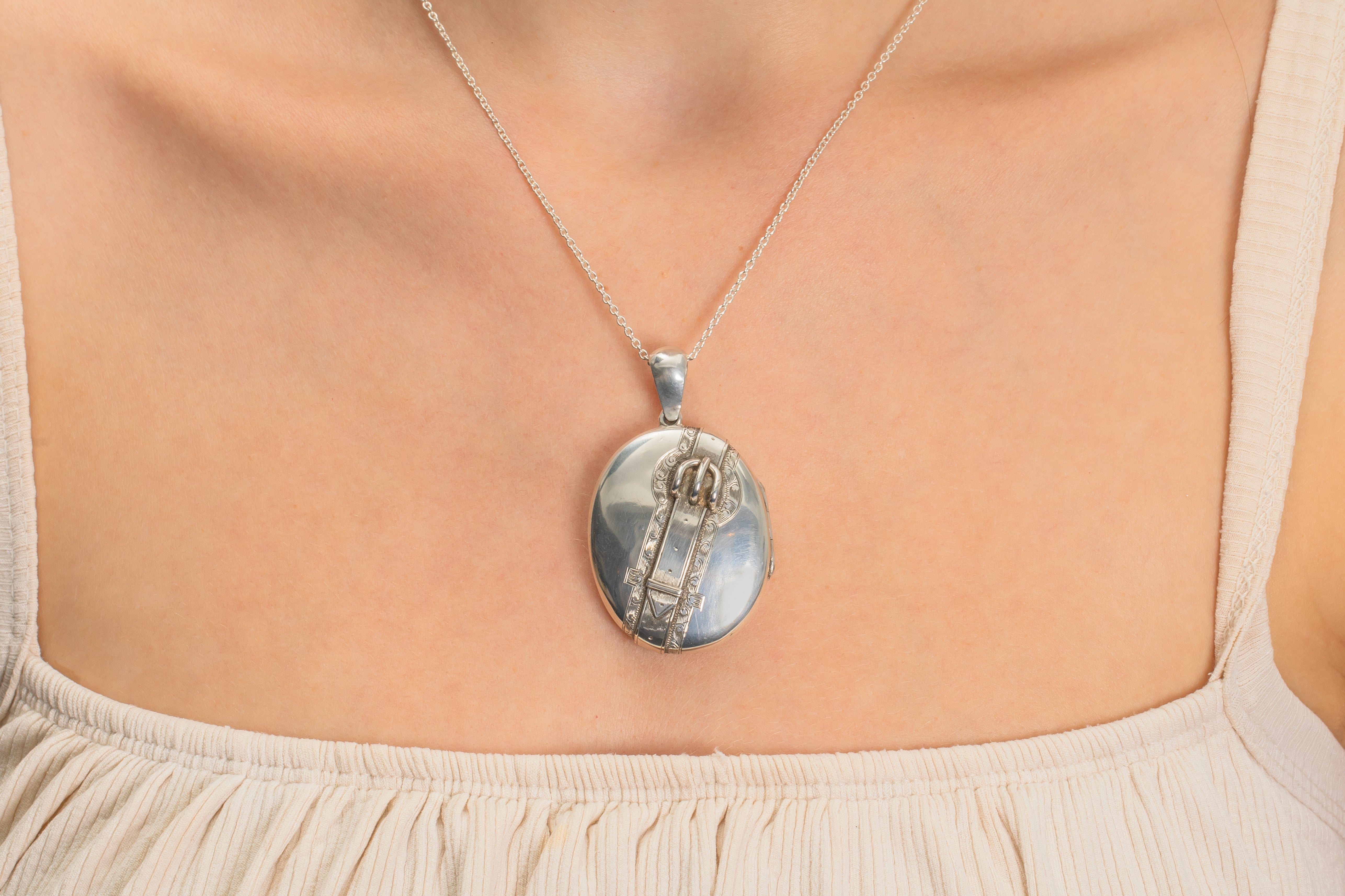 VERY GOOD: This Victorian Sterling Silver buckle locket's age has not faded her beauty. While there are some slight marks on the front, these are barely visible to the naked eye and only add to her character. She has been well loved and excellently maintained with fully functioning hinges and two glass panes to protect your precious photographs. She is in very good condition and is well deserving of pride of place in your jewellery collection.