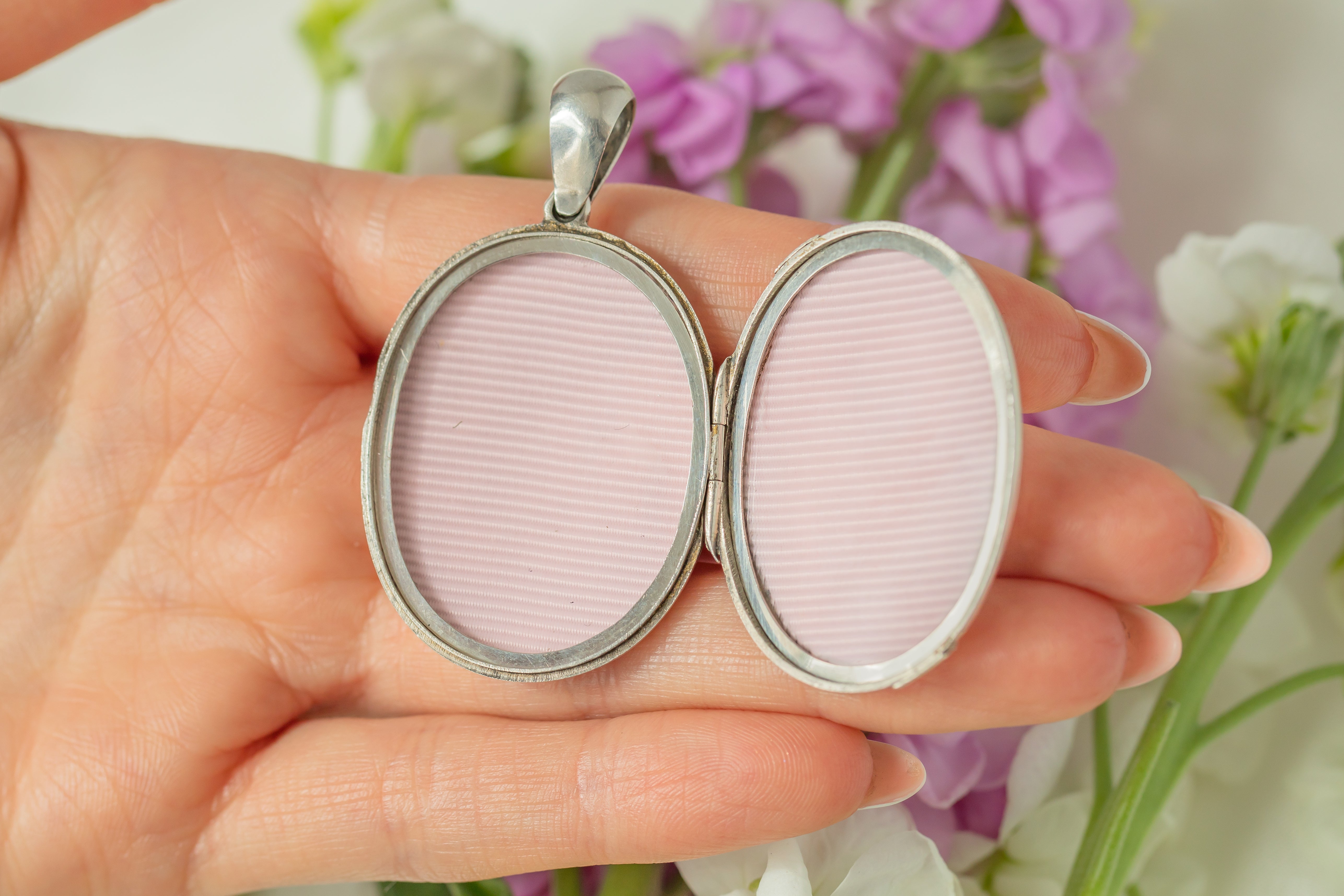 The spleadour of this antique locket continues to the inside, where you will find large windows ready to house two of your most cherished photographs, allowing you to keep the moments you love the most close to you at all times!