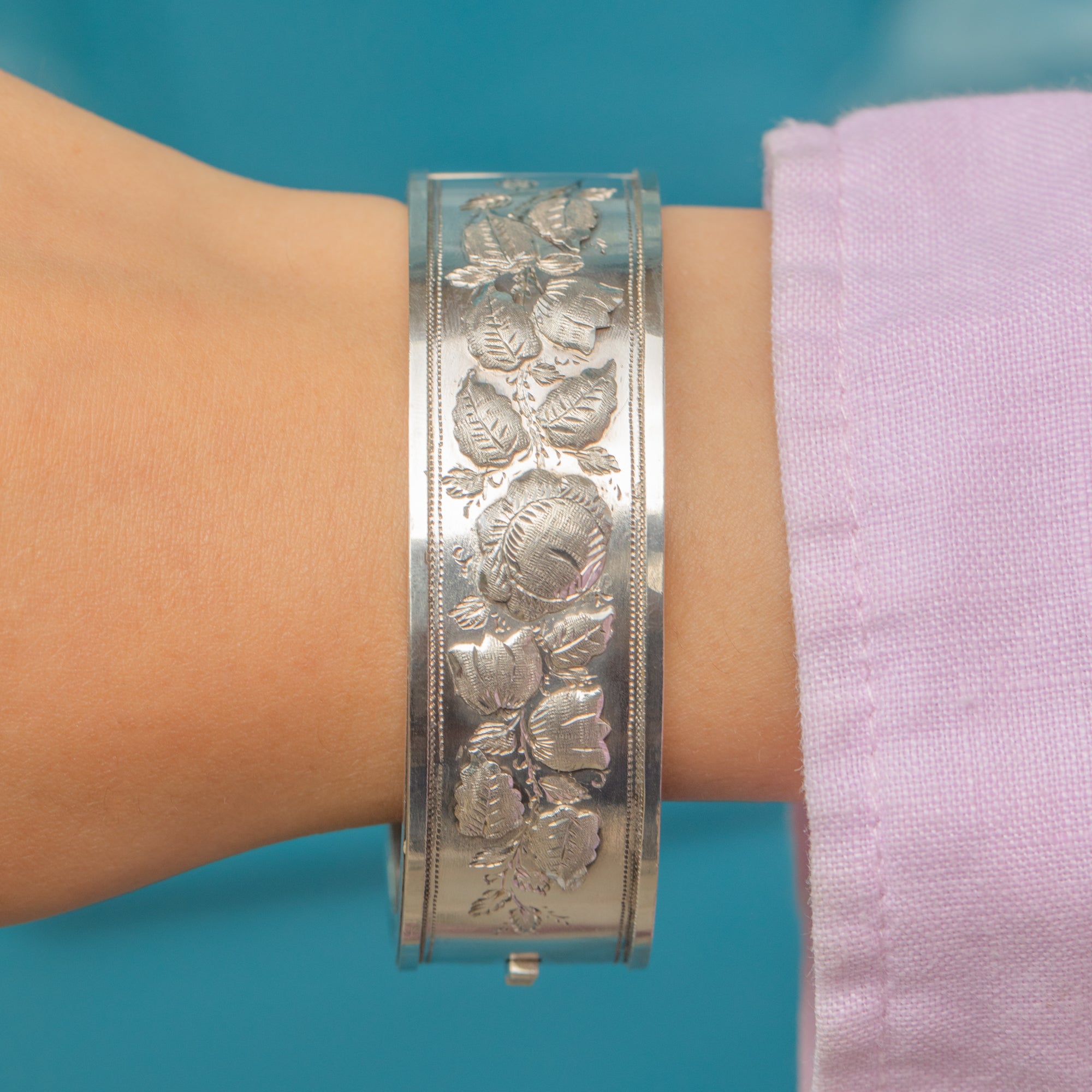 Victorian Sterling Silver Roses Bangle c.1884